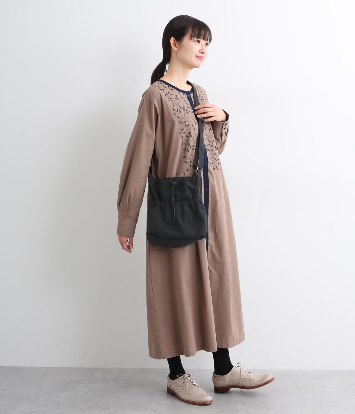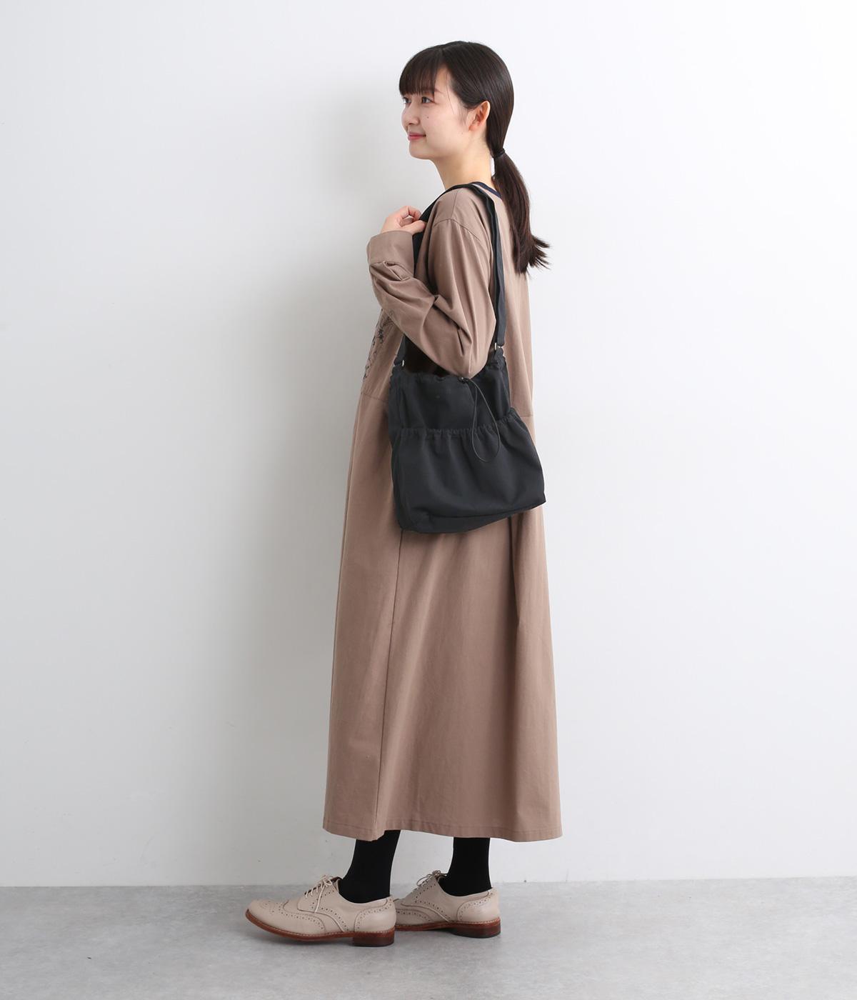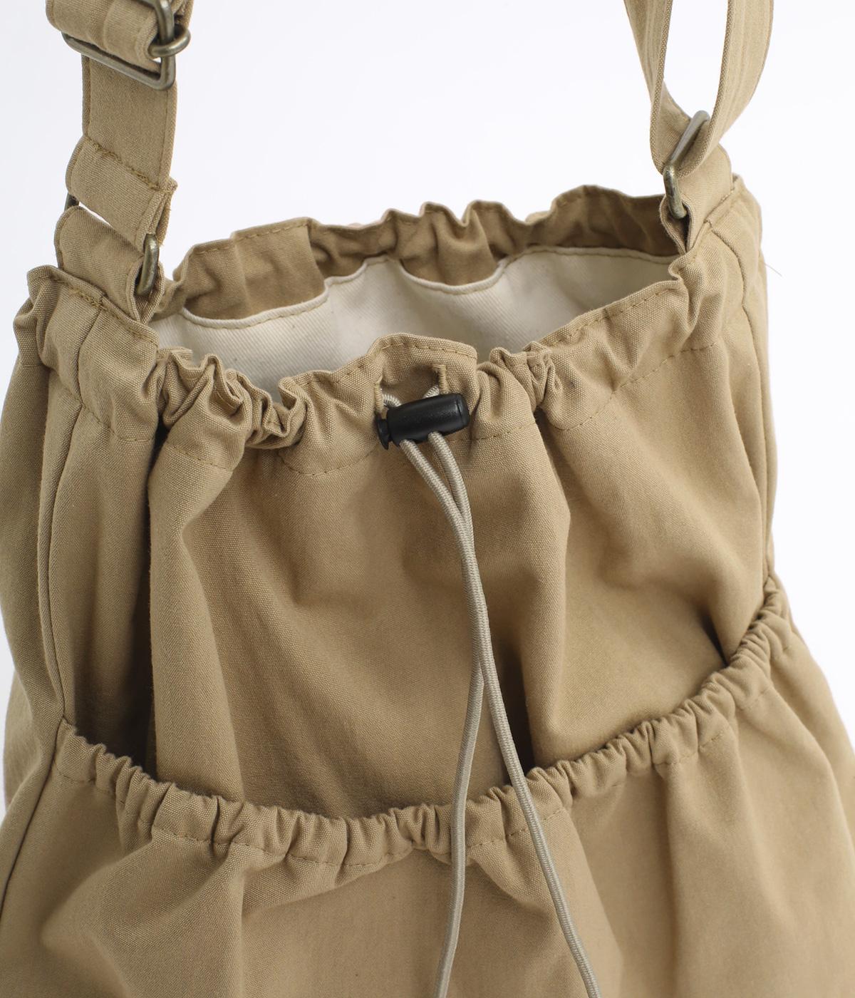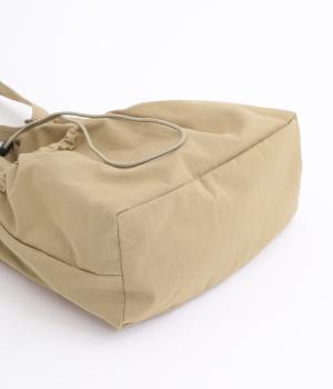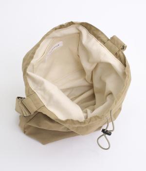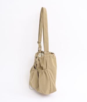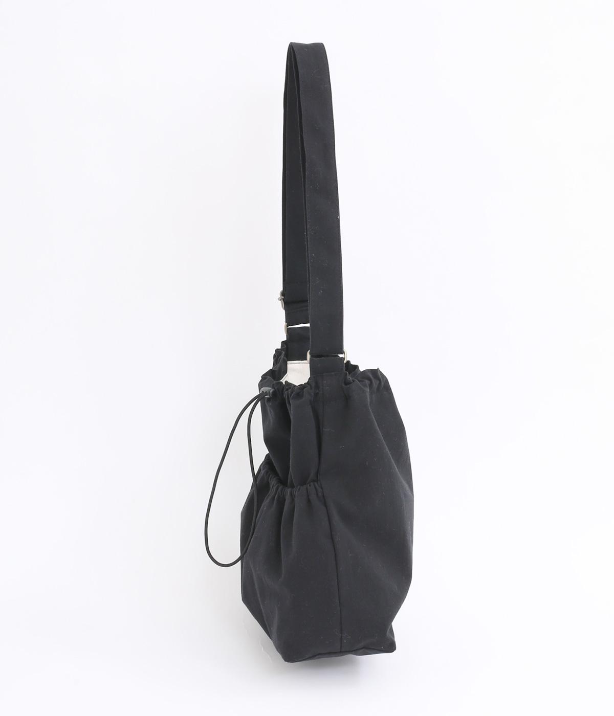 入れ口を絞ってもそのままでも使える巾着型バッグ。コンパクトながらマチがしっかりあるため、ペットボトルや折り畳み傘などお出かけに必要なものを収納できます。ショルダー部分は調整できるため、肩掛けから斜めがけにも対応。