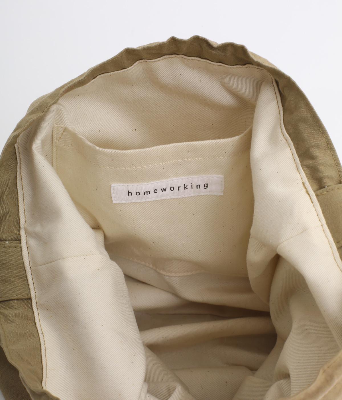 コットンのナチュラル感と、ナイロンの耐久性、丈夫さを組み合わせたハイブリッドな素材。高密度に織られているため、撥水性があり雨の日も使えます。裏地はコットン100%です。
