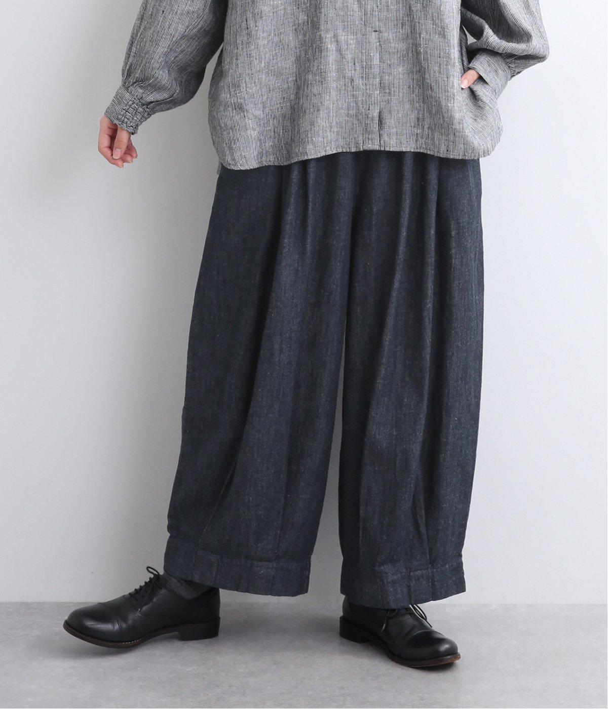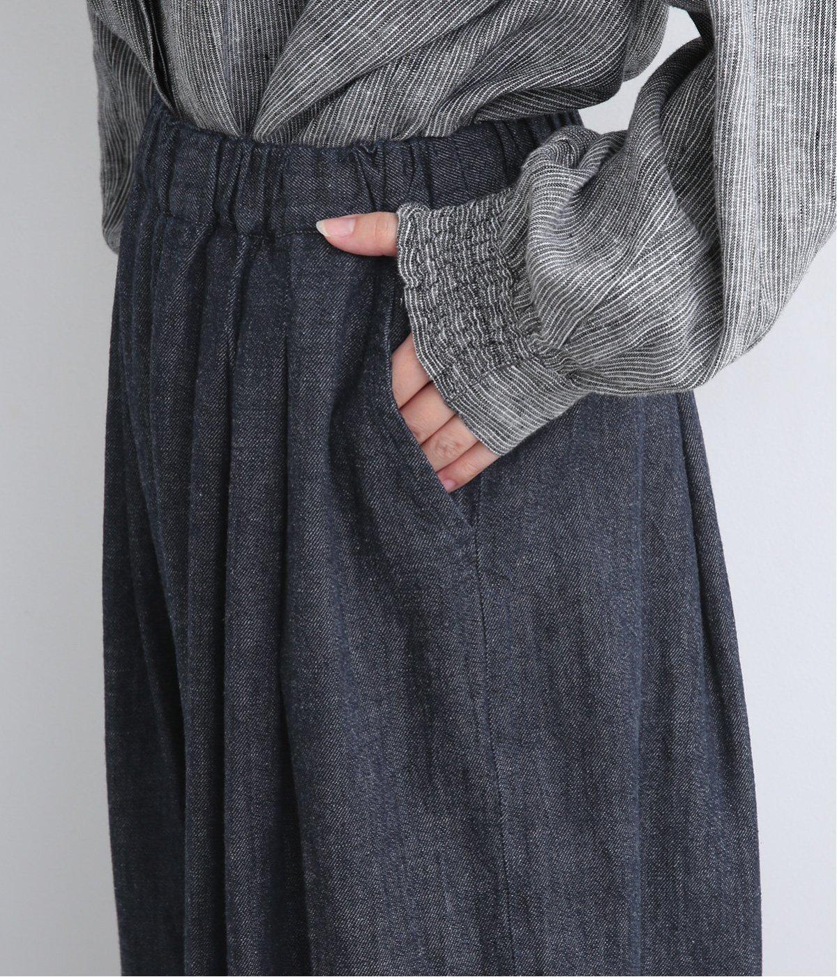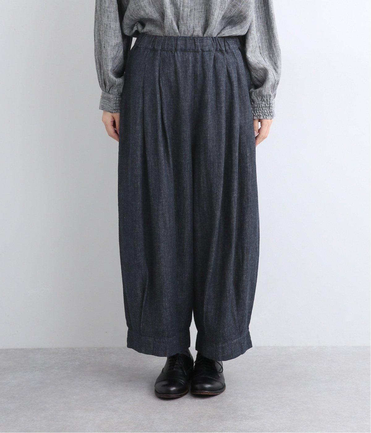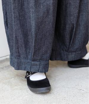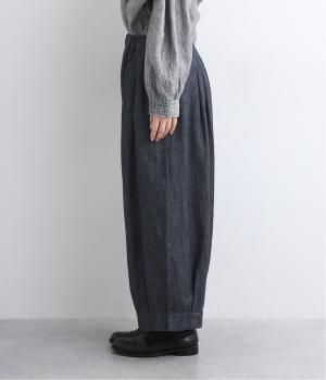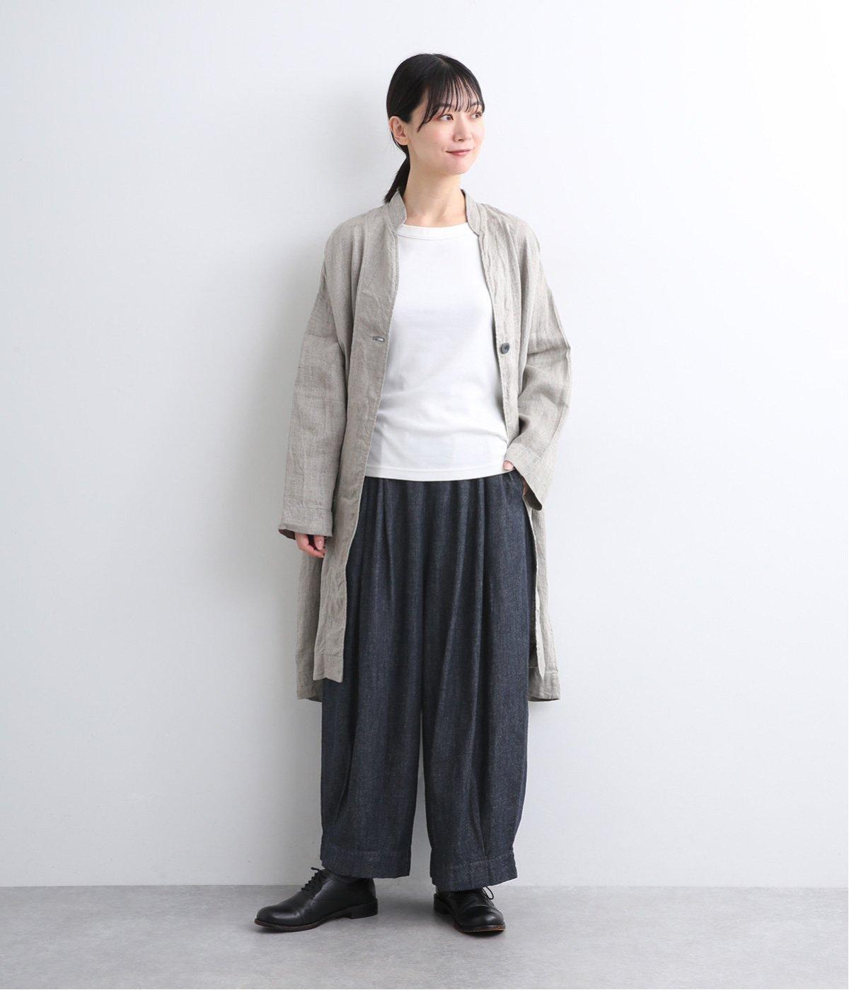コットンとリネンを組み合わせた、ナチュラルな風合いが心地よいデニム生地を使用。着用初期からやわらかではきやすく、使い勝手のいい中厚手生地で季節問わず活躍します。