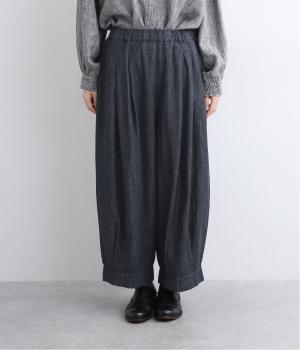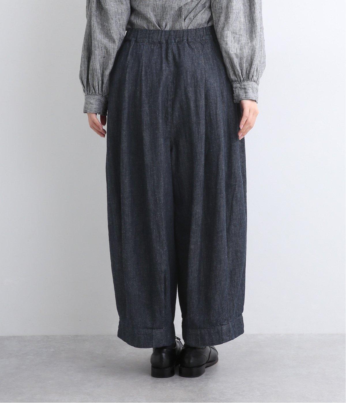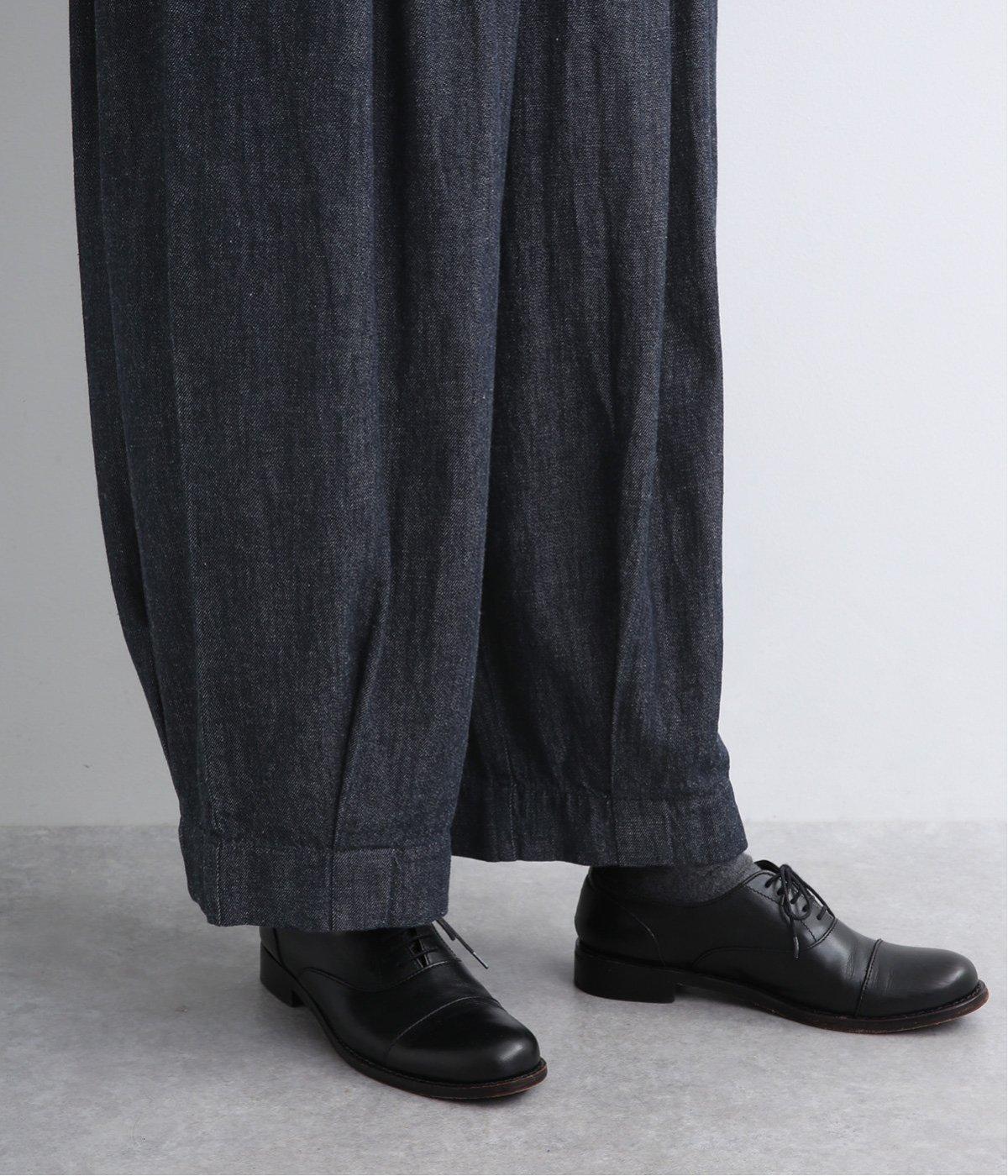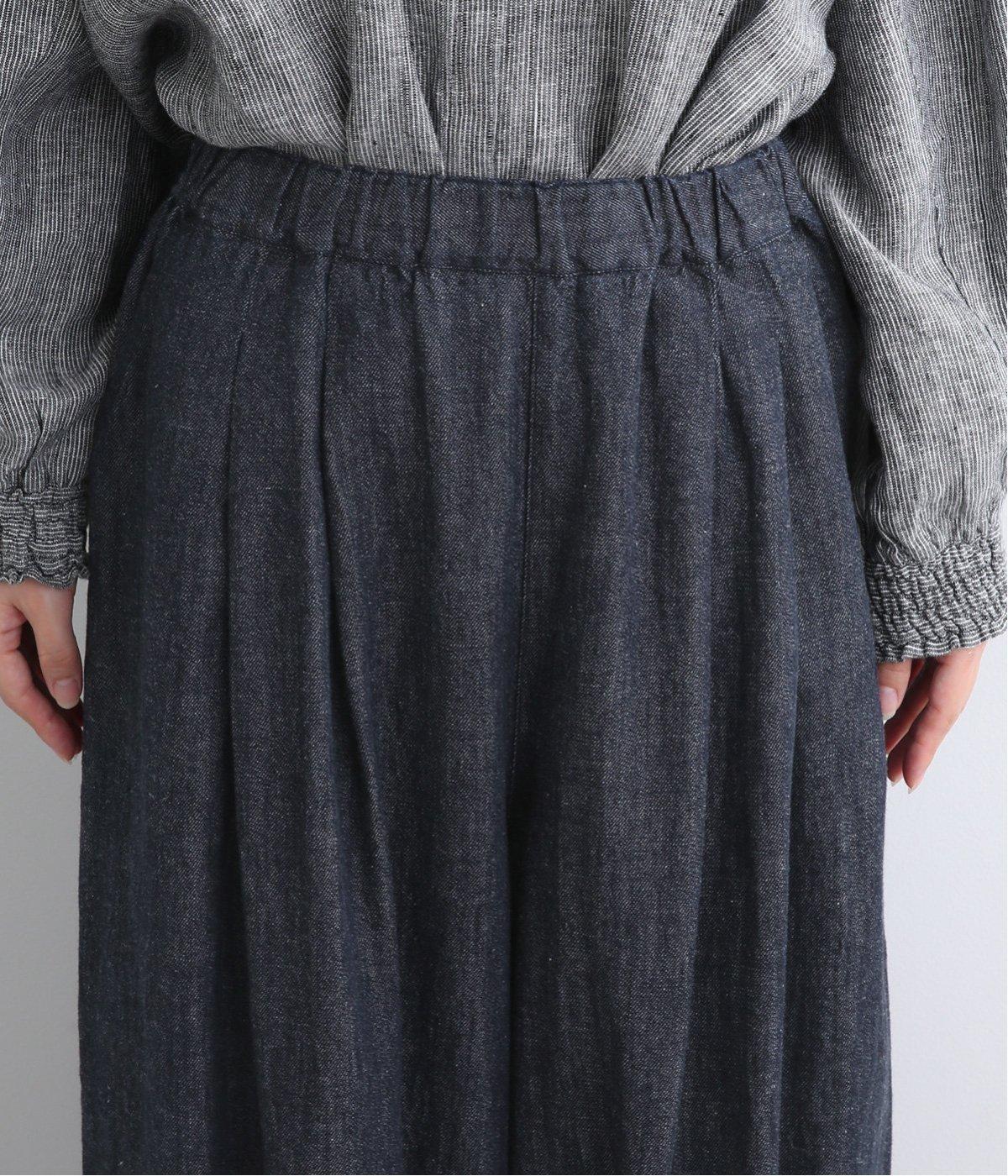 ウエストと裾にタックを入れて立体感を持たせたデニムパンツ。シューズ合わせがたのしめる丈感もこだわりポイントで、すっきりとバランスよく着用できます。ウエストはぐるりとゴムを入れたリラックス仕様。内紐で微調整もできます。