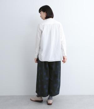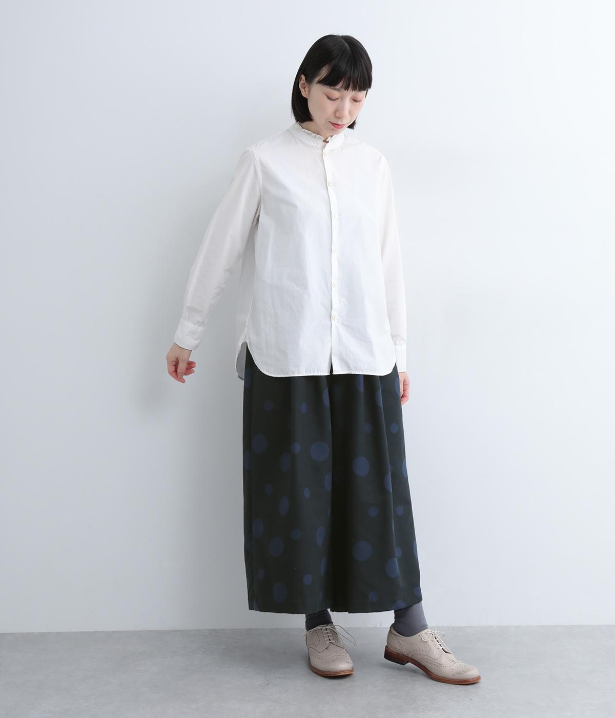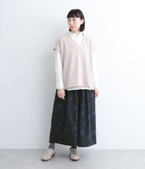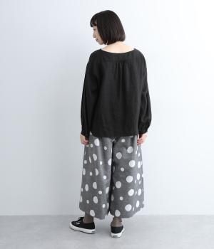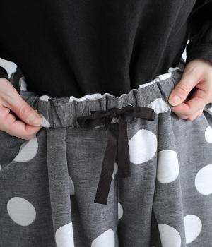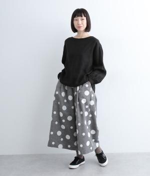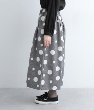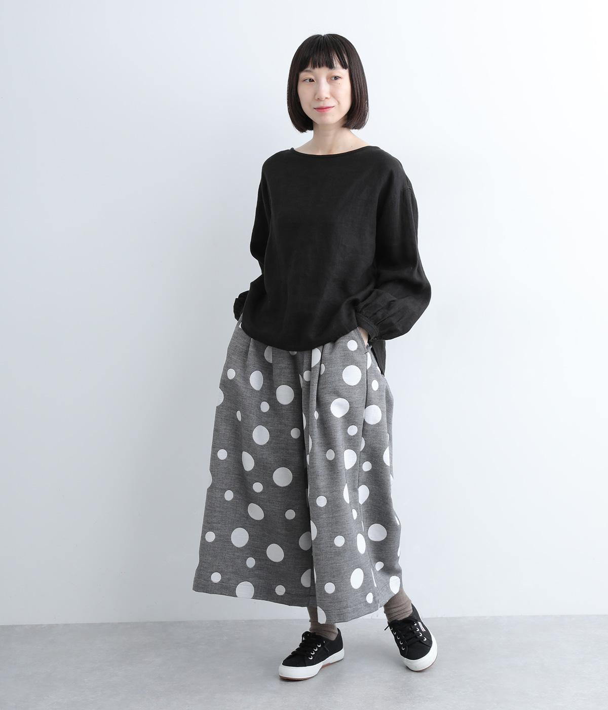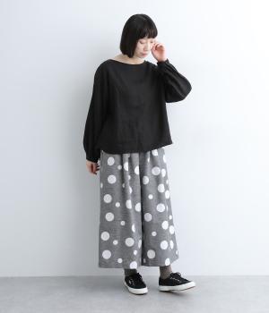 ランダムなドット柄を活かして、シンプルなワイドシルエットに仕立てたキュロットパンツ。足元をすっきり見せたバランスのいい丈感で着こなしやすくまとめました。ウエストは総ゴムのリラックス仕様。内紐でフィット感の微調整も可能です。