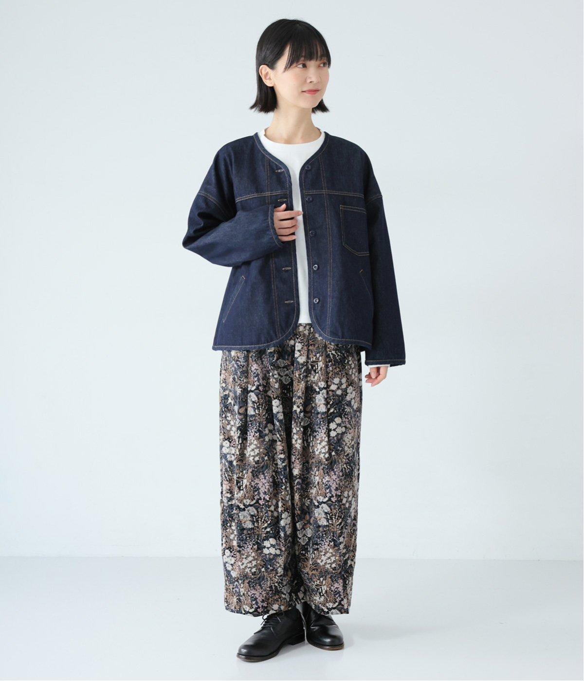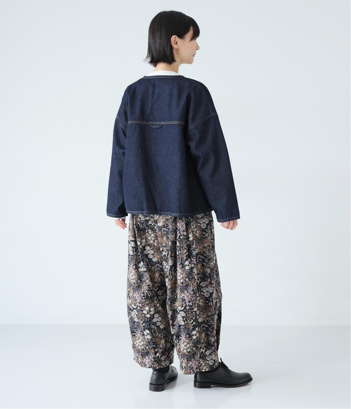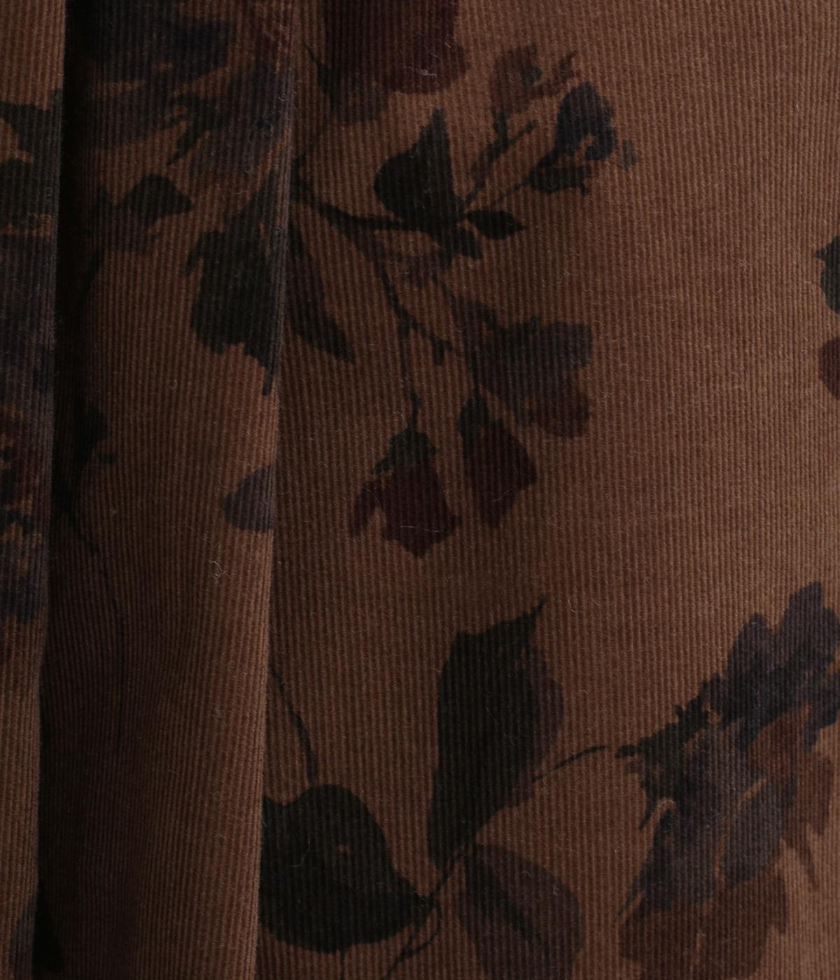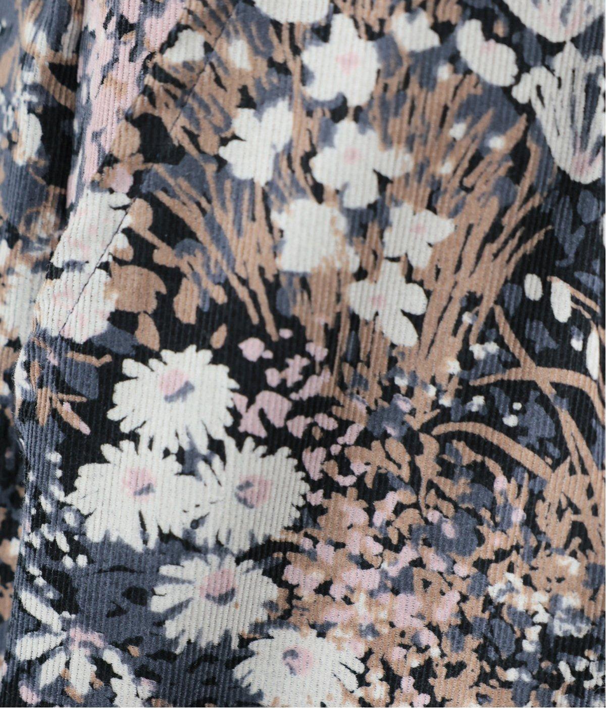 厚みをおさえたやわらかな風合いの細畝コーデュロイです。纏う枚数が増える秋冬にうれしい、とても軽やかな生地感。コーディネートのアクセントになるフラワープリントを全体にあしらっています。