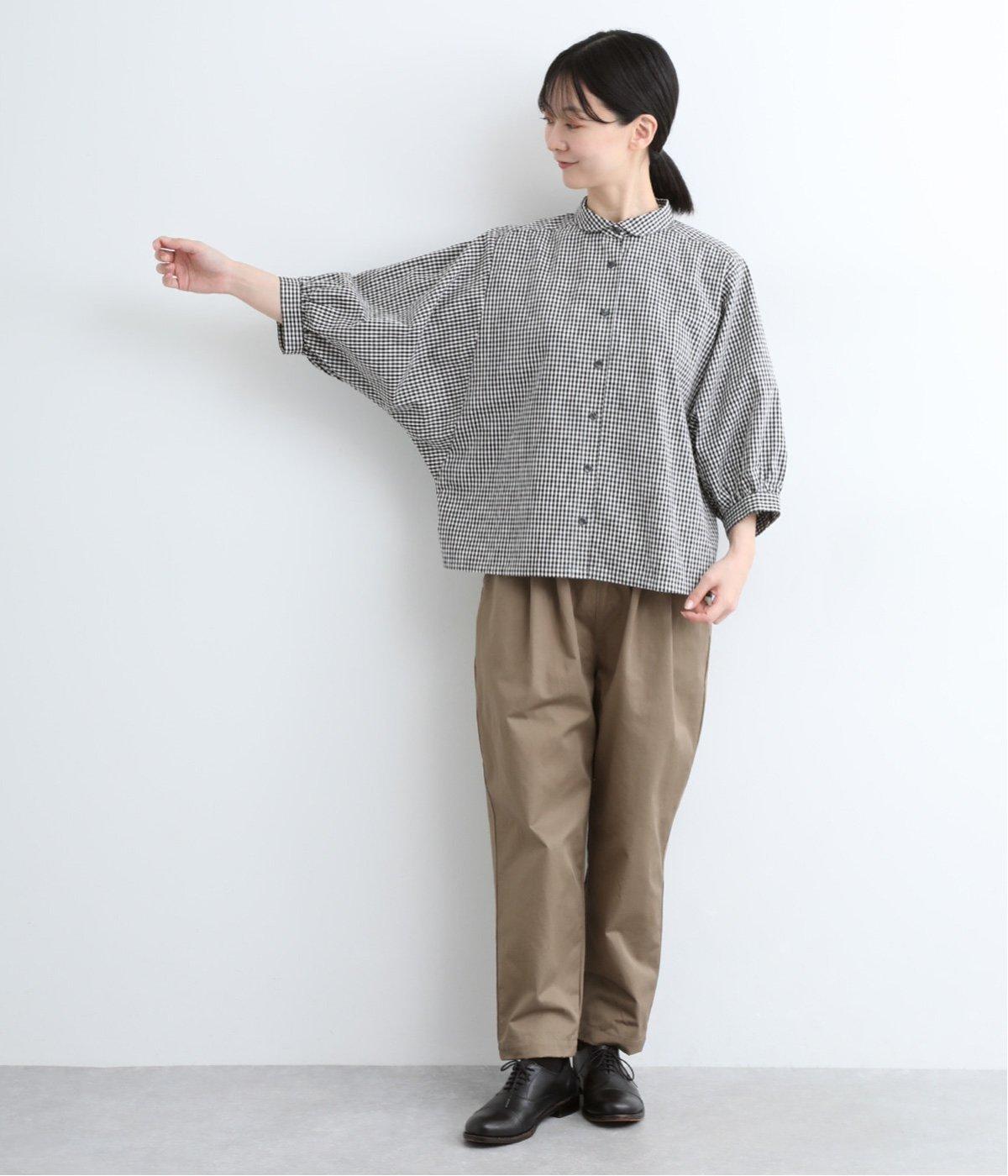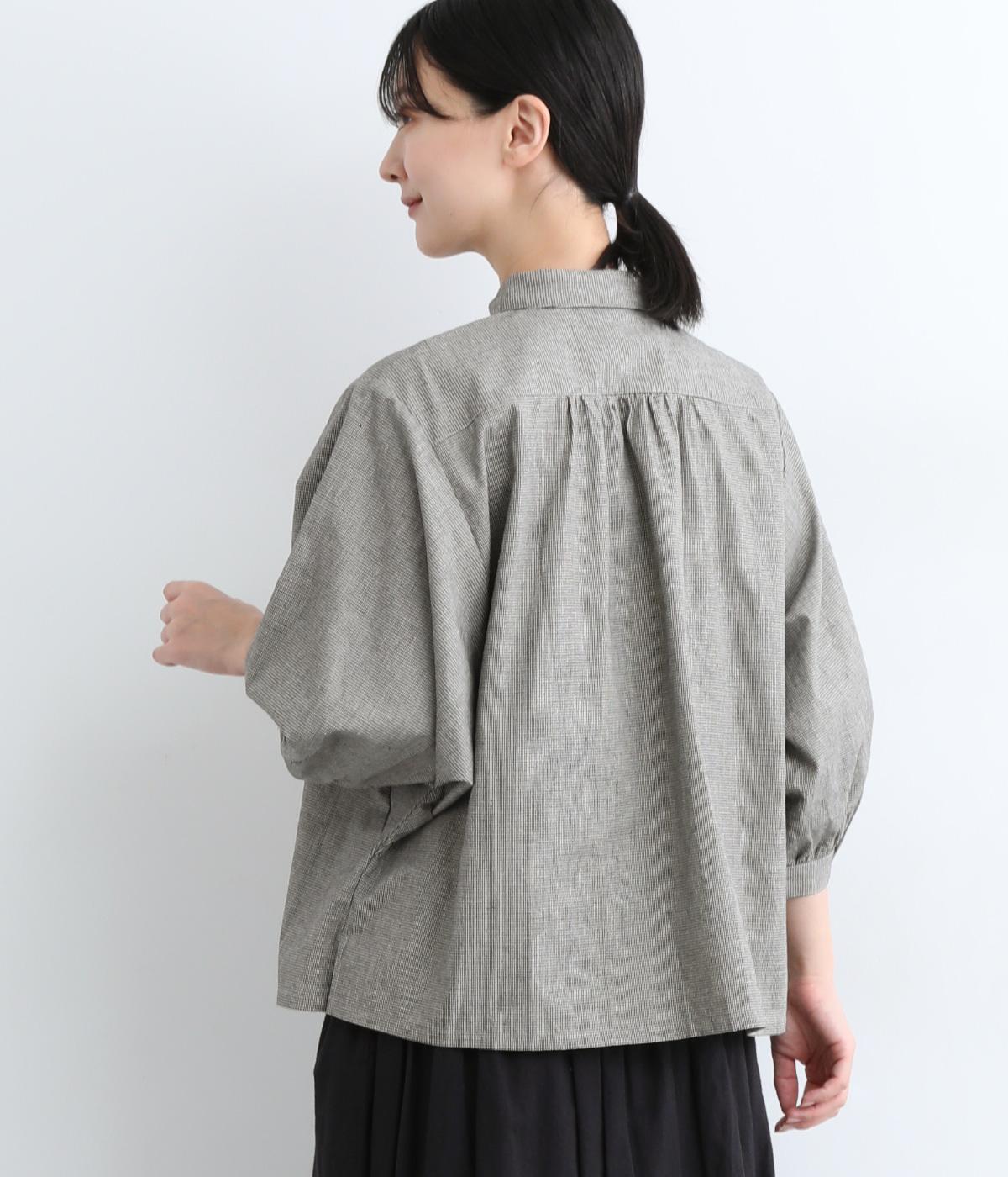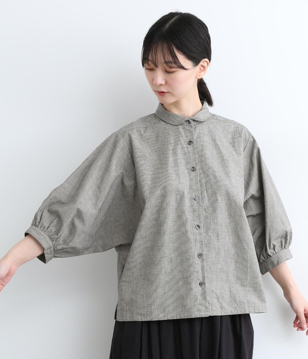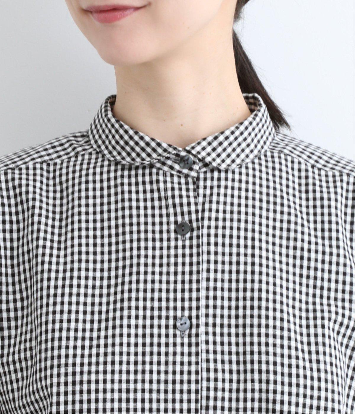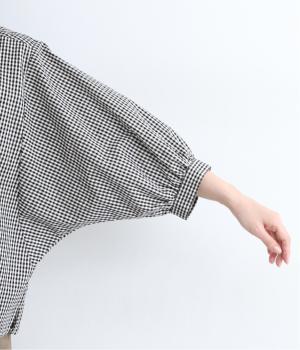 着こなしやすくスタイリングのポイントになるモノトーンのチェック柄ブラウス。ゆったりとしたドルマンスリーブや丸襟が大人ガーリーな雰囲気に。ボタン開きにサイドスリット入りで羽織り使いもたのしめます。ゆったりシルエットと7分袖の抜け感も◎。
