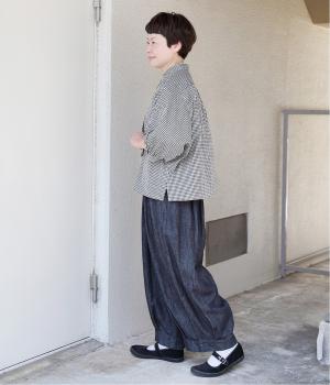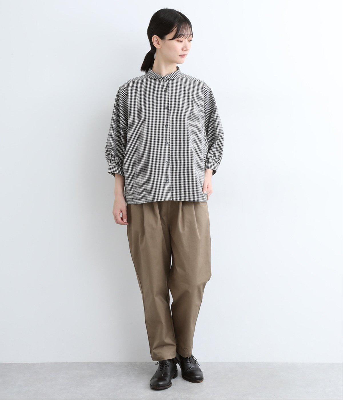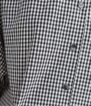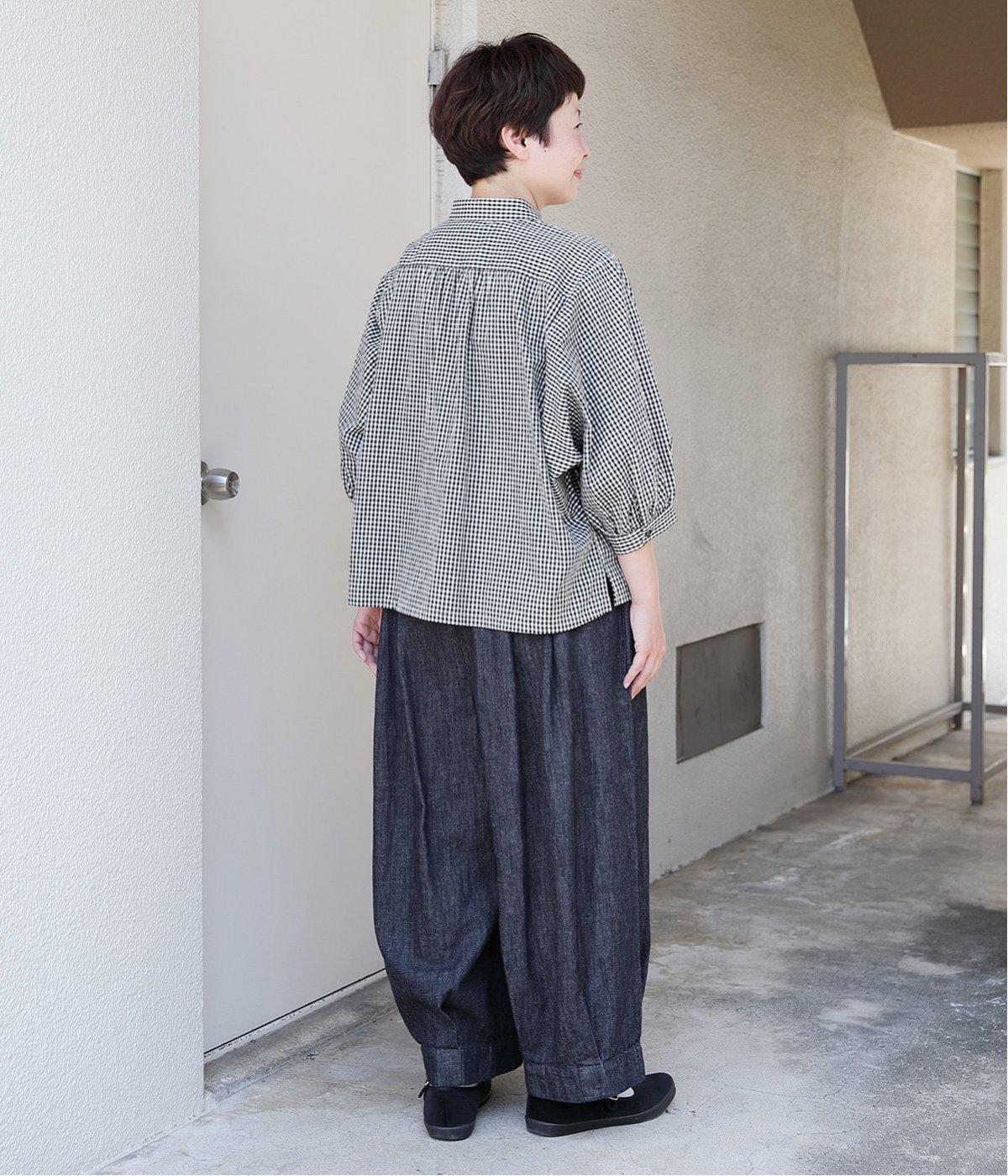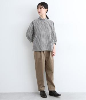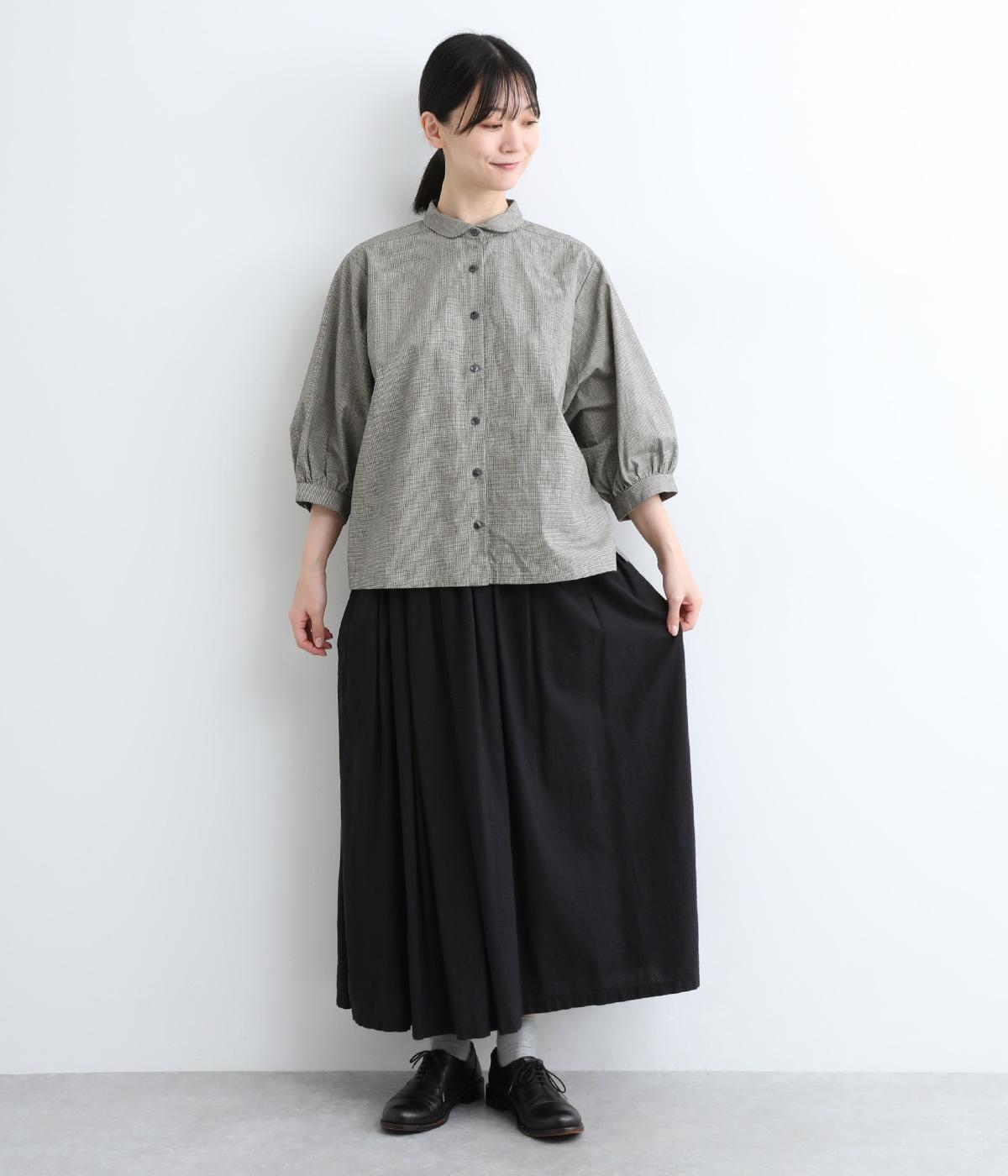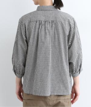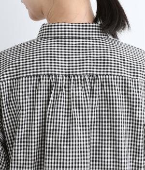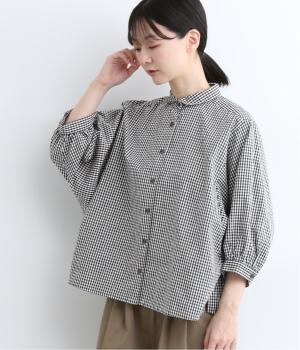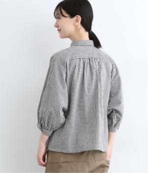 着こなしやすくスタイリングのポイントになるモノトーンのチェック柄ブラウス。ゆったりとしたドルマンスリーブや丸襟が大人ガーリーな雰囲気に。ボタン開きにサイドスリット入りで羽織り使いもたのしめます。ゆったりシルエットと7分袖の抜け感も◎。