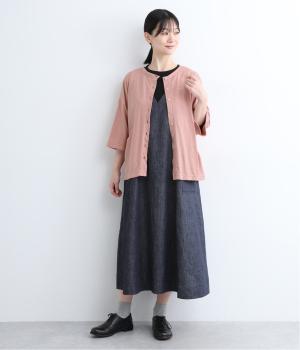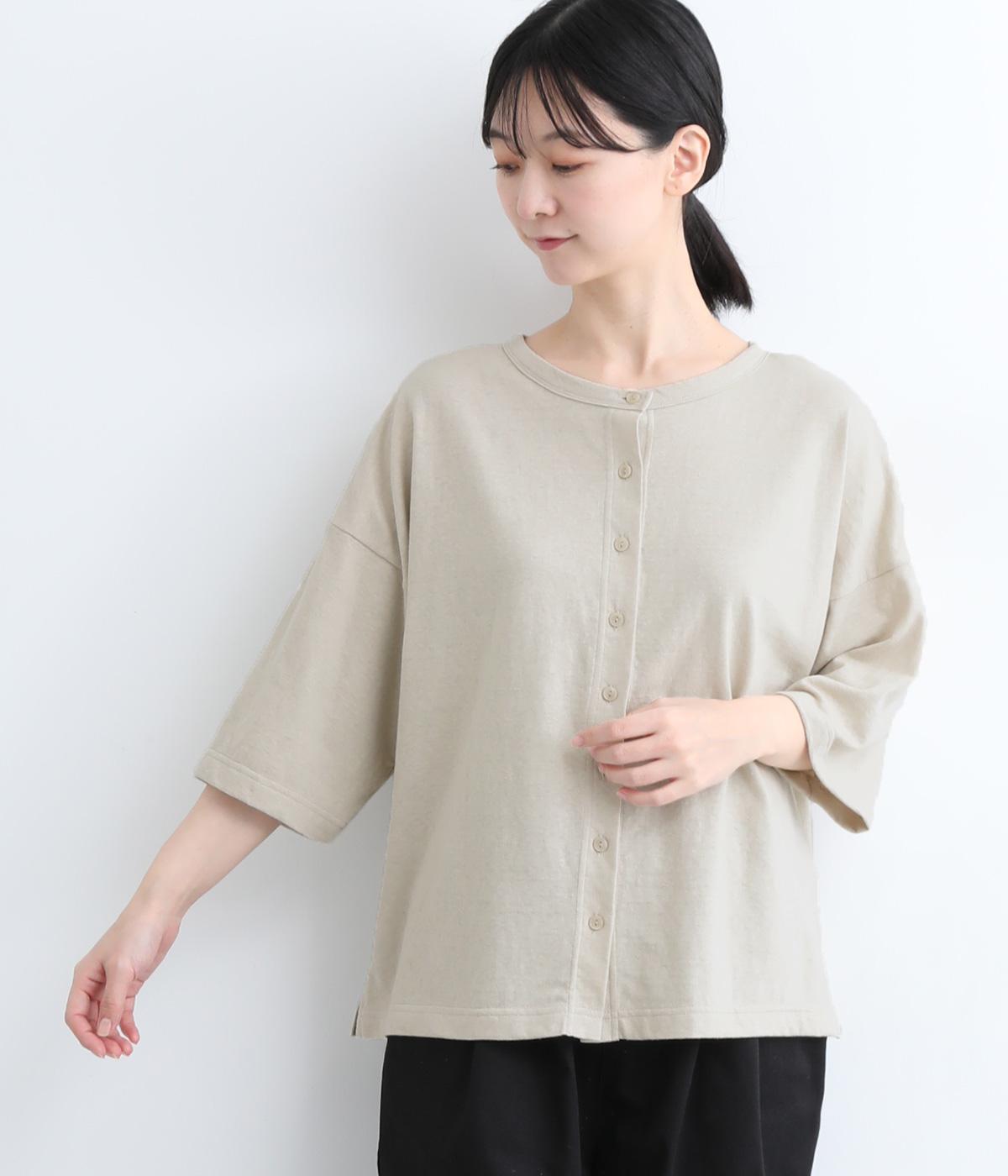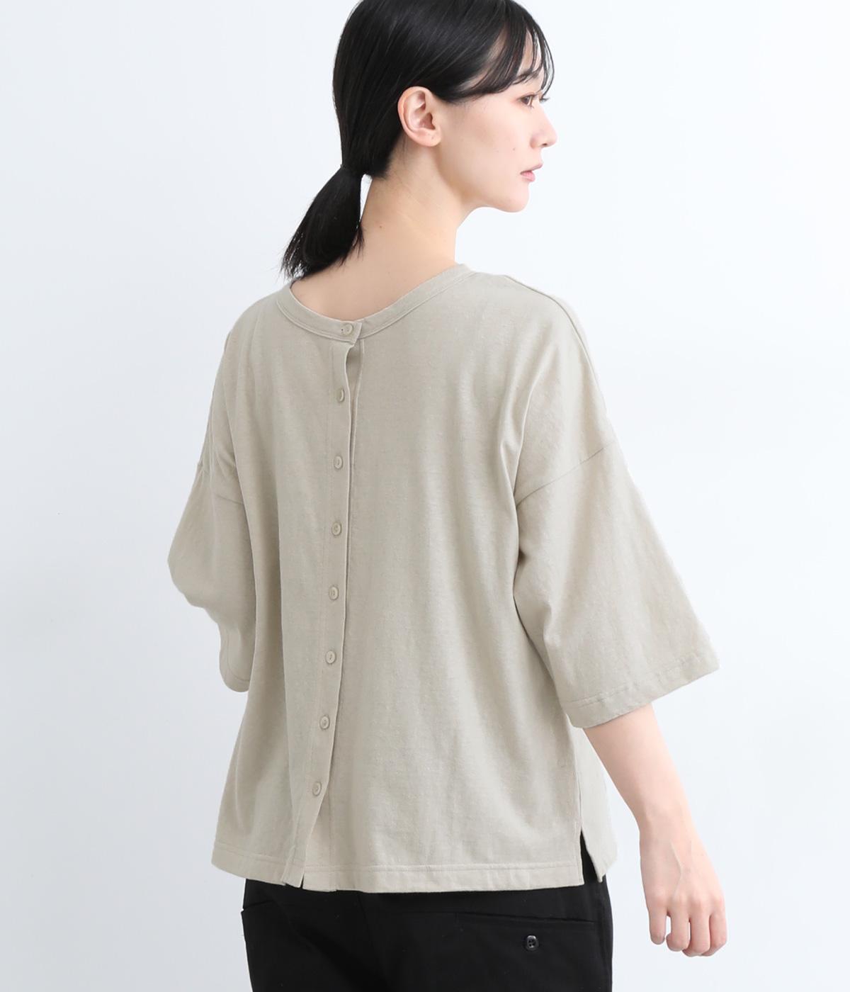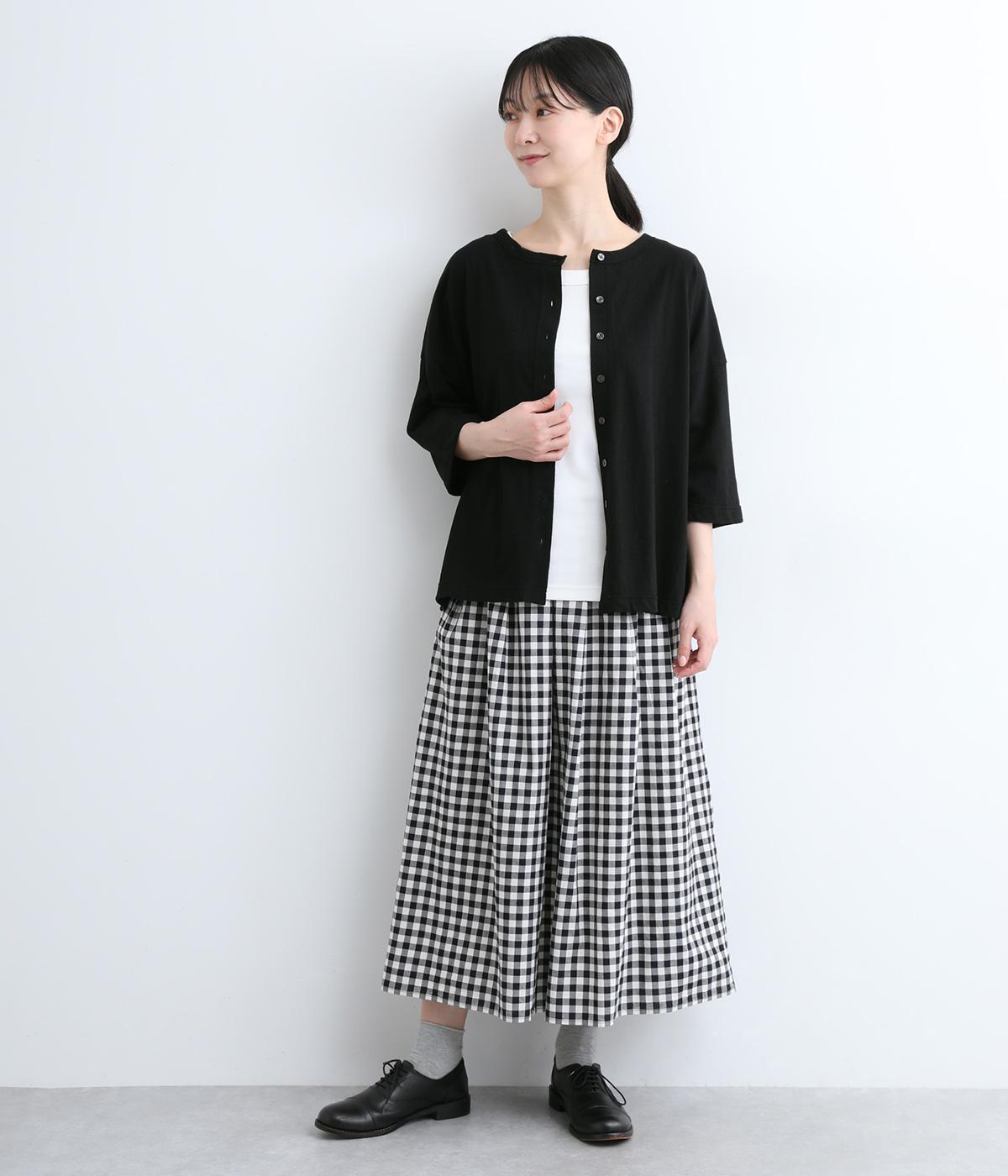 後ろボタンのプルオーバーにも、カーディガン風の羽織りとしても着まわせる前後2way。適度にゆとりのあるボックスシルエットで着まわしやすく、手元をすっきり見せた7分袖も◎。シワも気になりにくく持ち歩き用としても活躍。