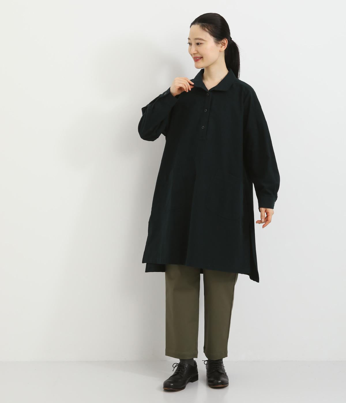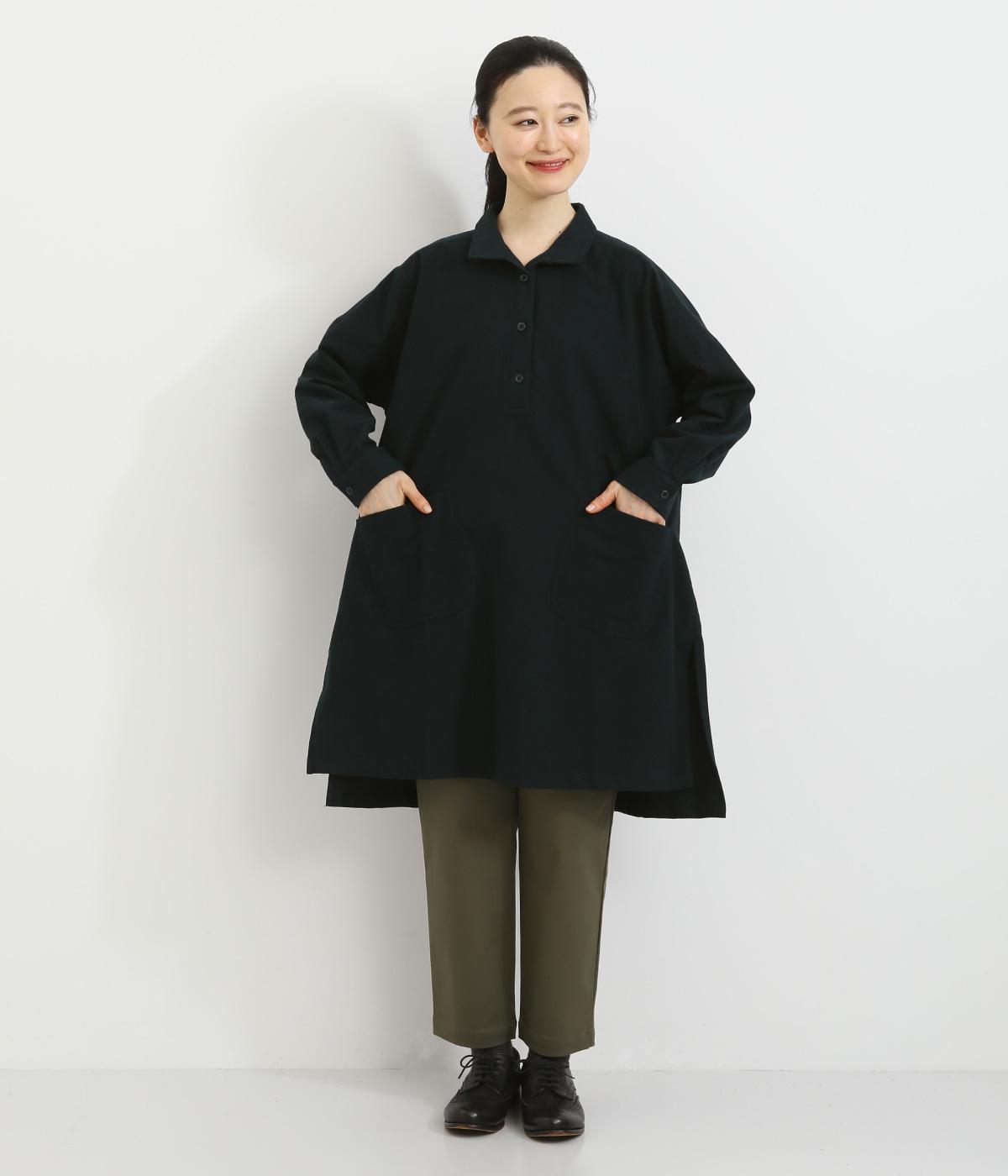 やわらかく保温性の高いフランネル生地で仕立てました。肌なじみよく、適度なハリがきちんと見えを叶えます。あたたかみのある優しい雰囲気の素材感です。