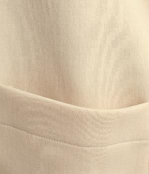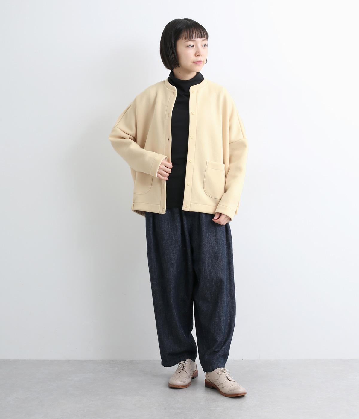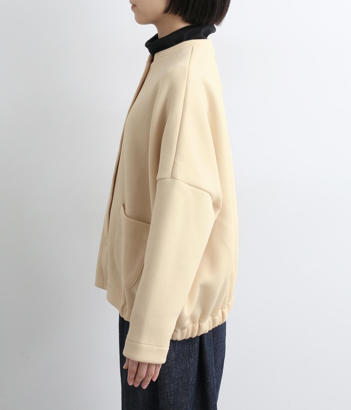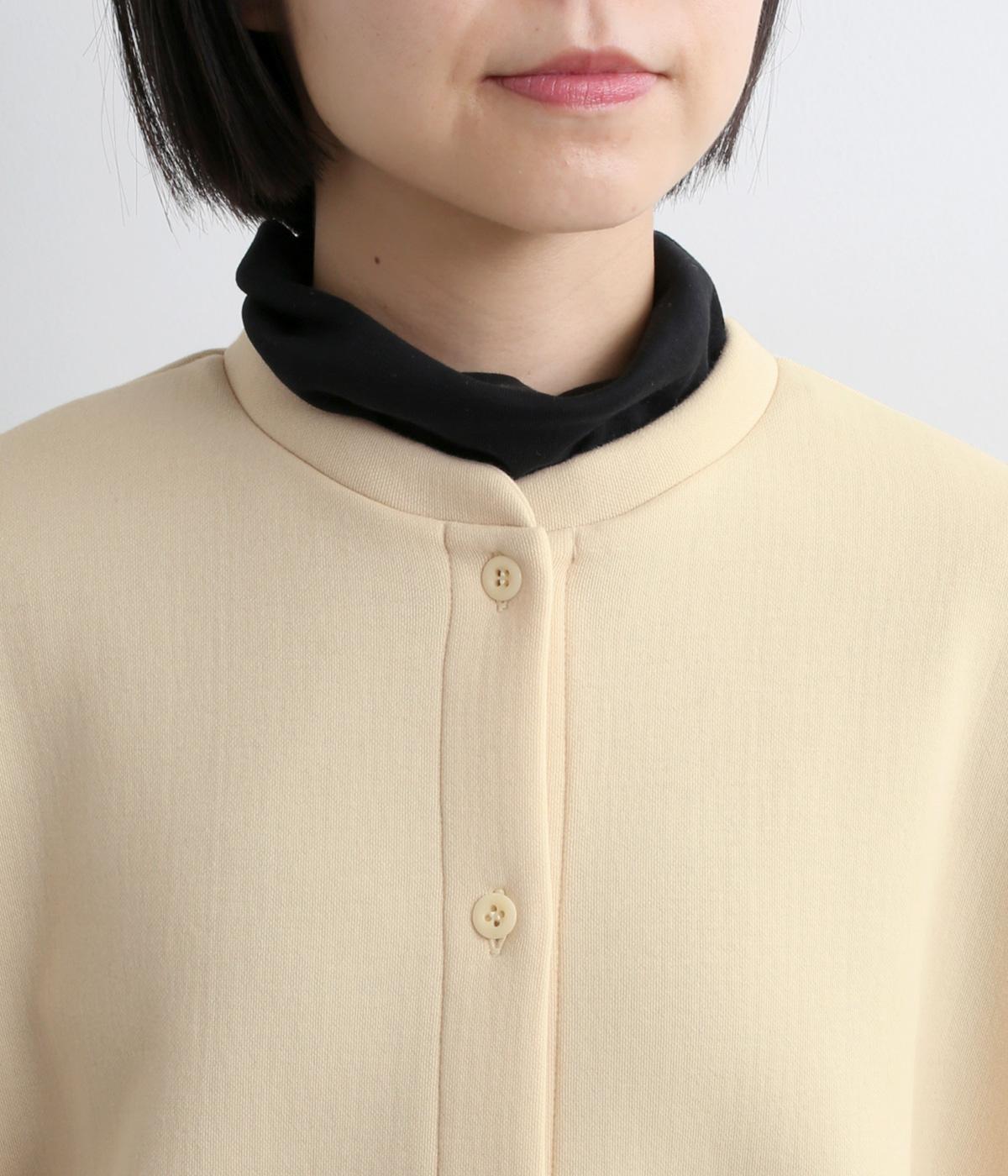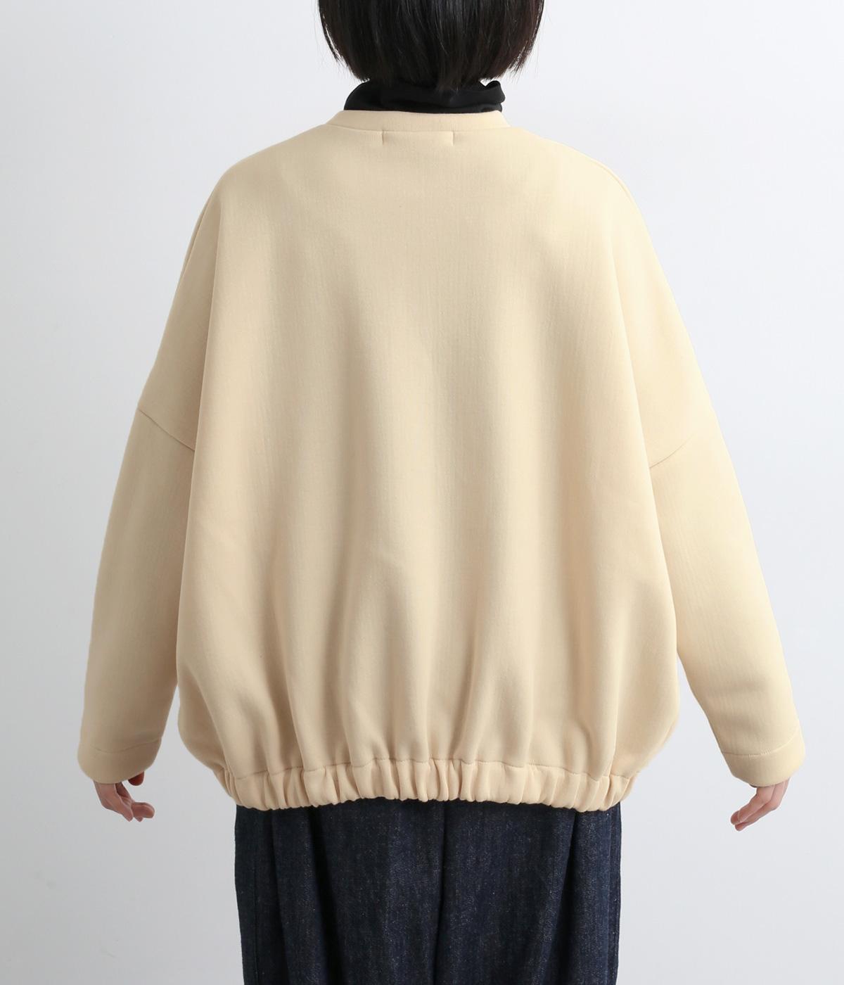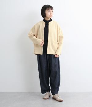適度な厚みと弾力のあるコットン混ダンボールニット生地で仕立てました。空気を含む構造のため保温性が高く、軽いのにハリがあって型崩れしにくいのが魅力です。