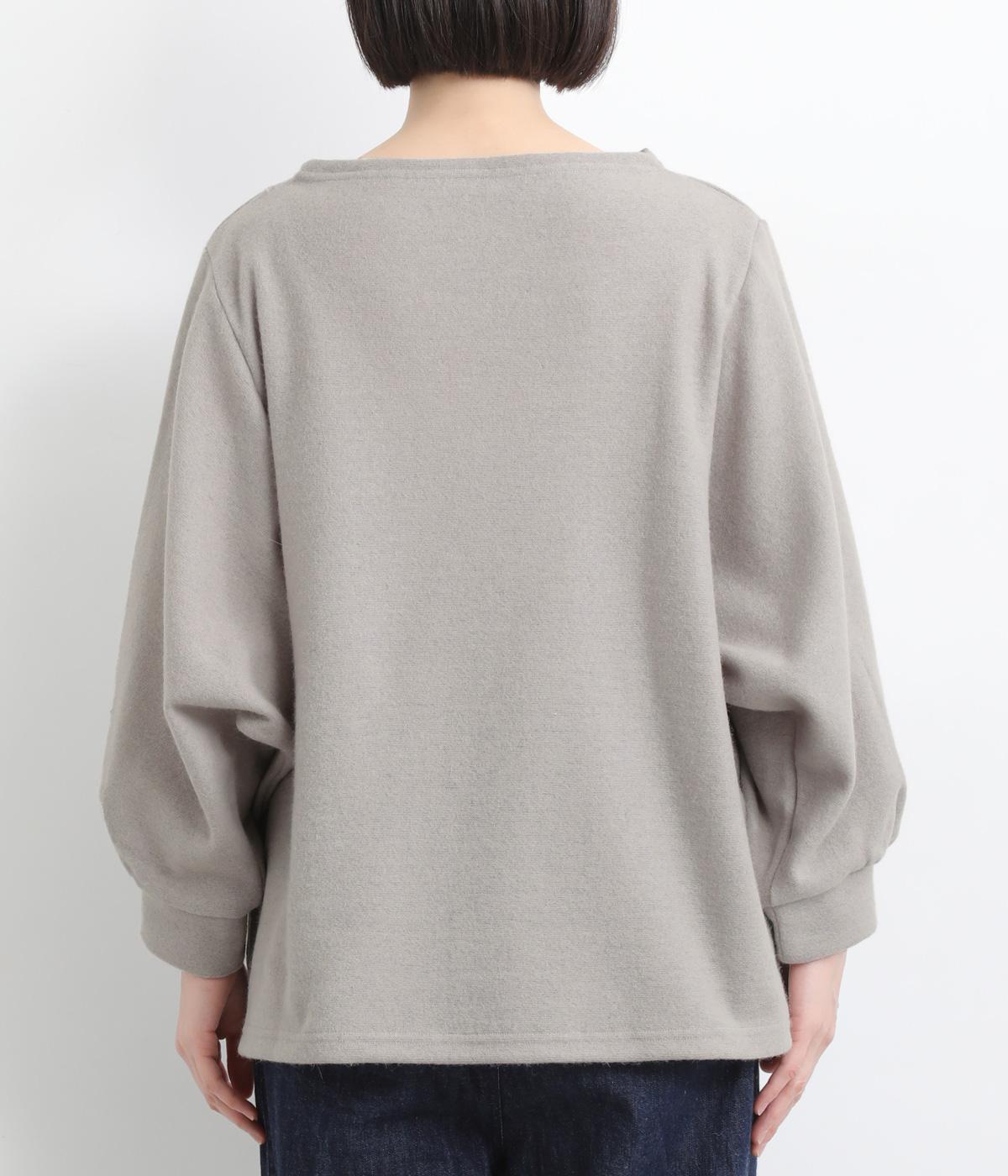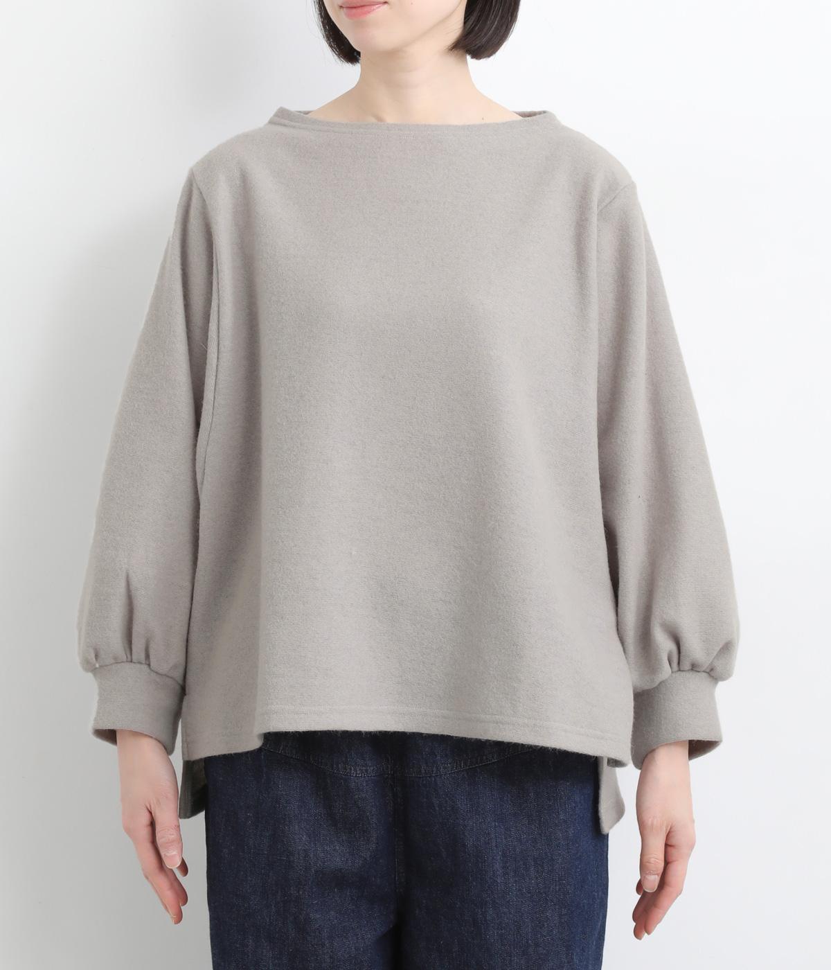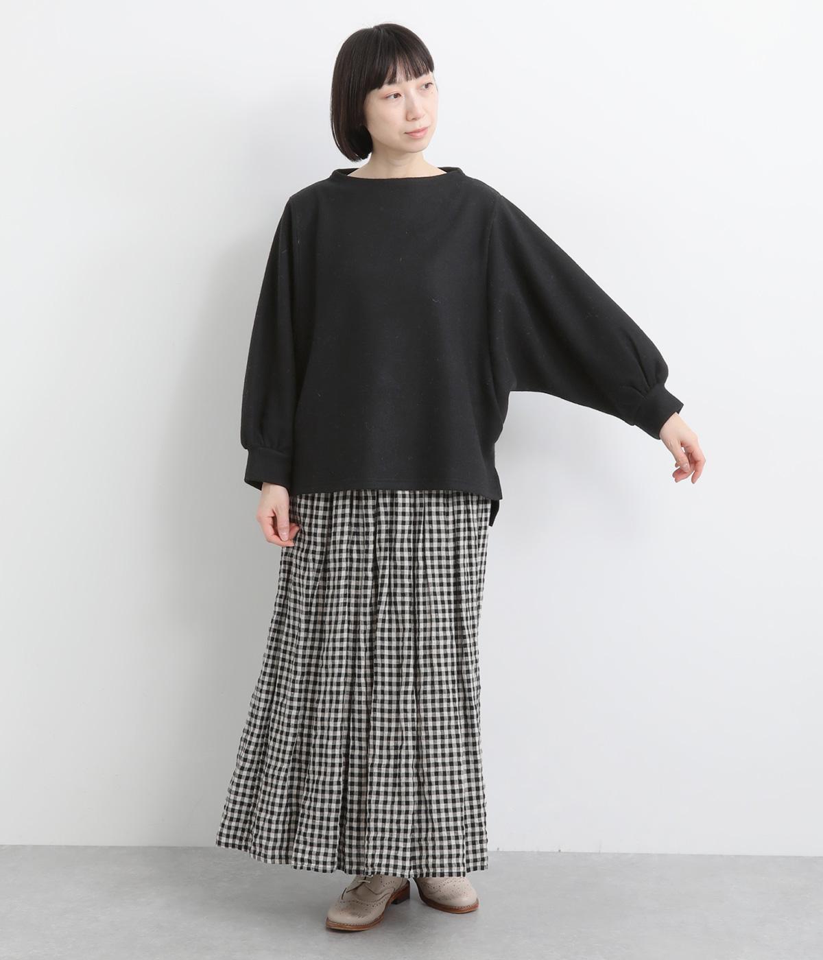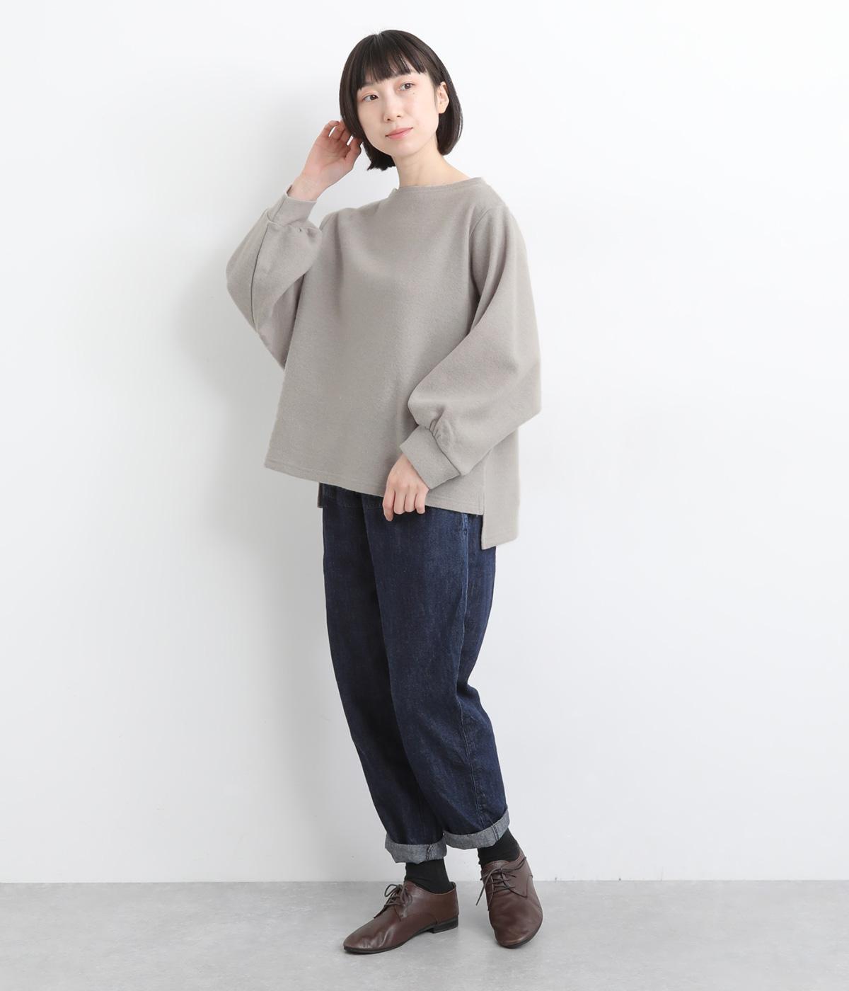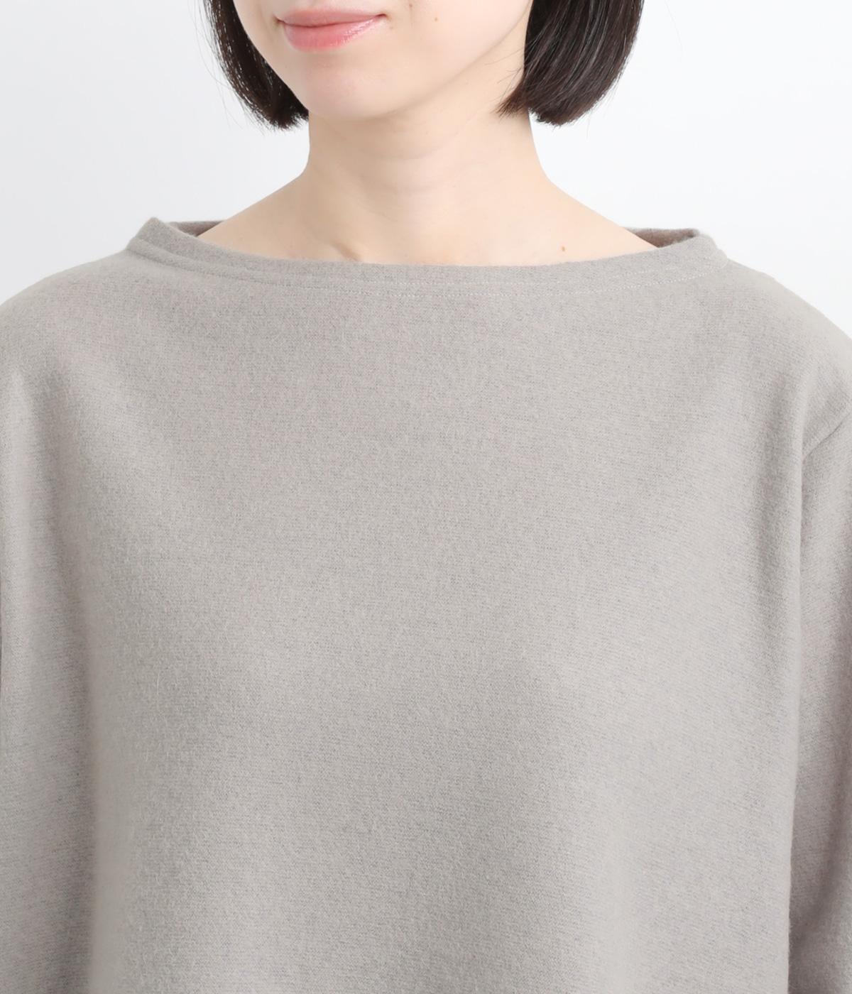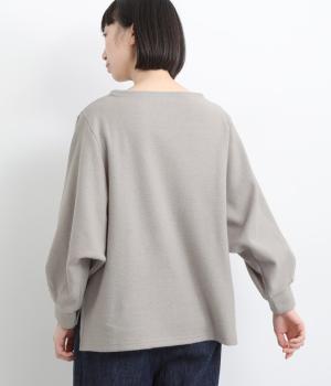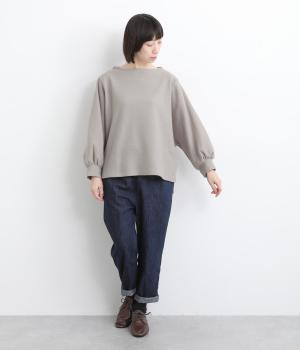 ゆとりを持たせた身幅と、丸みのあるワイドスリーブがやさしい雰囲気を演出。肩まわりがたっぷりとしたラインながら、ボートネックがほどよい上品さを添えています。前後差のある裾が抜け感をあたえ、着こなしに立体感をプラス。毎日のコーディネートに取り入れやすいデザインです。