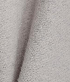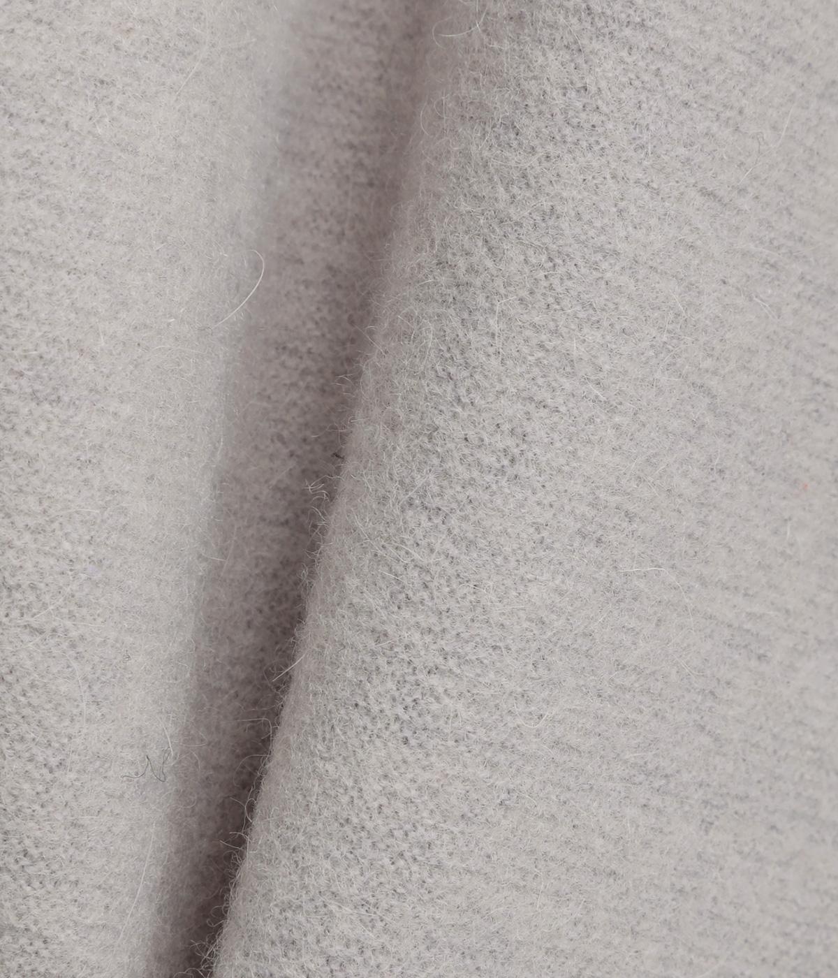 起毛がかったやわらかな天竺生地に、アンゴラ混ならではの細くしなやかな毛足がふんわりと寄り添います。軽やかで、空気をふくむようなあたたかな着心地。ほどよい厚みでリラックス感のある素材です。