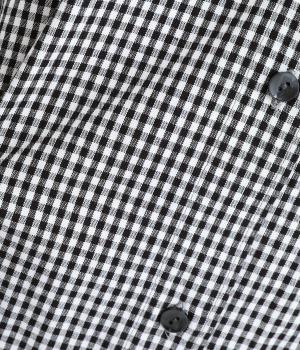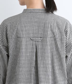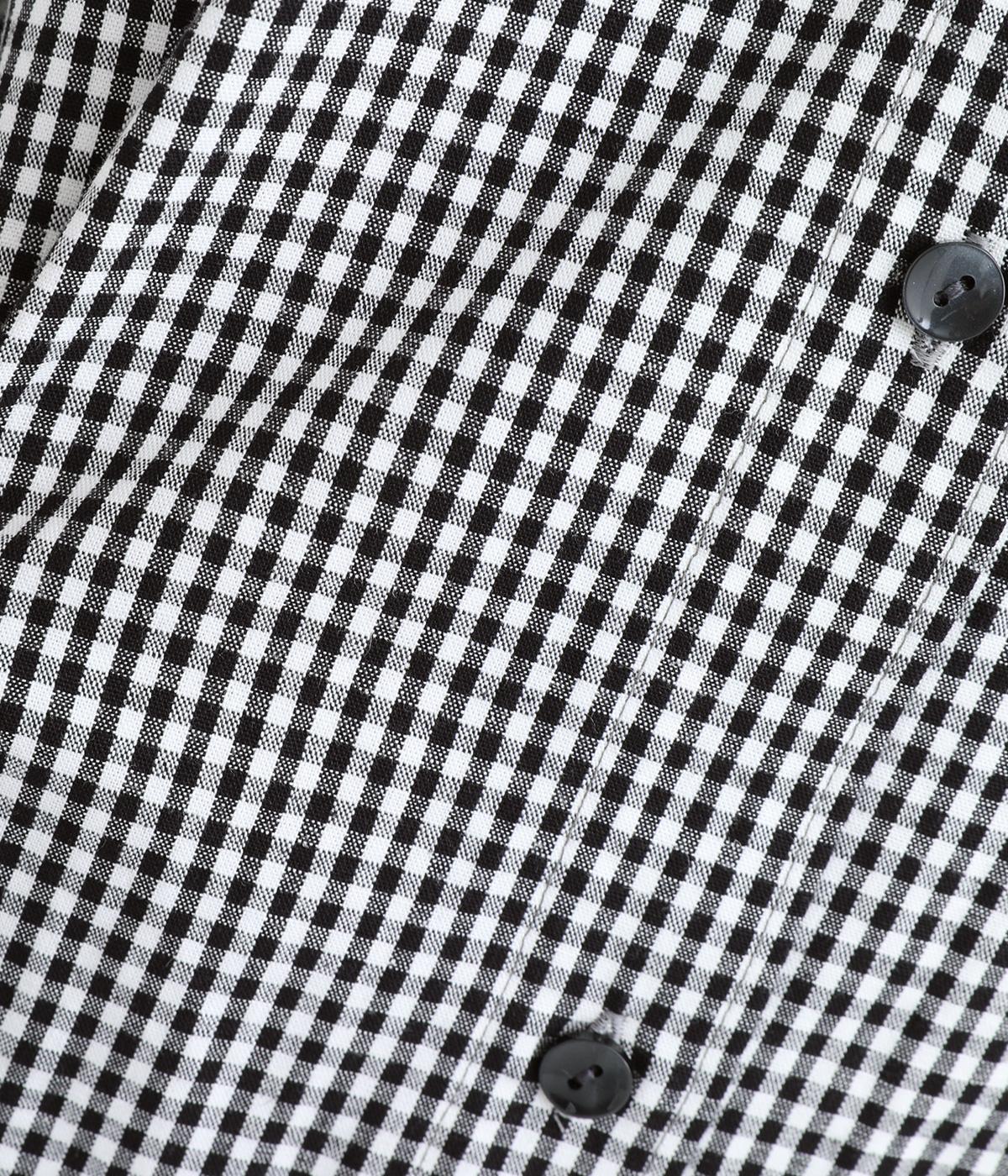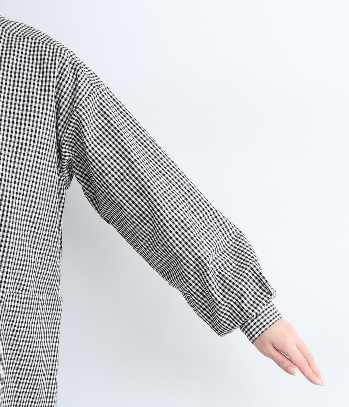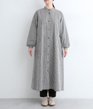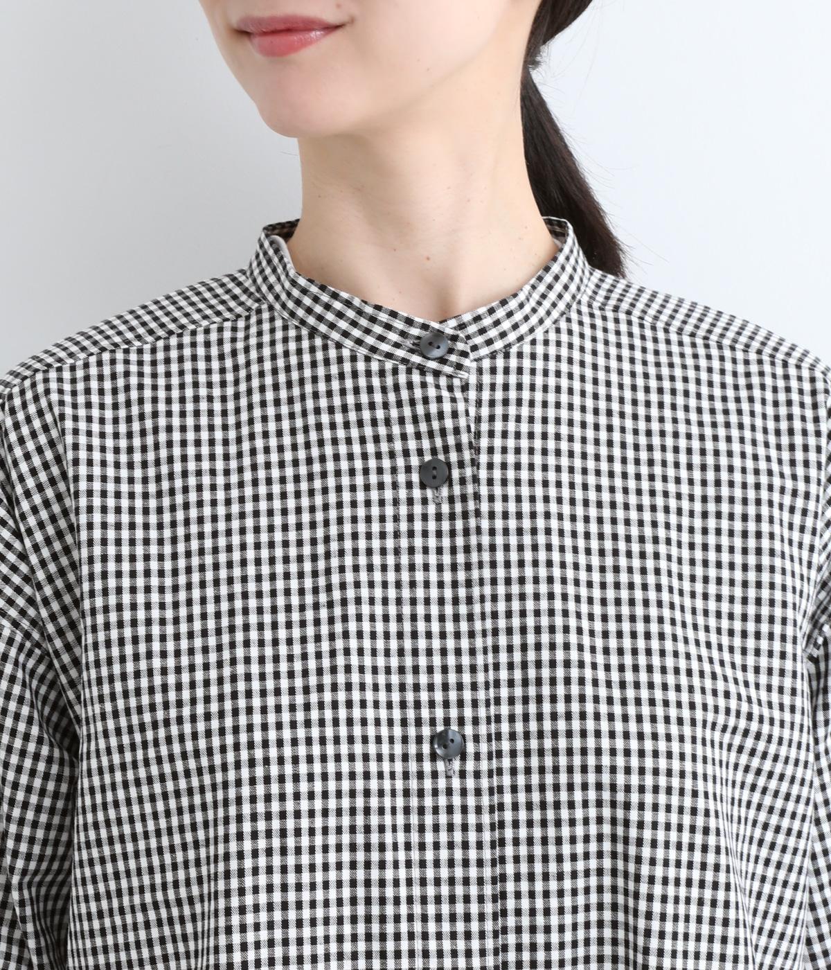 総柄でも着こなしやすい、モノトーンのギンガムチェックワンピースです。すっきりしたバンドカラーに適度なフレアシルエット、サイドポケットつきでデイリー使いしやすいデザインに。ふわりとさせた袖はカフスつきで、ラフに折り返しても◎。