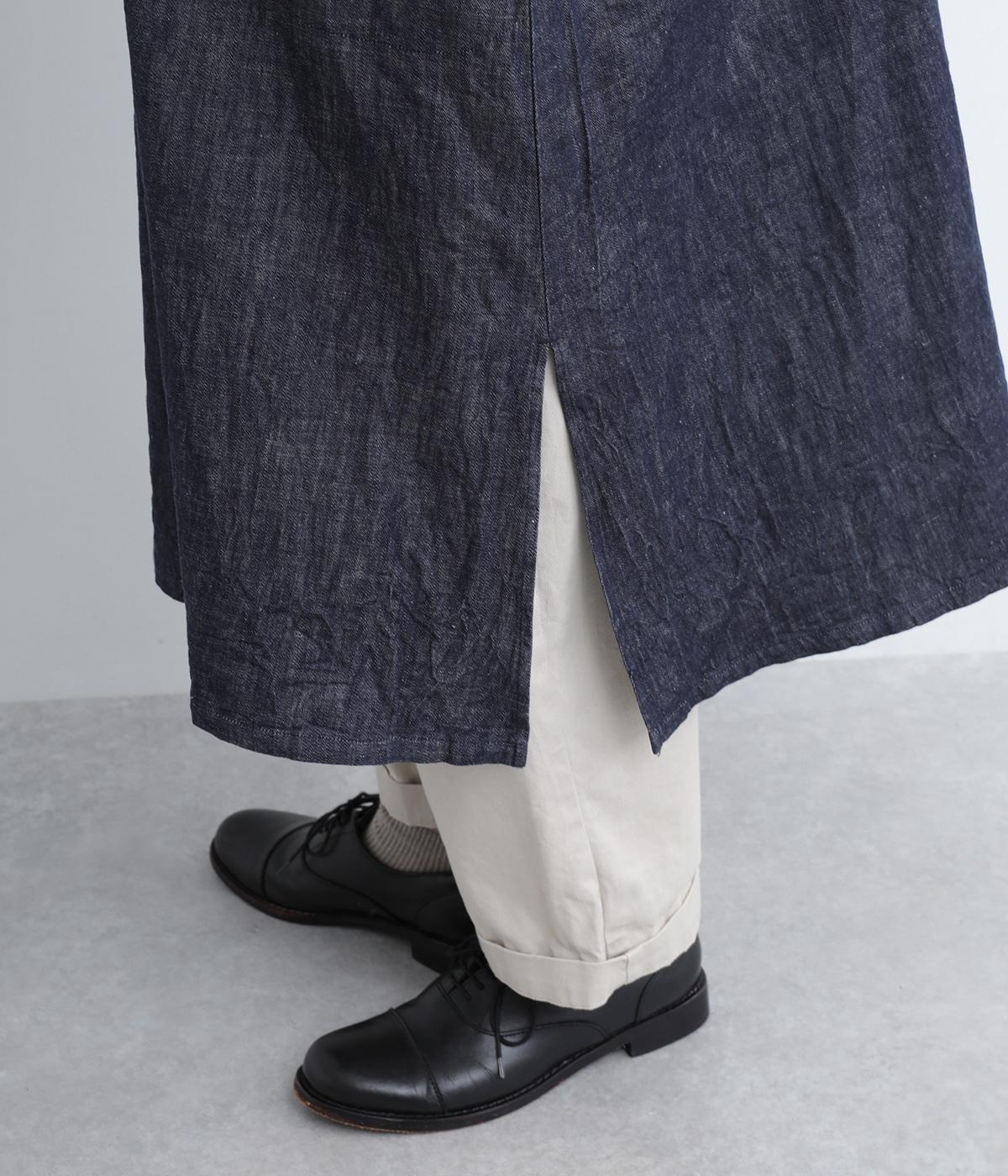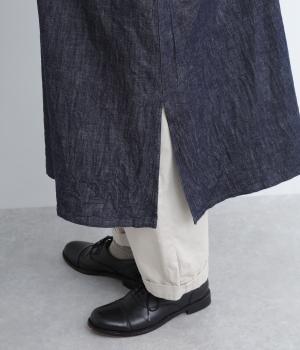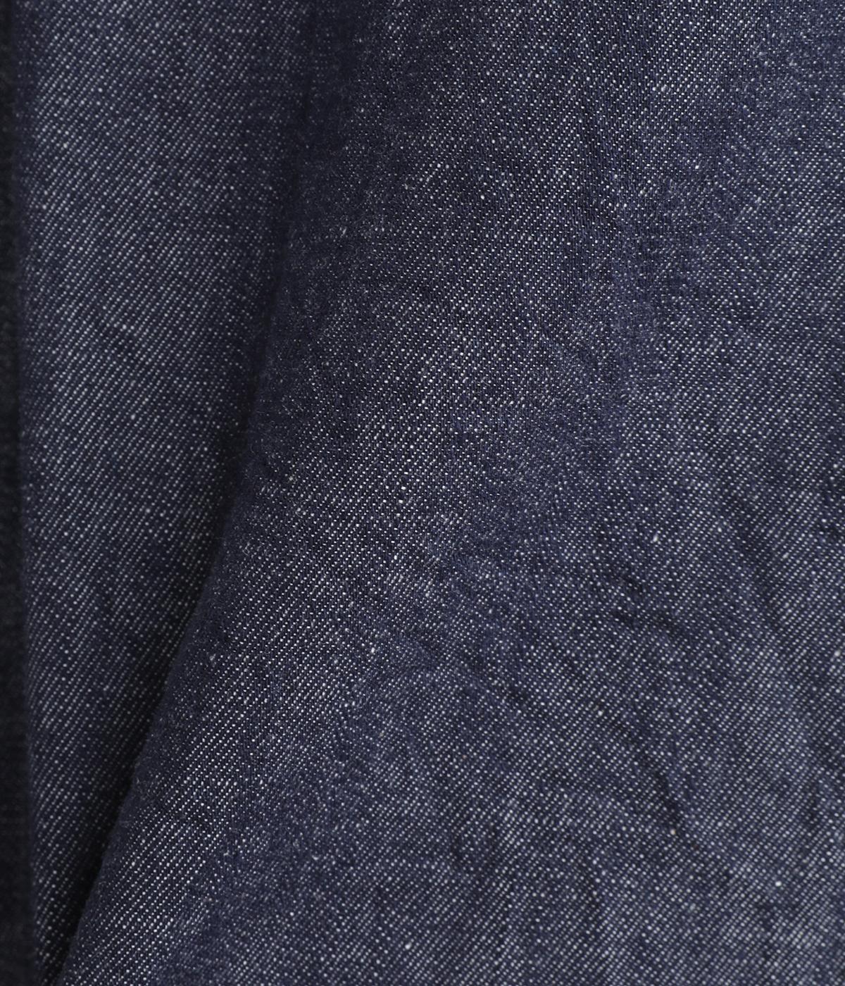 縫製後の製品洗い加工によって洗いざらしのようなナチュラルな風合いを惹き出したコットンデニムを採用。使い勝手のいい薄めの生地感ながらしっかりとハリがあってシルエットをすっきり描いてくれます。