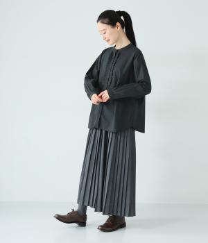 細い糸を使って高密度に織り上げた、とても軽くさらりとした肌ざわりのコットン生地です。ほどよいハリ感が、ふんわりと広がる女性らしいシルエットを表現。薄手でロングシーズン着まわせます。