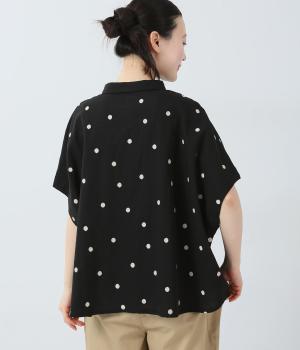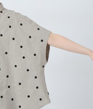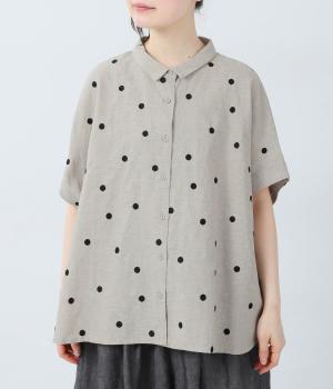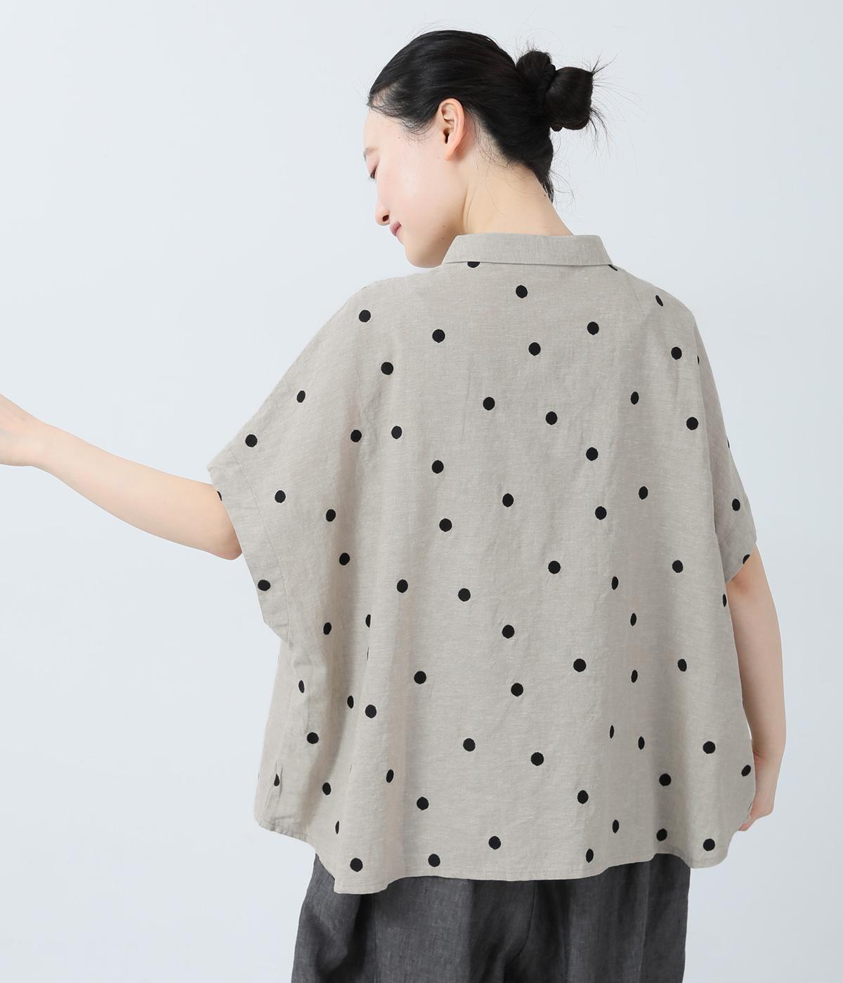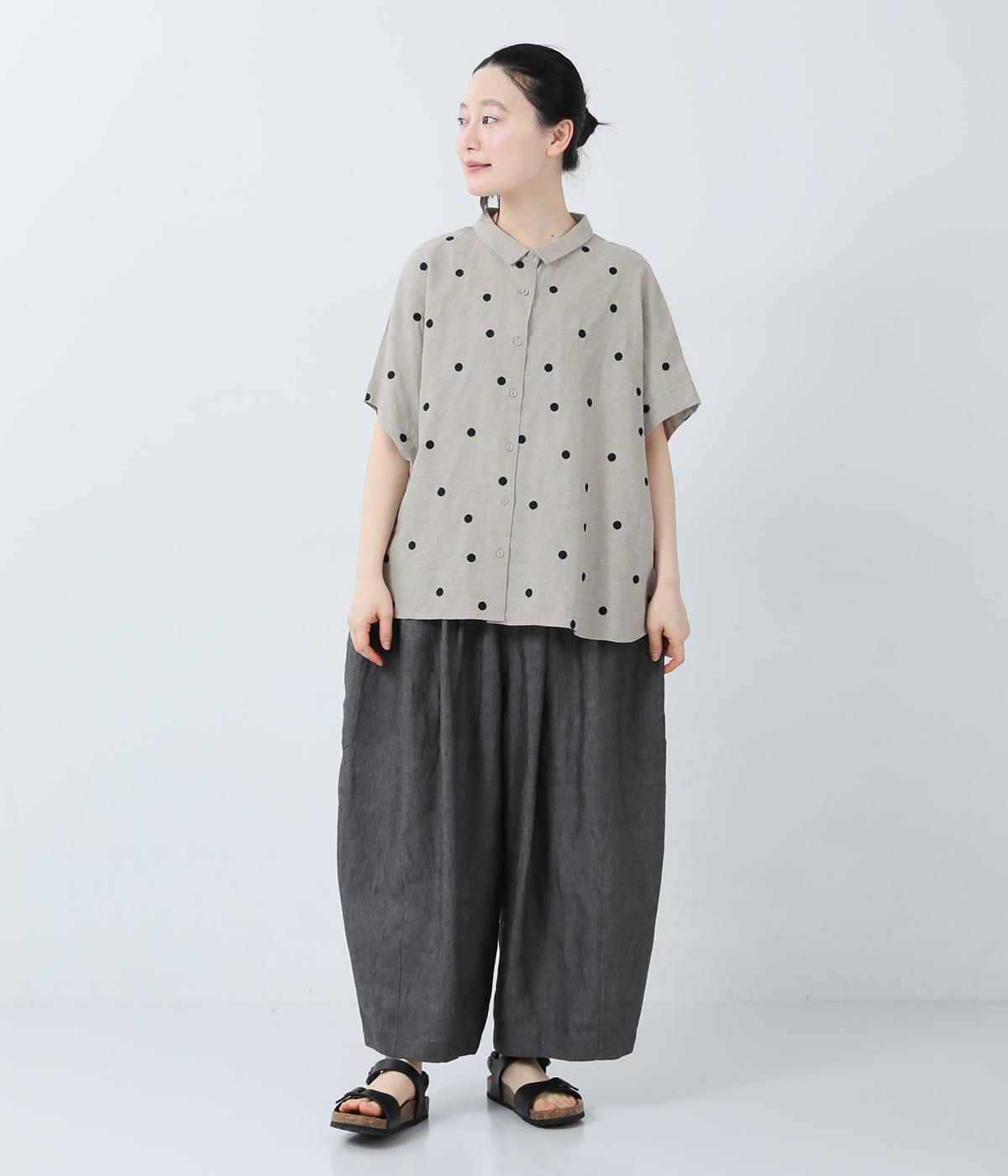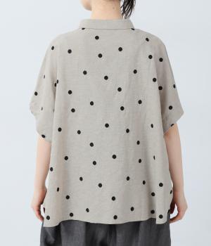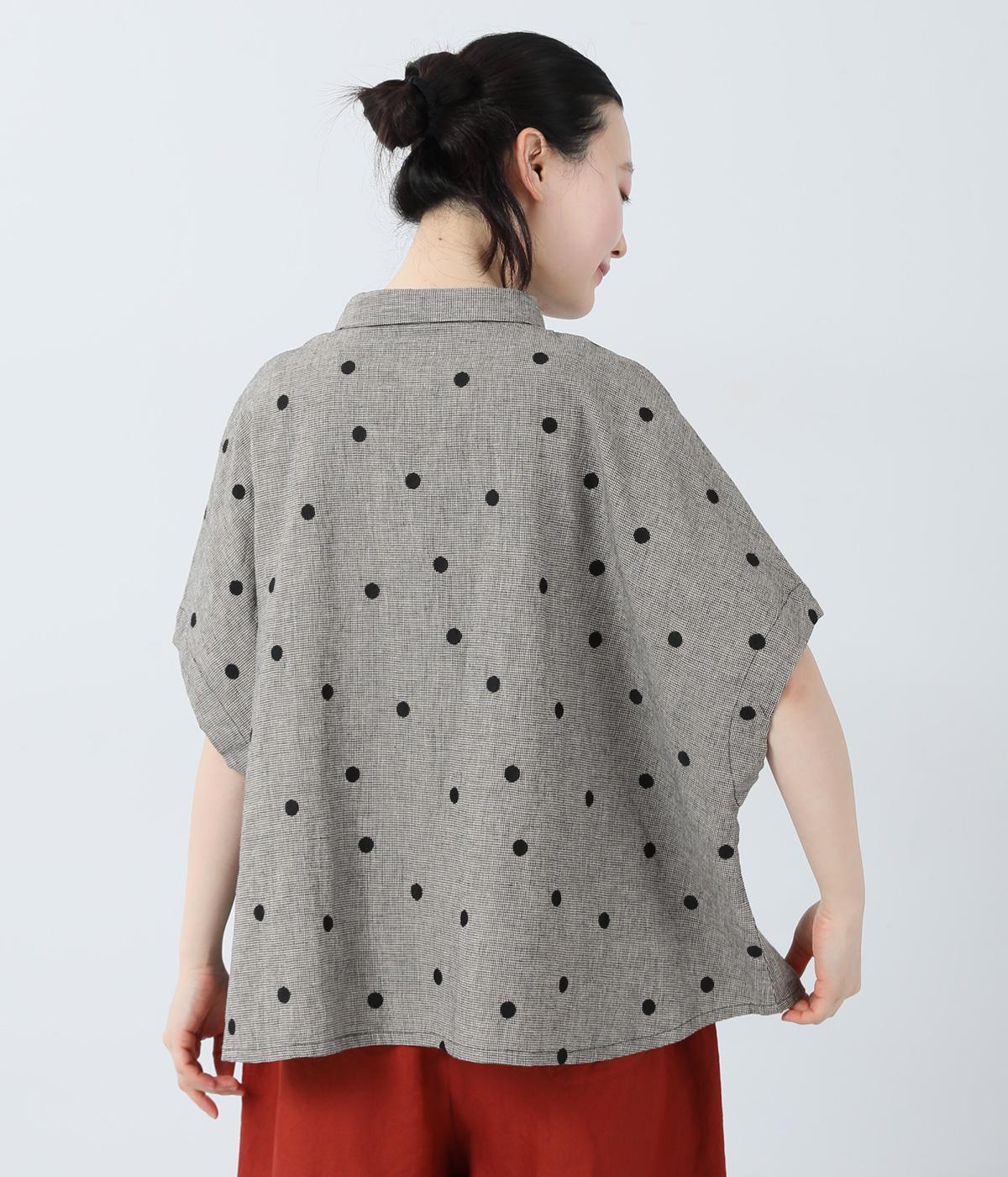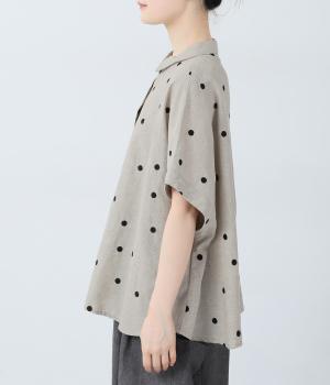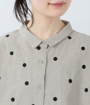 コットンリネンスカラップ刺繍7分袖ブラウス