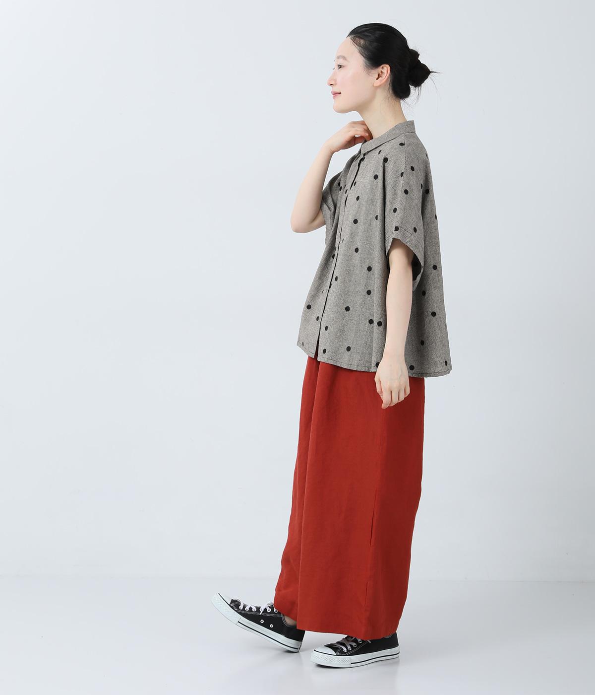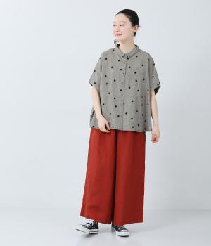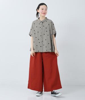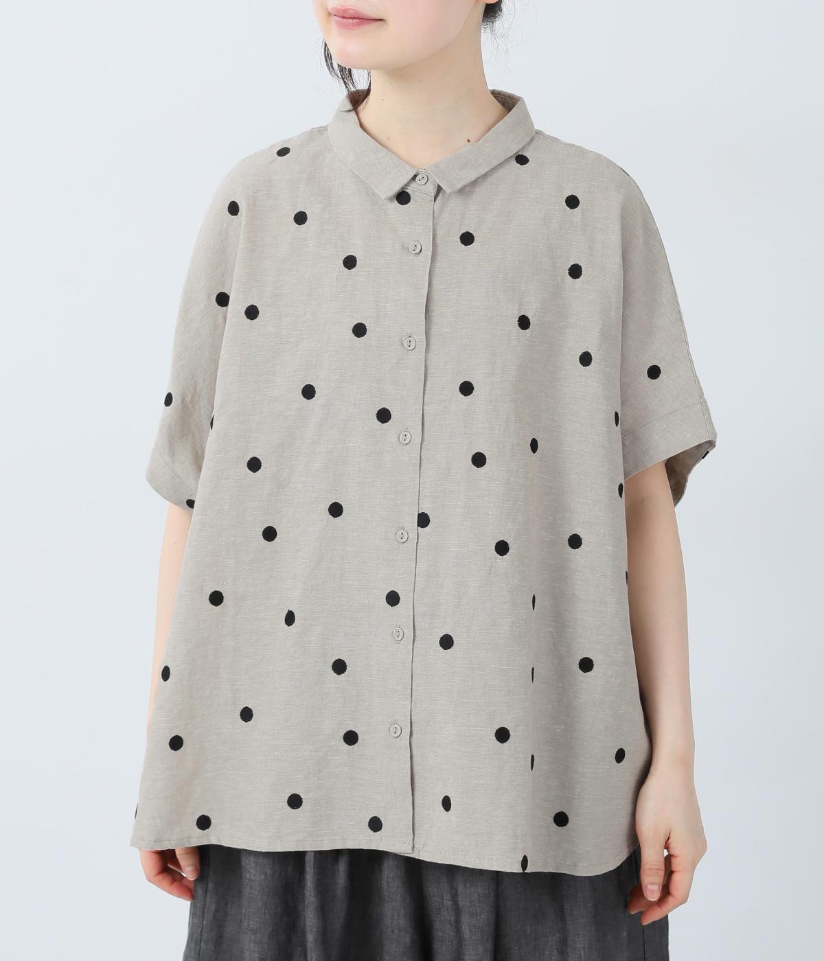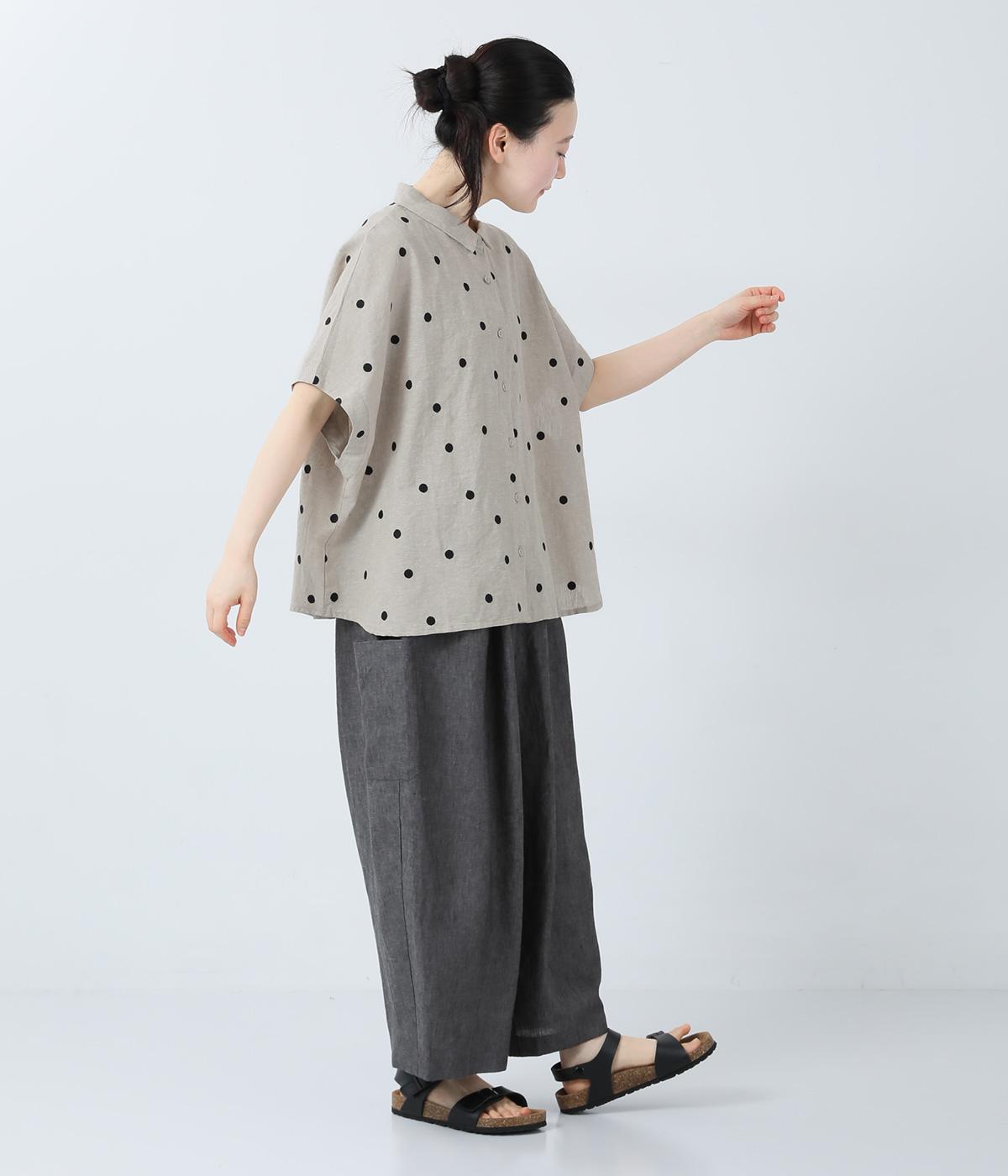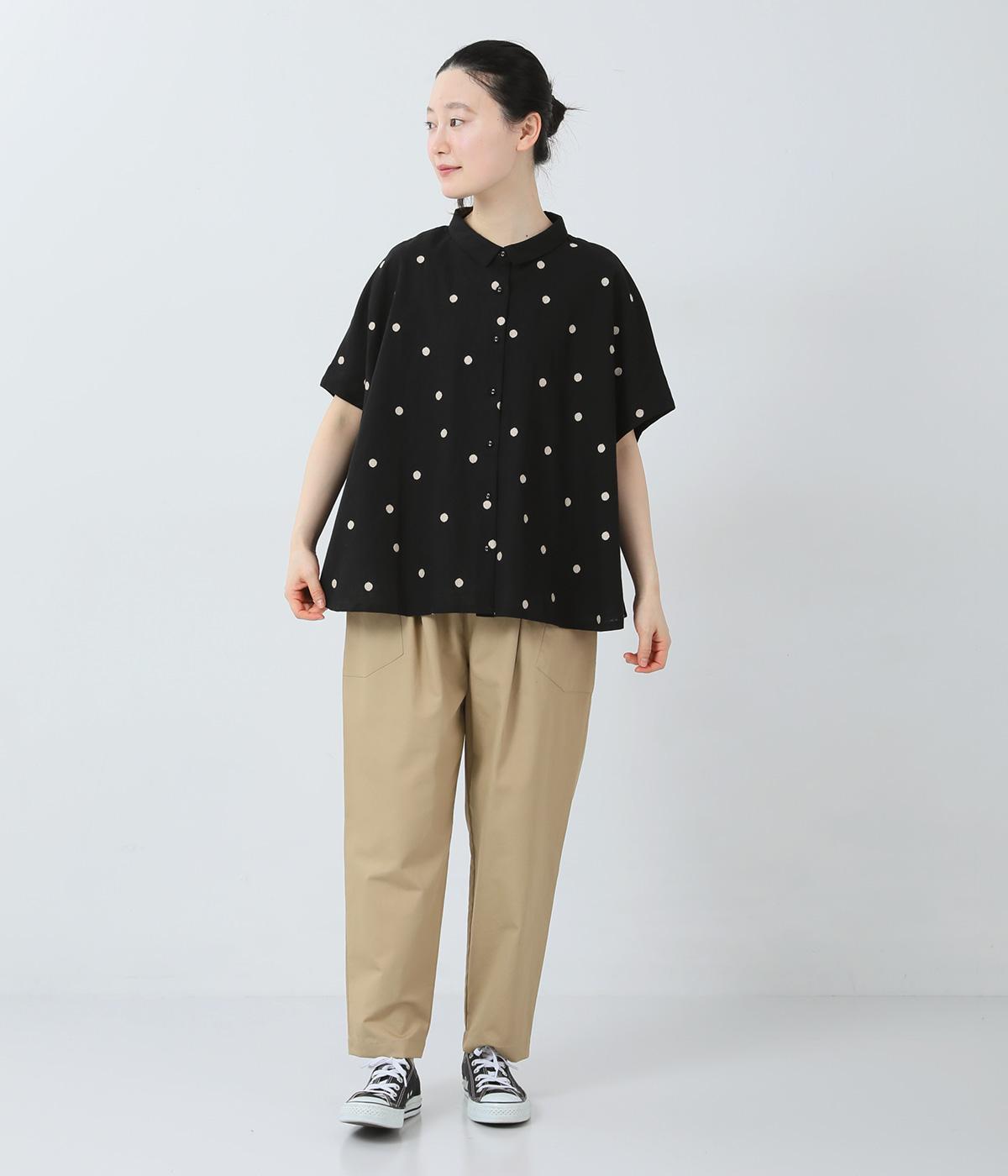 コットンリネンスカラップ刺繍7分袖ブラウス
