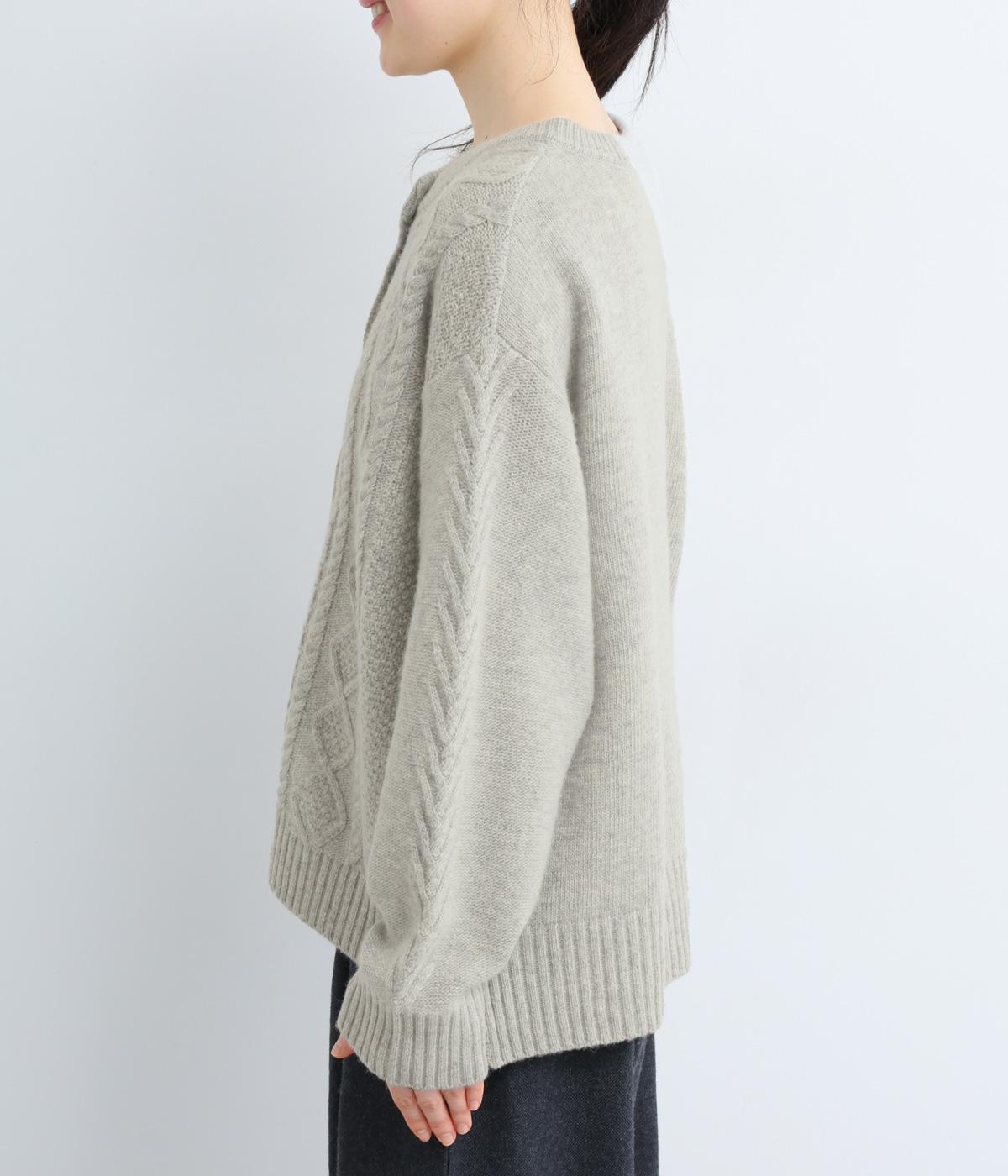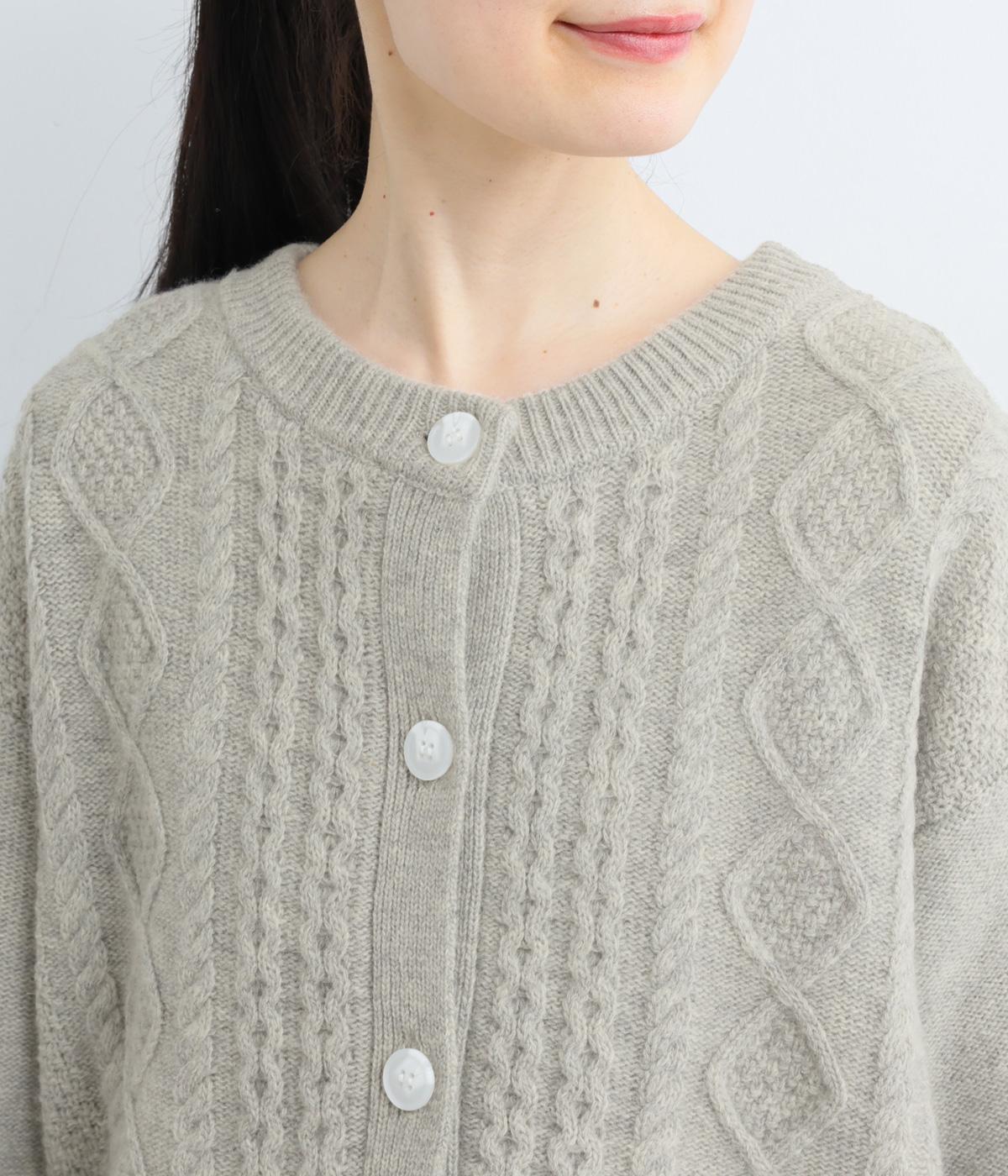 ほっこりとしたあたたかみを感じさせるケーブル編みカーディガン。適度なゆとりで羽織りやすく、裾スリットでボトム合わせも気持ちよくまとまります。タテの編み柄がすっきり見えを叶え、袖にも模様を入れてディテールにもこだわりを。