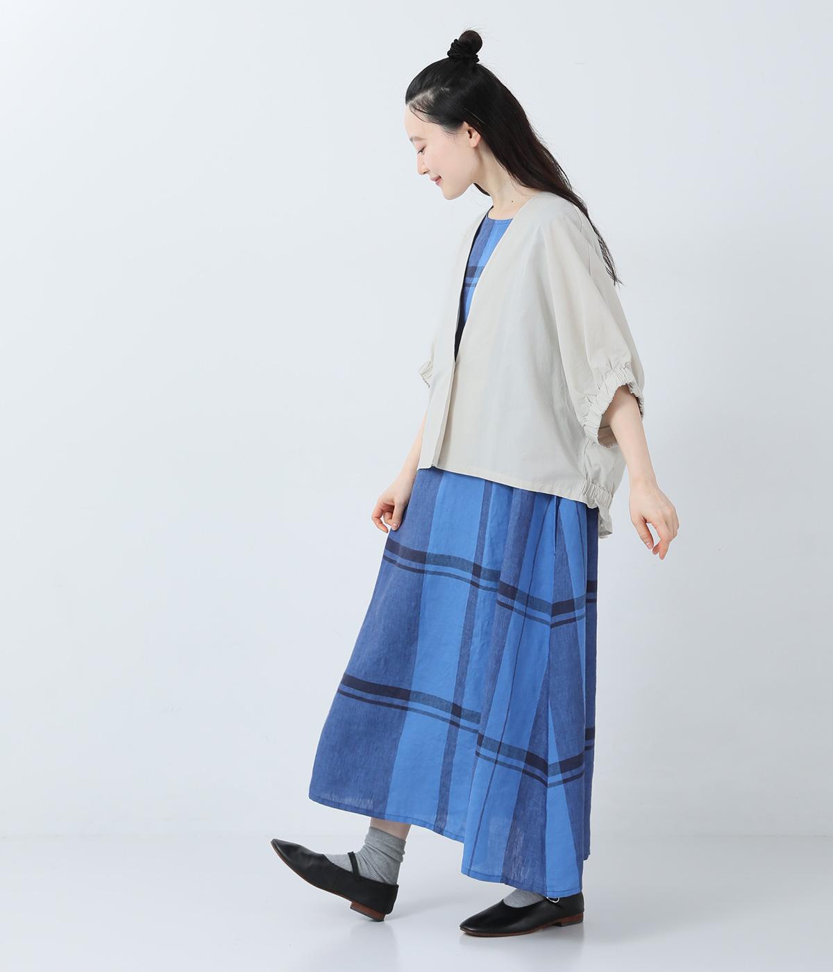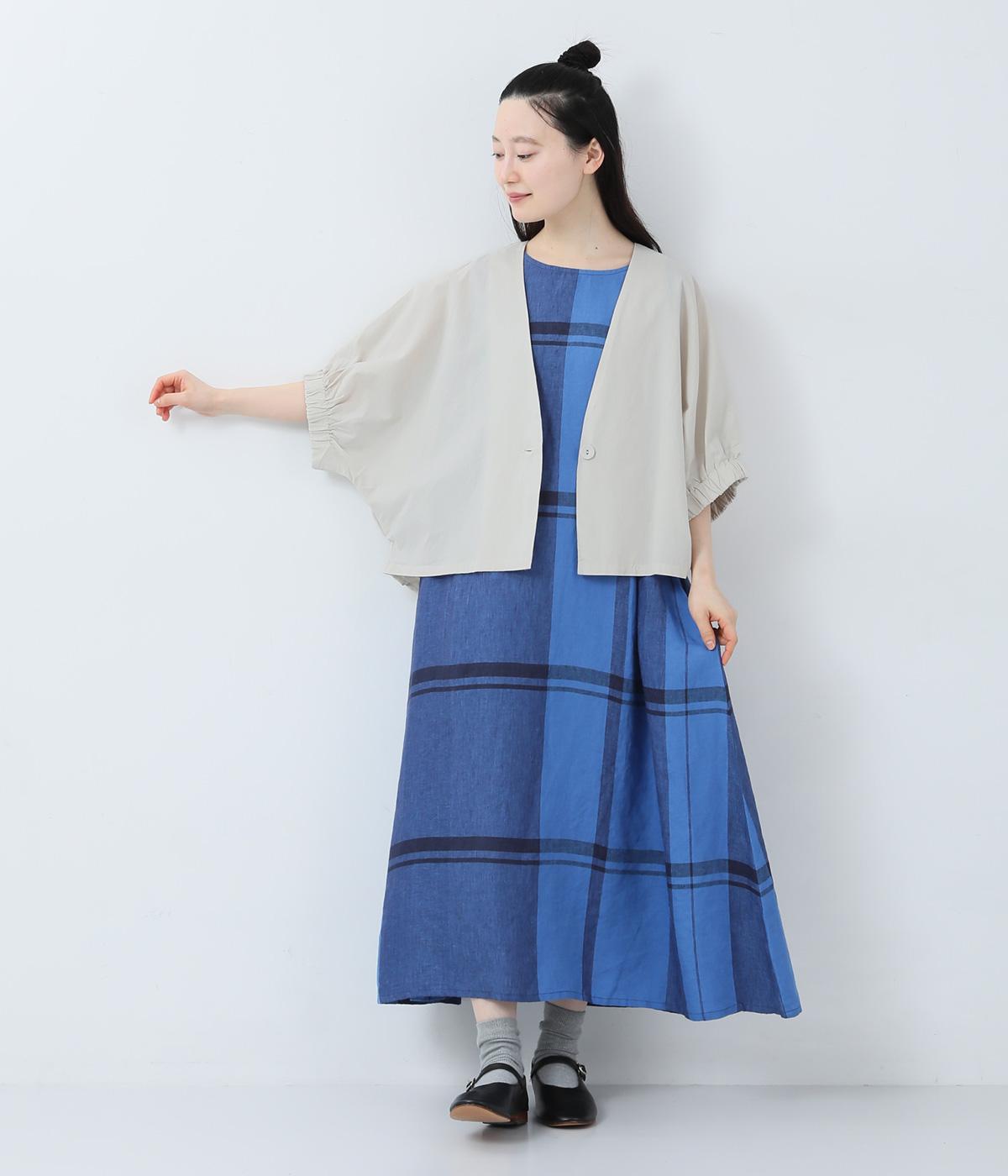 リネンパネルチェック ノースリーブワンピース(ブルー)