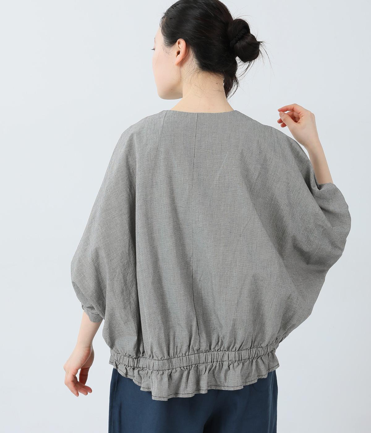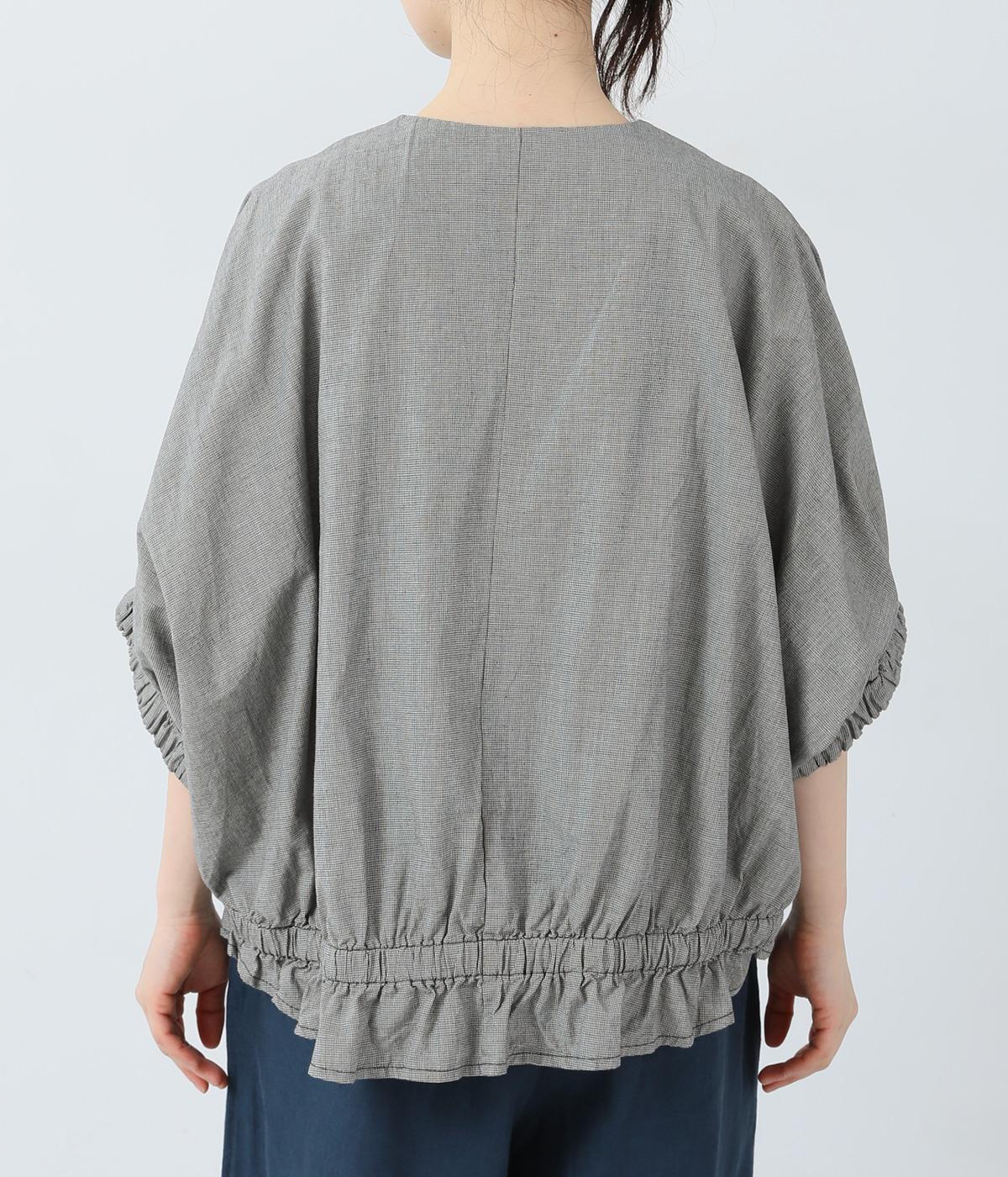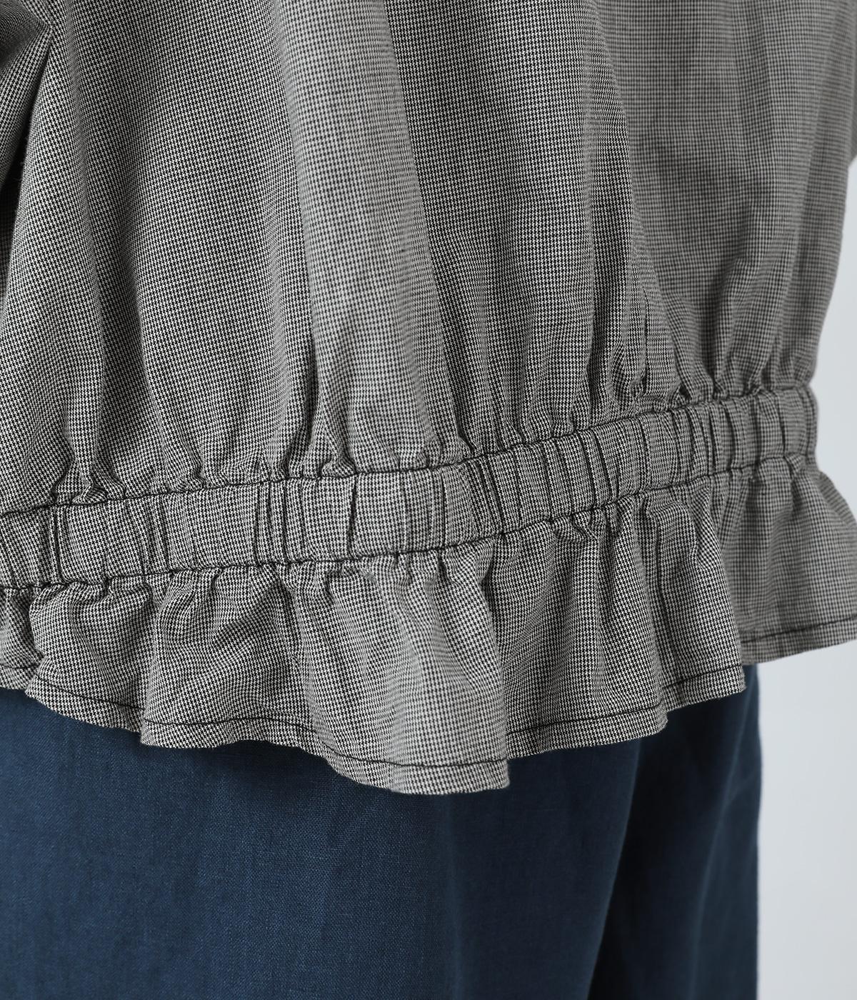 コットンリネンヘリンボーンフリルブラウス