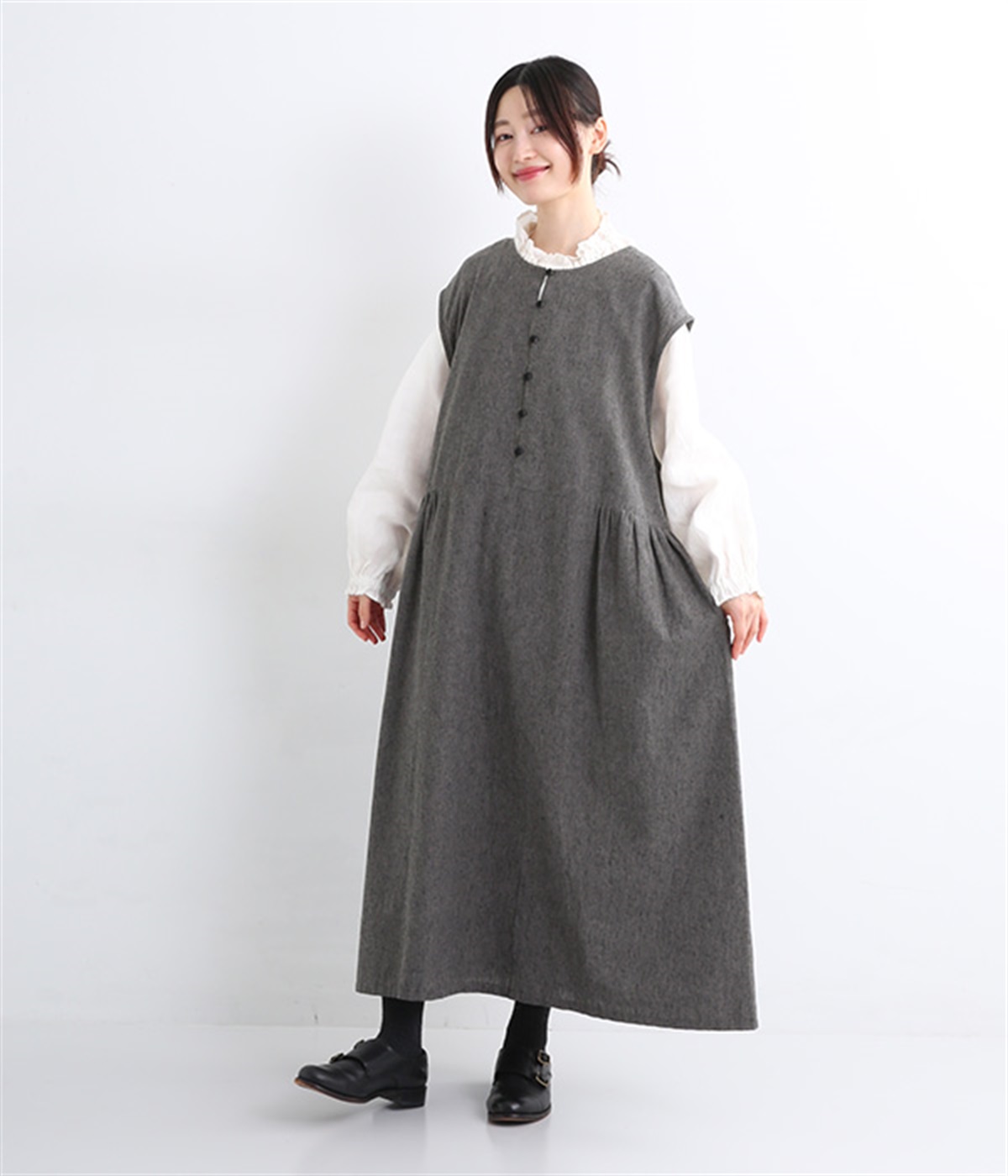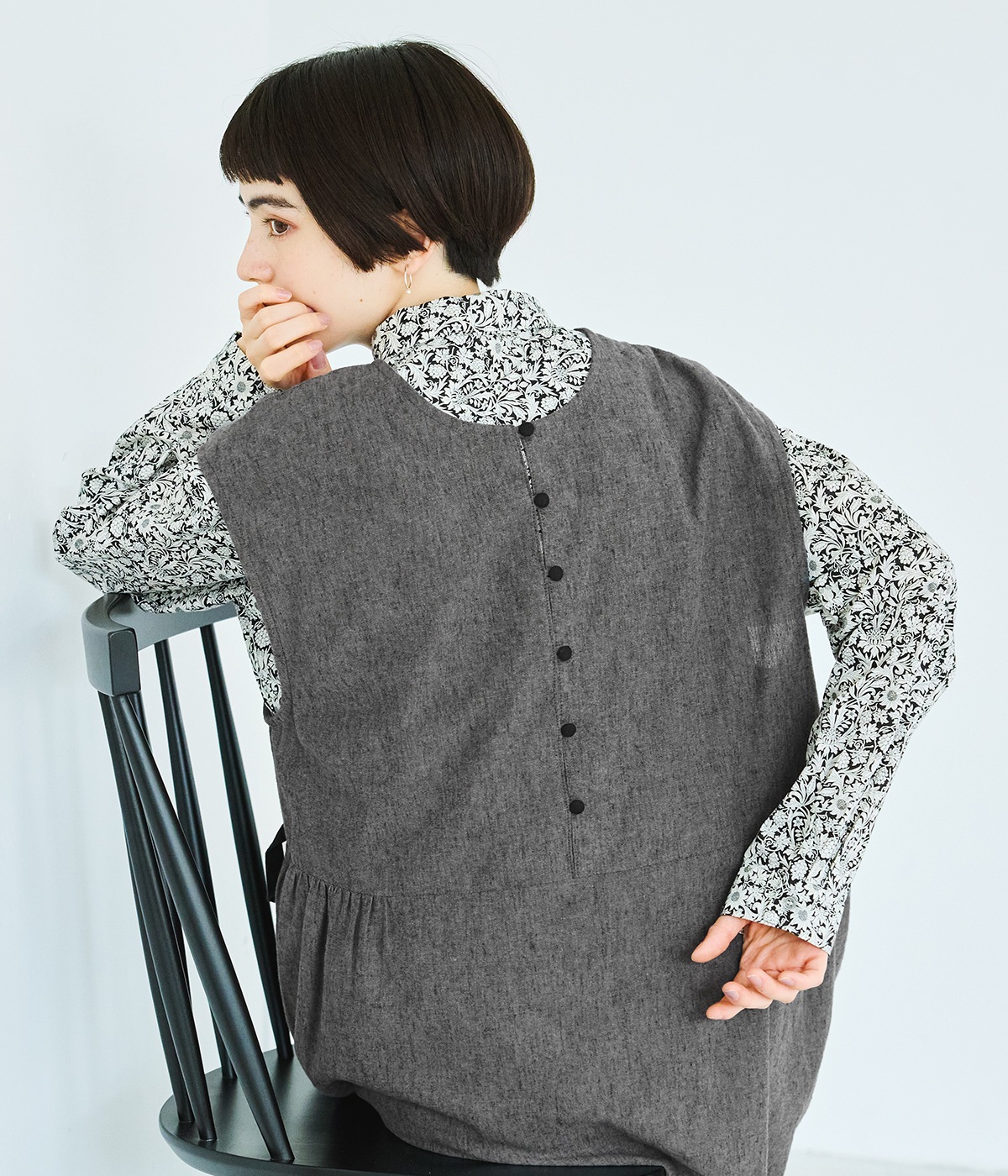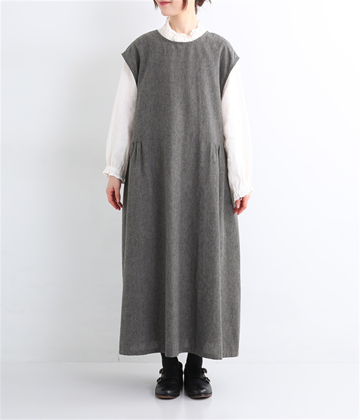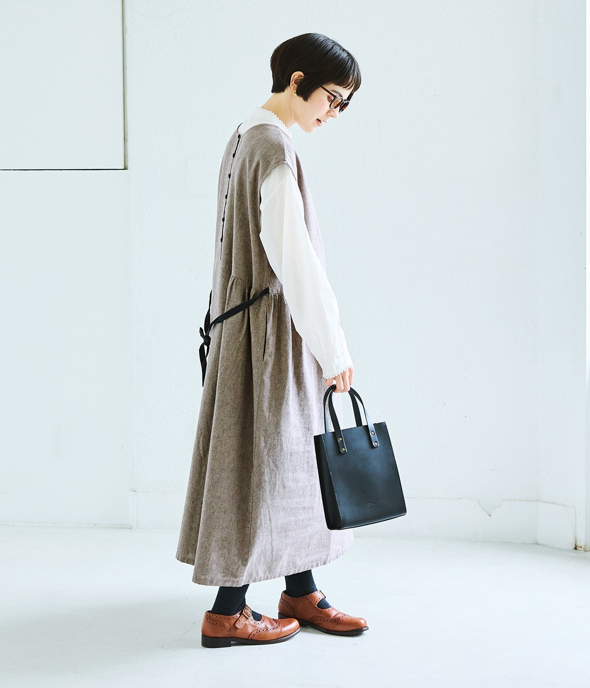 デイリーにも特別な日にも自然に馴染む、落ち着いた色合いとシンプルなデザインのジャンパースカート。その日の気分やコーディネートに合わせて、自分なりのアレンジをお楽しみください。