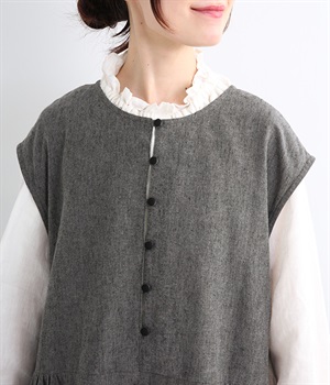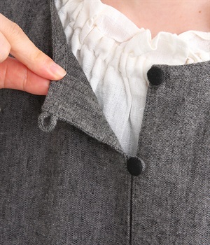 ころんと丸いクルミボタンがワンポイントに。丁寧に仕上げたディテールが、自然体の大人スタイルをさりげなく引き立てるデザインです。