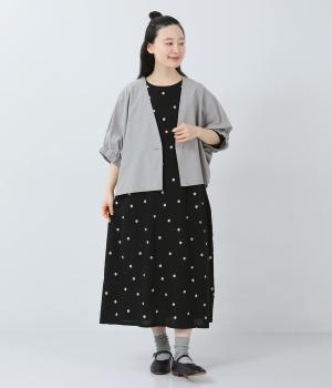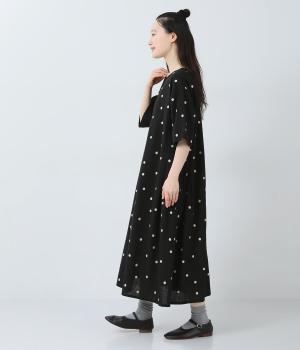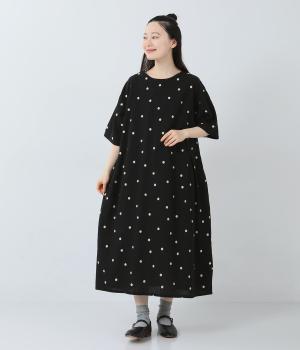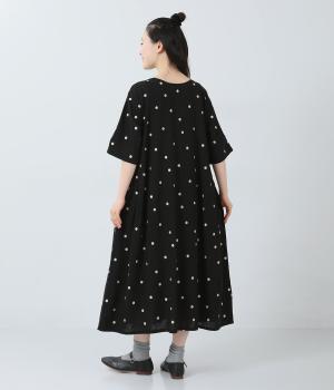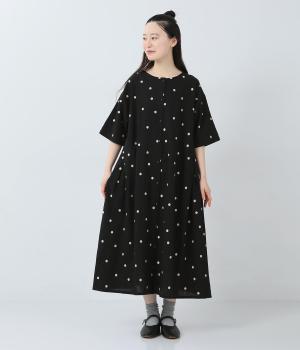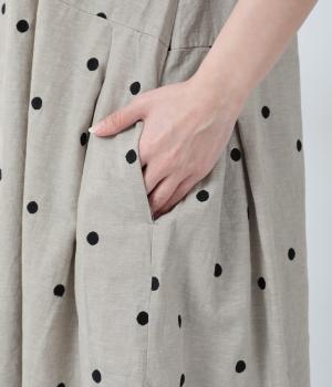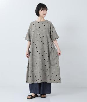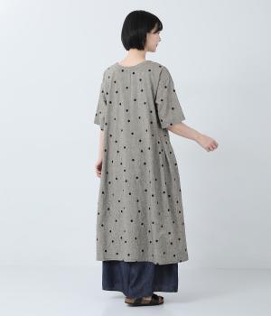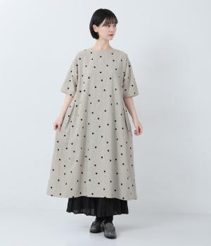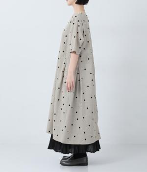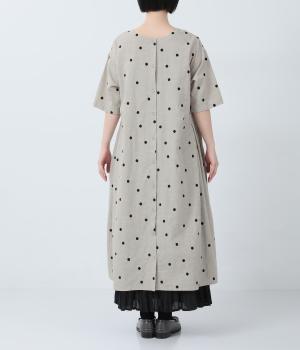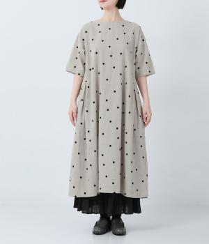 コットンリネン刺繍ヨークワンピース