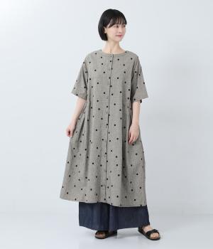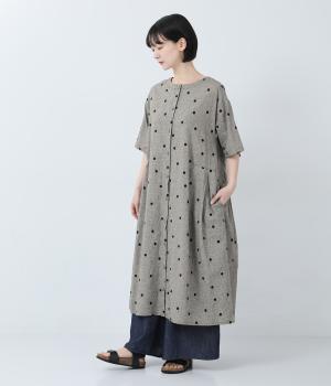 コットンリネン多ボタン前あきワンピース