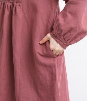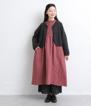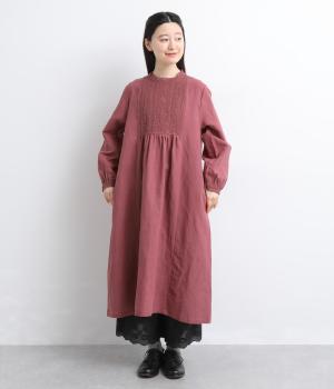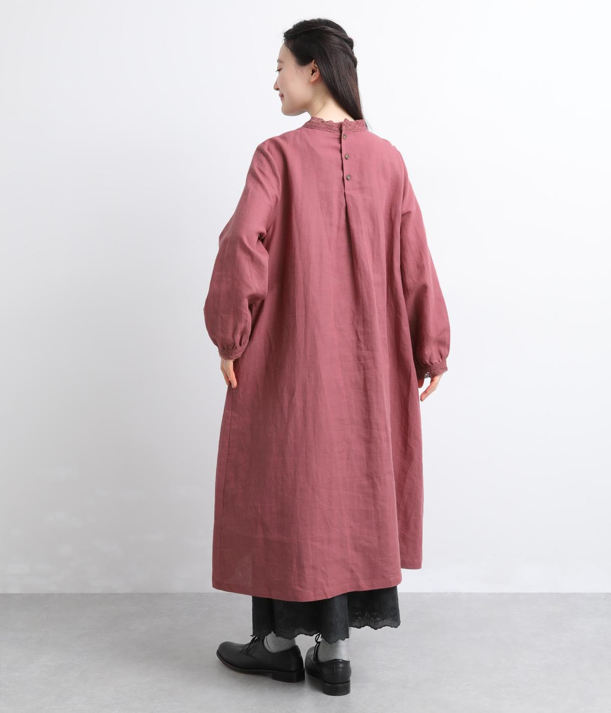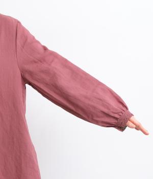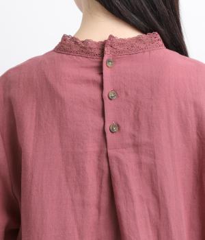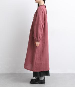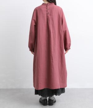 やや薄手のリネン平織り生地を使用しました。ほどよいハリ感があるので、シルエットをきれいに保ちます。着るほどにやわらかくなじみ、体に寄り添う心地よさへと変化するのもの魅力です。