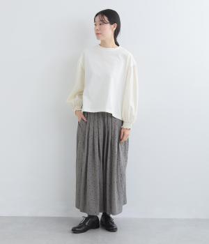 ドレープ性のある滑らかな風合いが上品なムードを漂わせるレーヨン混生地を使用しました。横への広がりをおさえ、シルエットをすっきりとした印象に。薄手で軽く、ストレスの少ない着用感を叶えます。