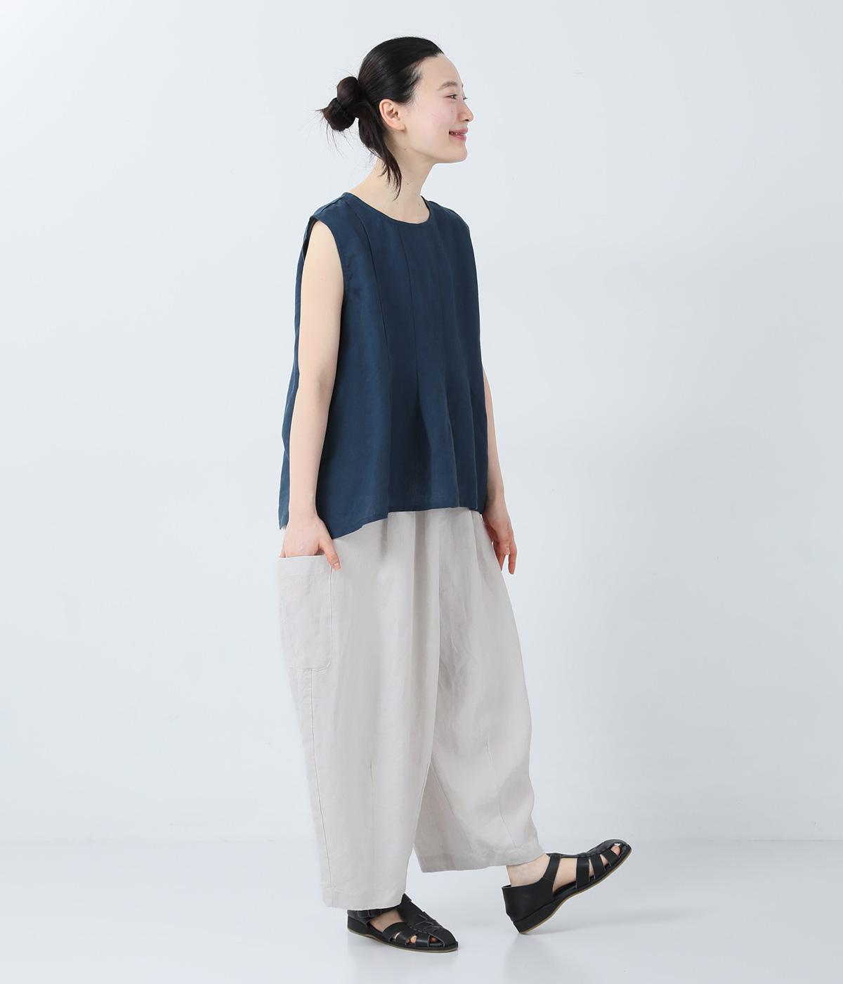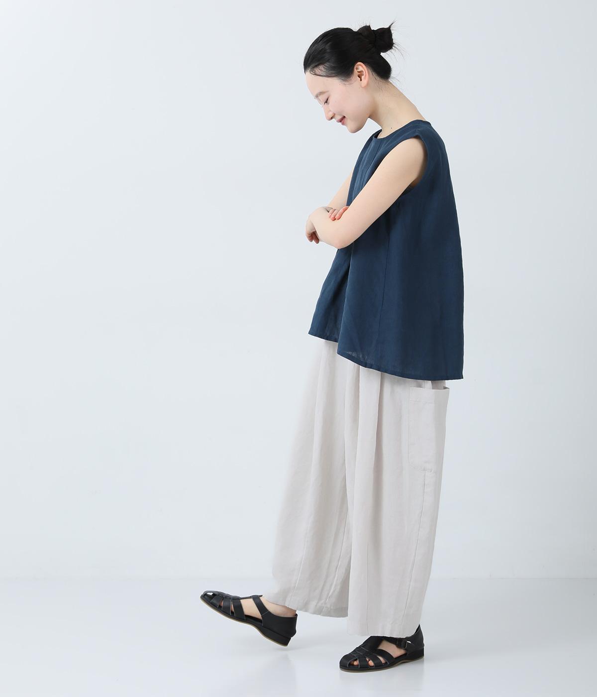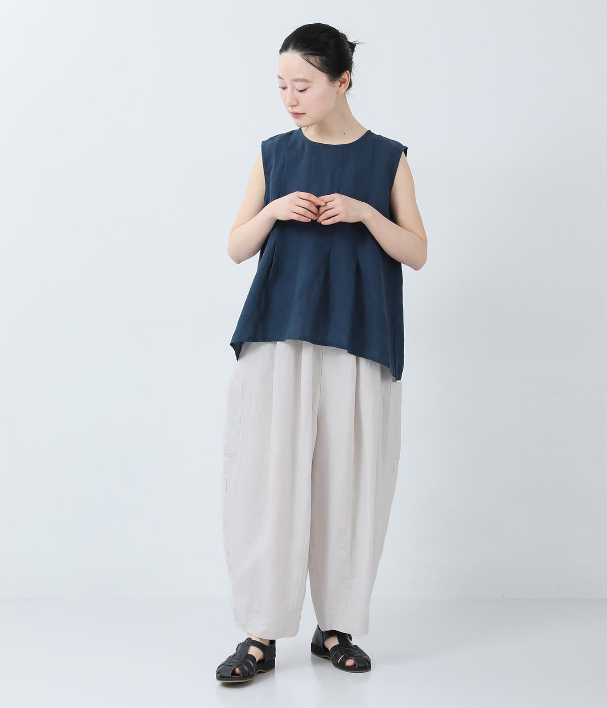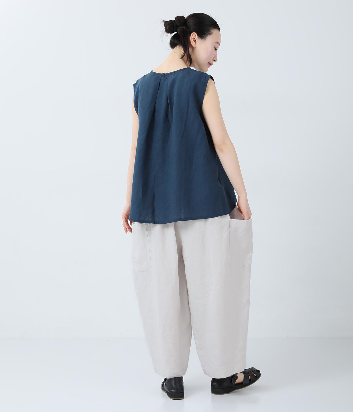 リネンノースリーブブラウス(ブルー)