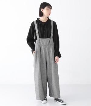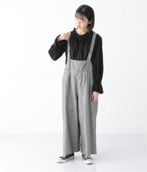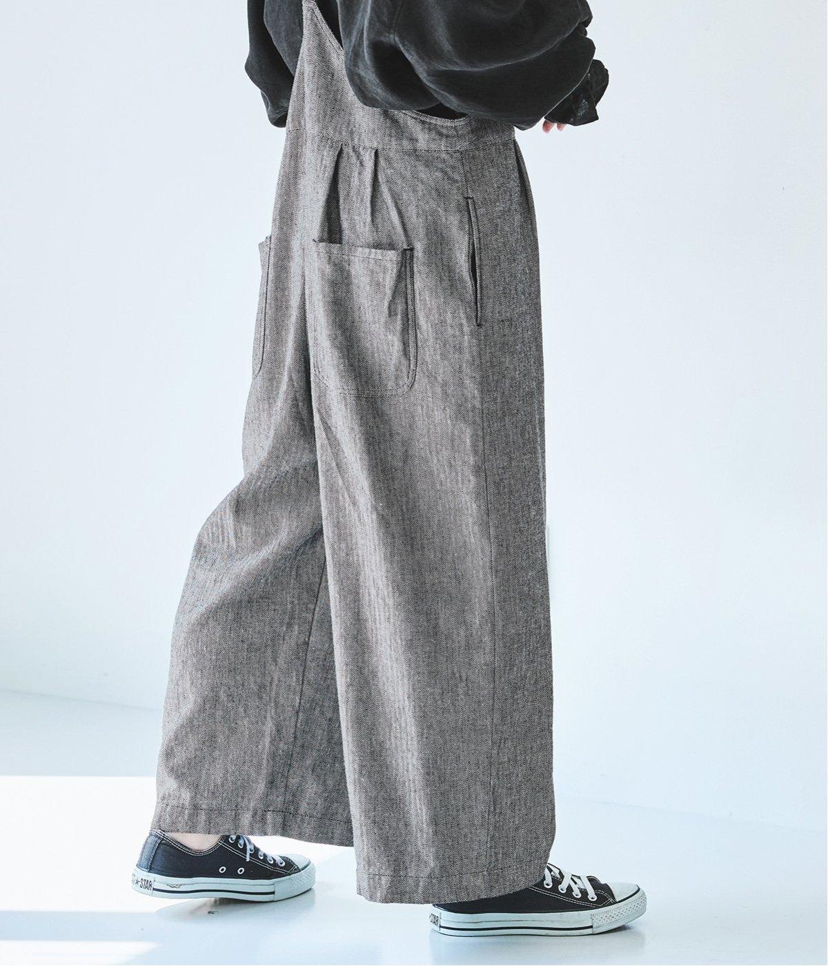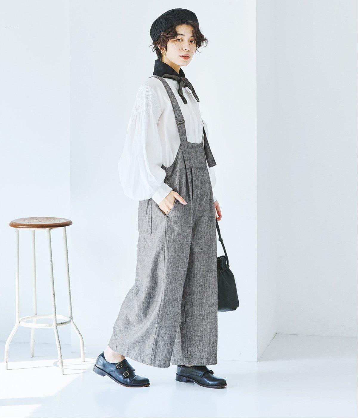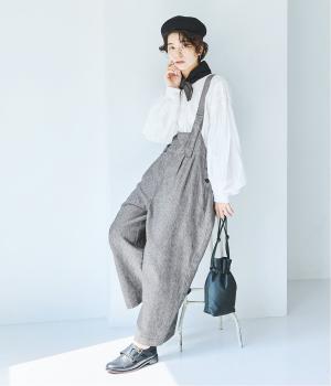 ウエスト位置にタックをあしらった、ゆったりシルエットのサロペット。上品なヘリンボーン生地がラフな印象を軽減してくれます。ウエスト位置を高く見せてくれるデザインで、バランスのよい着こなしを実現。肩紐はフロントで長さ調整でき、着用してから整えやすいのが◎です。