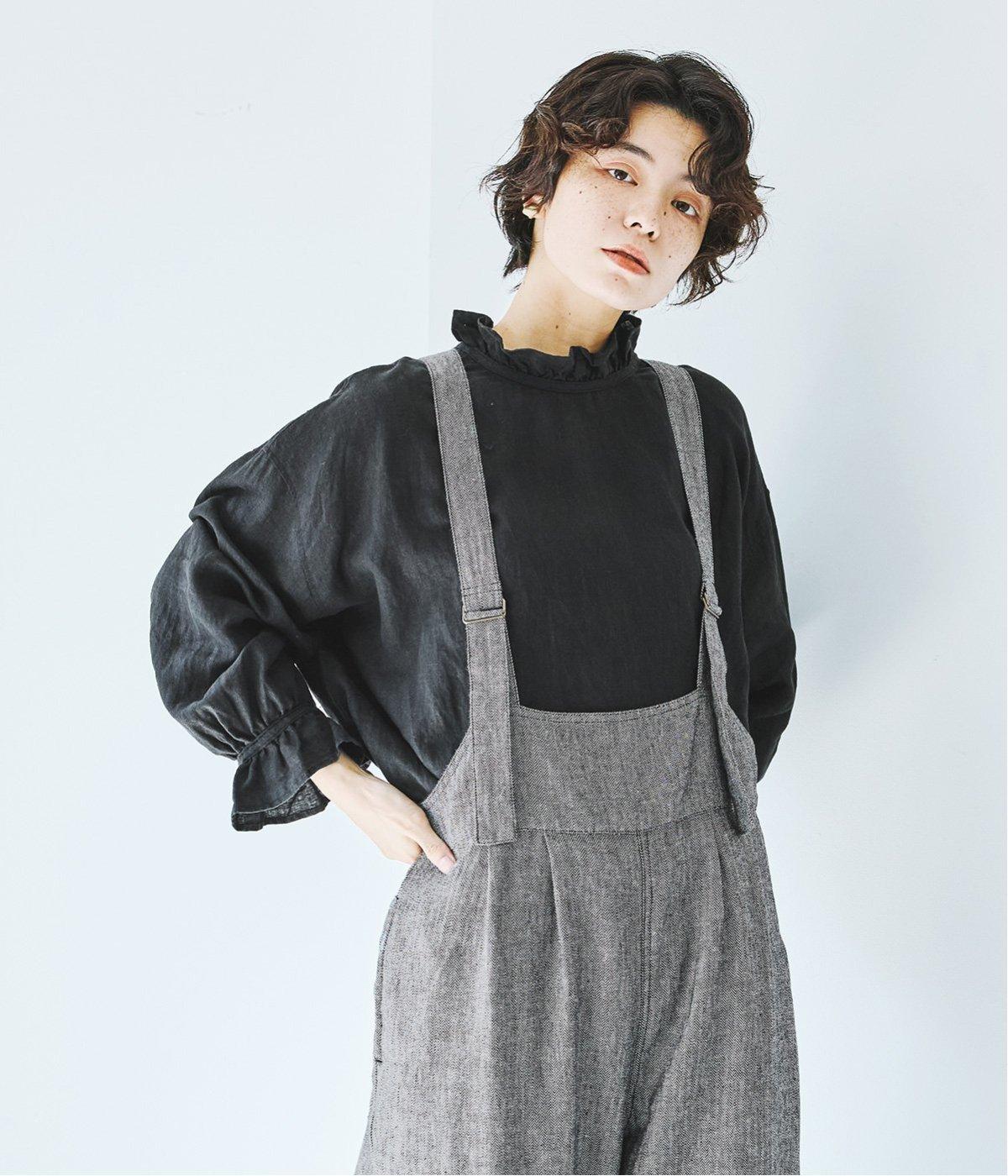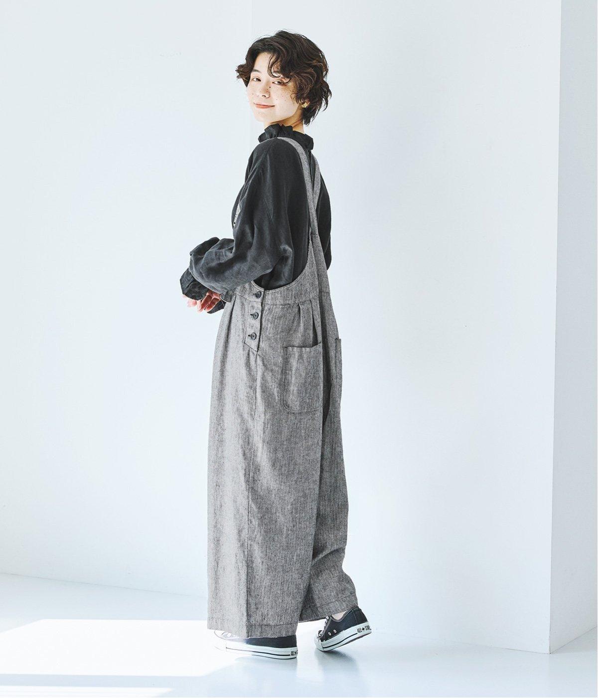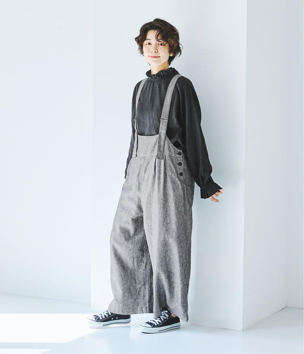 ウエスト位置にタックをあしらった、ゆったりシルエットのサロペット。上品なヘリンボーン生地がラフな印象を軽減してくれます。ウエスト位置を高く見せてくれるデザインで、バランスのよい着こなしを実現。肩紐はフロントで長さ調整でき、着用してから整えやすいのが◎です。