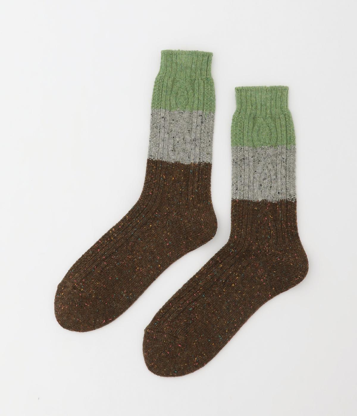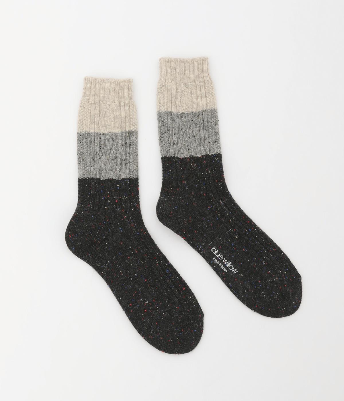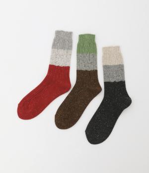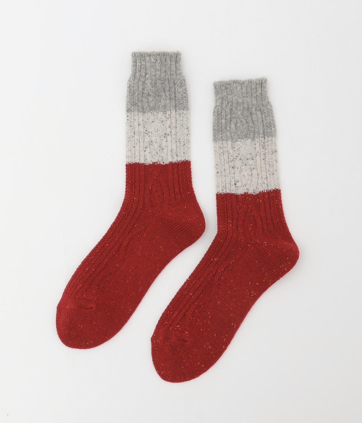 ネップによる豊かな表情と配色が目を惹くソックスです。デザイン自体はシンプルながらカラー使いが印象的で、デイリースタイルにさり気なく彩りをプラスしてくれます。あたたかな季節の変わり目にはスポーツサンダルなどと合わせても◎。