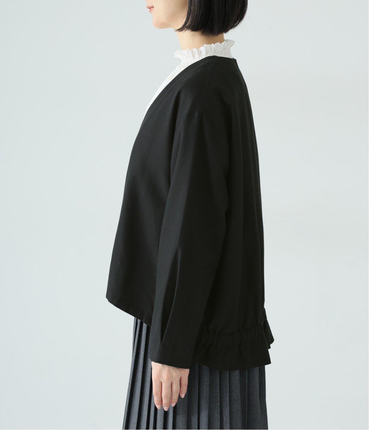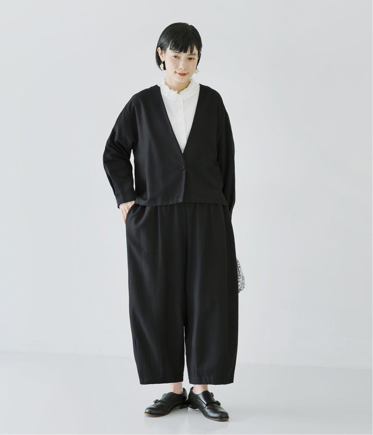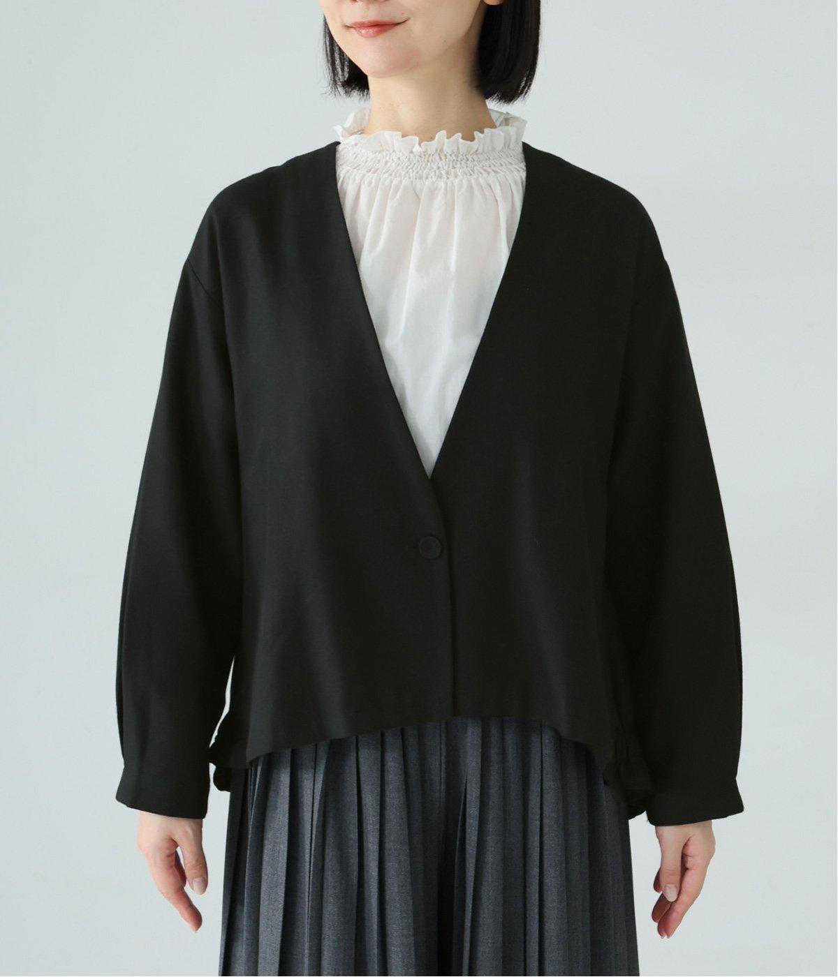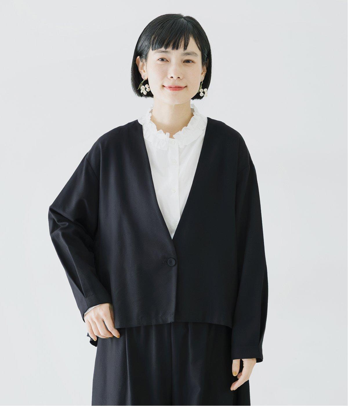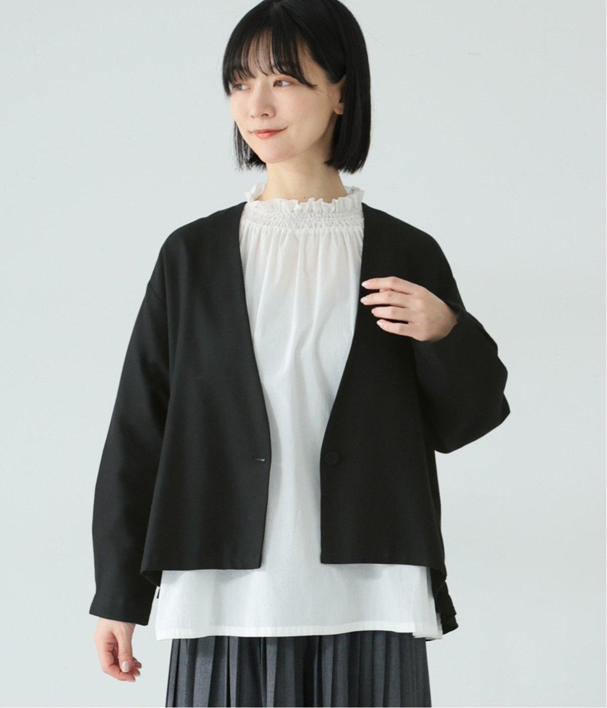 コットンレーヨンノーカラージャケット(ブラック-F)