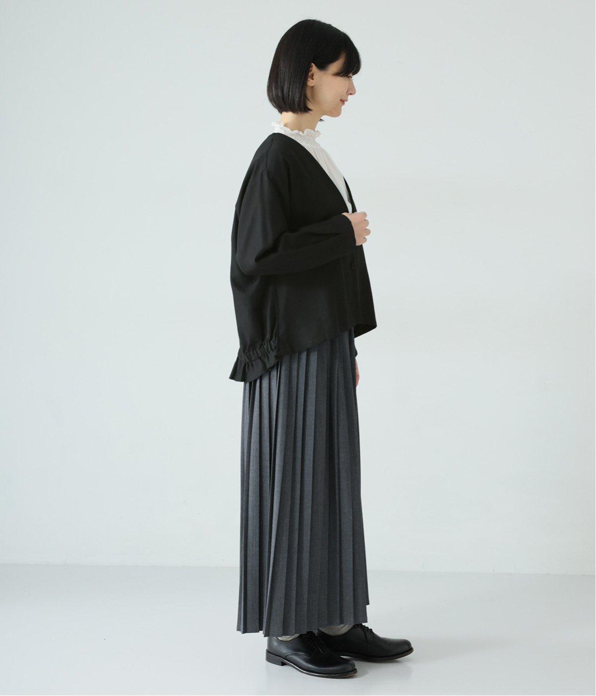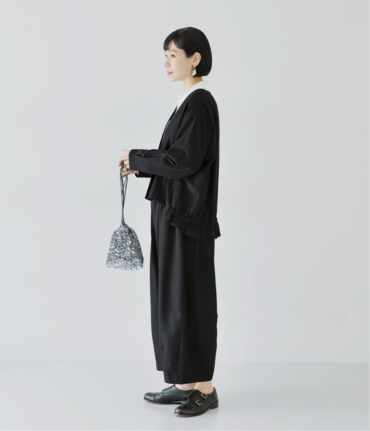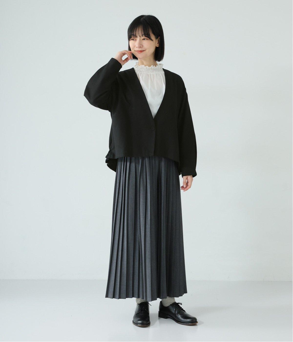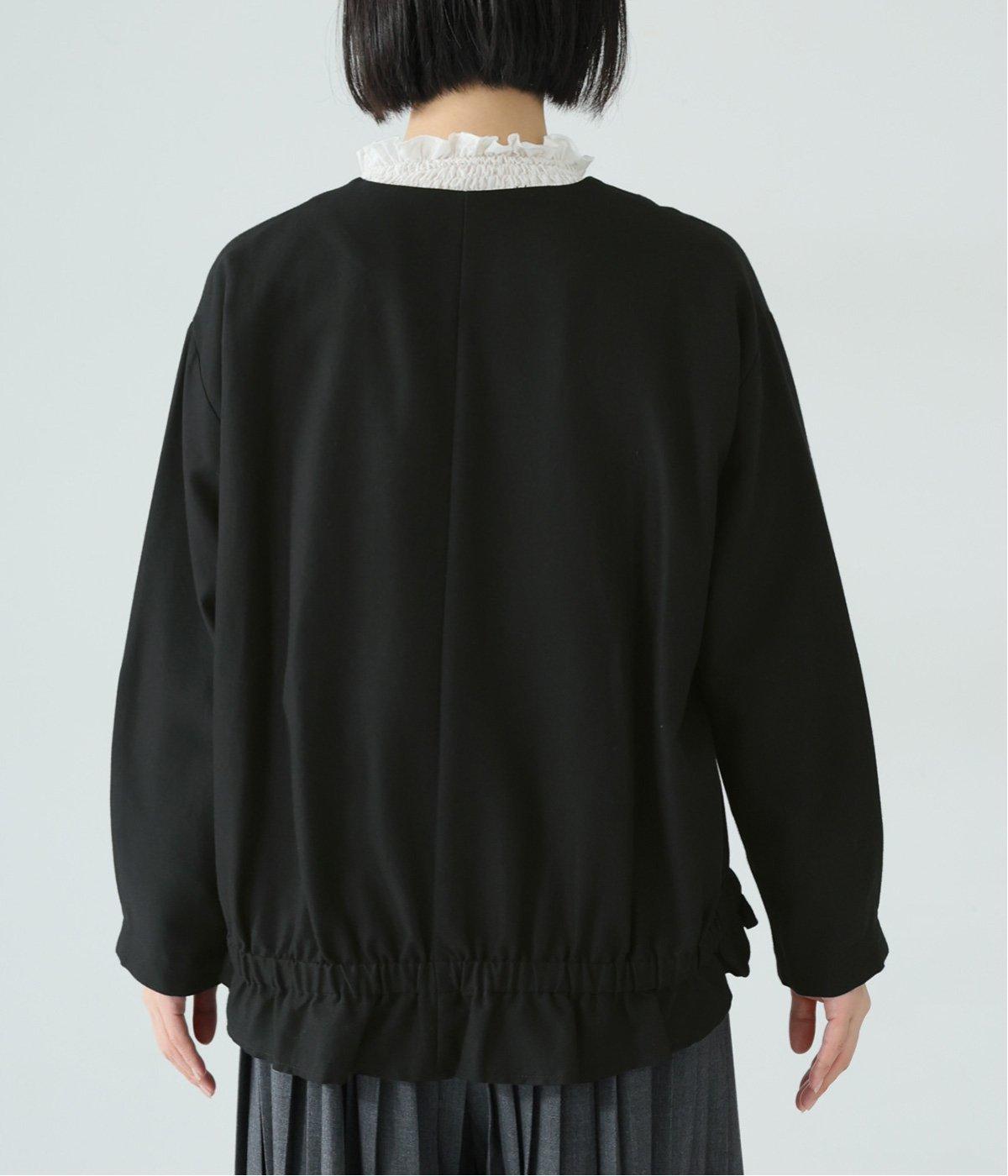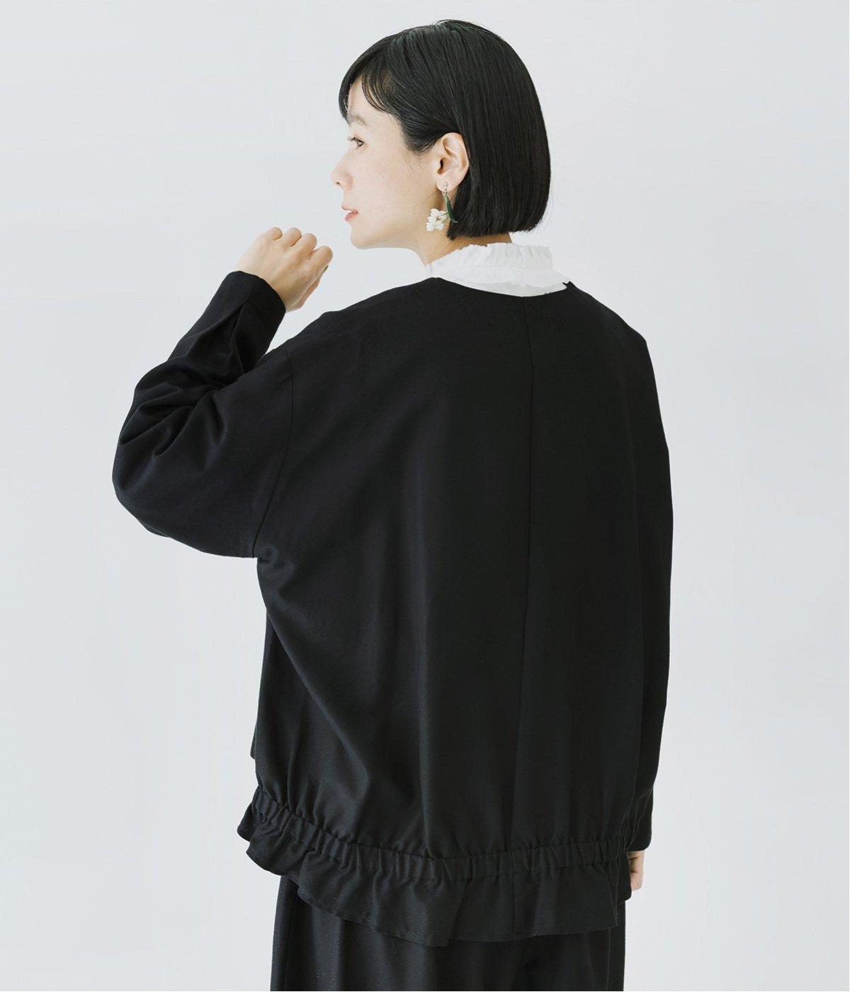 コットンレーヨンノーカラージャケット(ブラック-F)