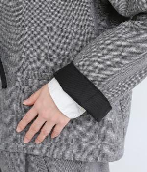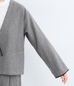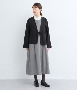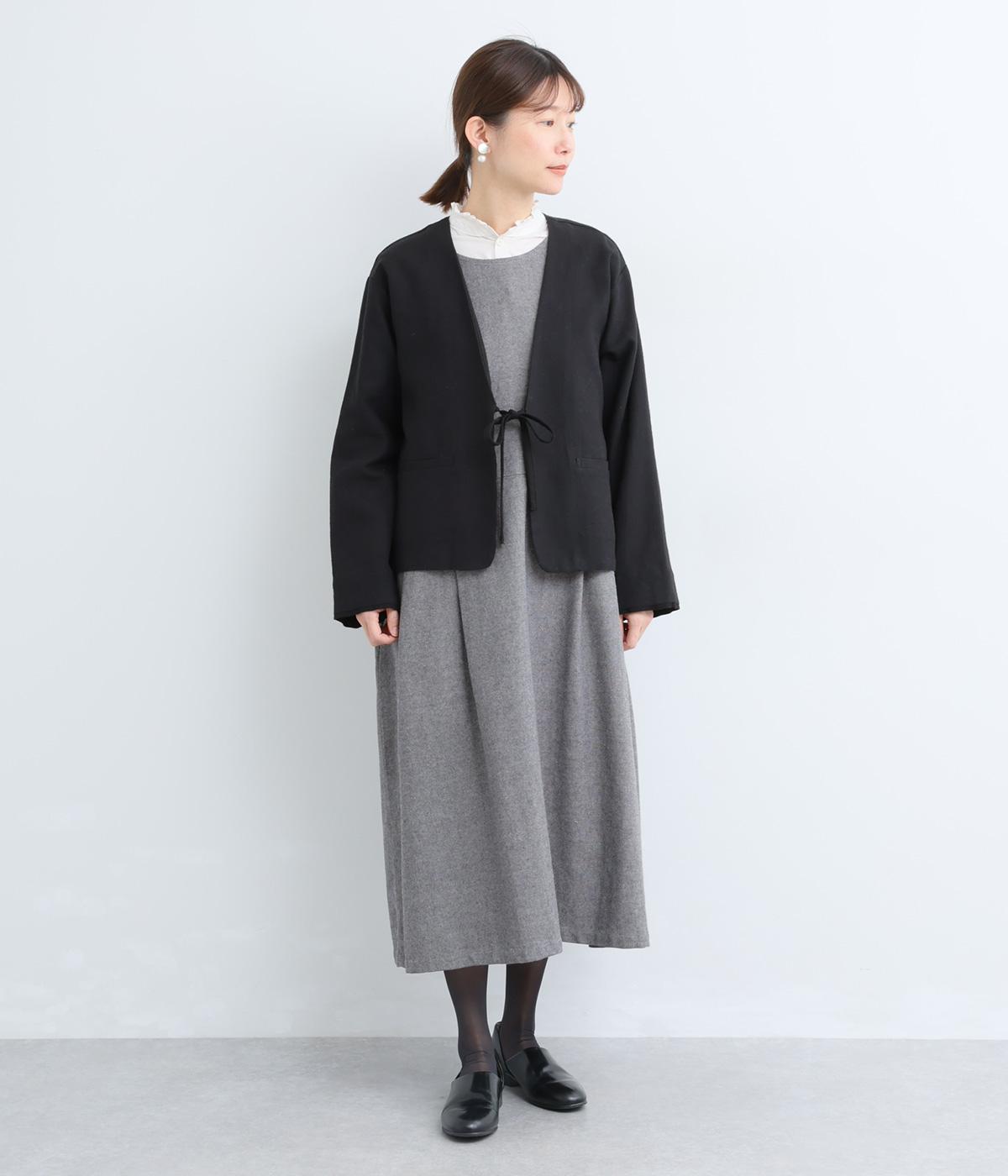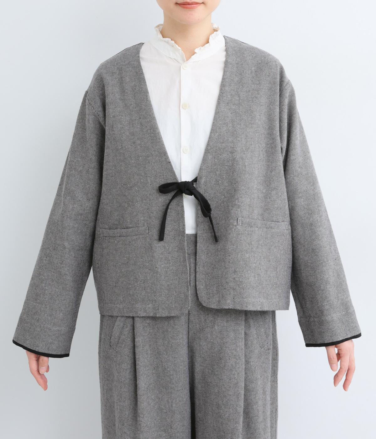 かわいらしいアクセントになるリボン留めのジャケットです。ほどよいハリできちんと見えする素材感で、普段使いからフォーマルまで幅広く着用いただけます。袖口には別布を重ねて、そのままでも折り返しても、それぞれの表情を楽しめます。