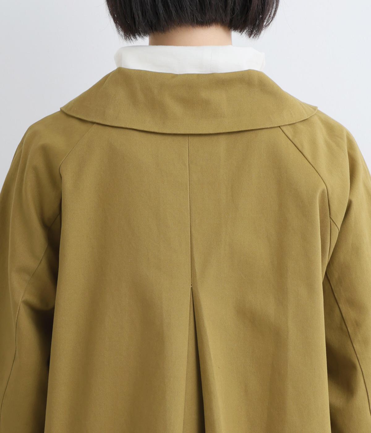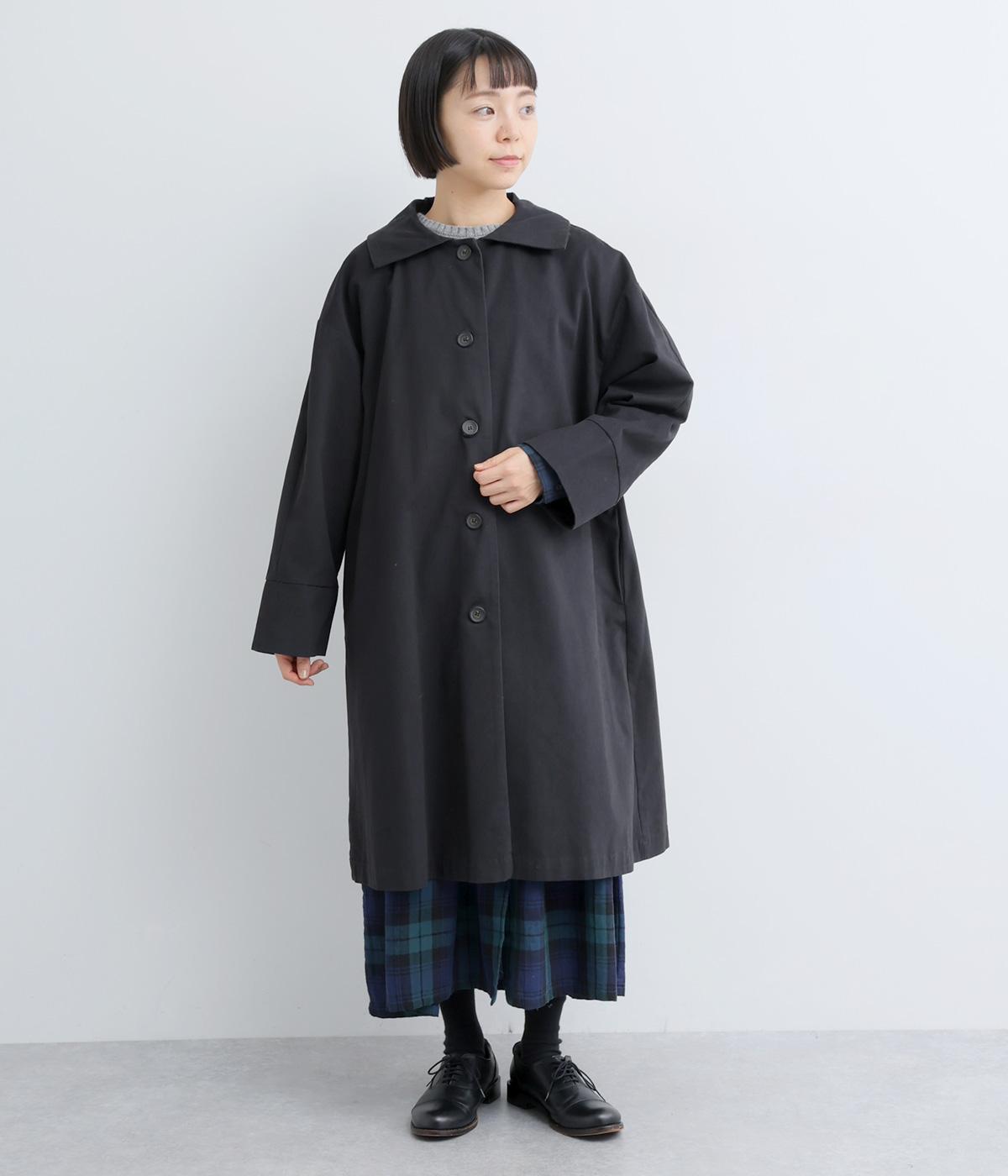 高さをおさえたフラットな大きめの襟が女性らしいコート。後ろ身頃にタックを入れてシルエットにゆとりを持たせました。袖丈は長めに設定しているので、カフスをすっきりと折り返しても◎。裏地が無いため秋や春にはもちろん、冬にはニットやインナーダウンなどを合わせてロングシーズン着まわせます。