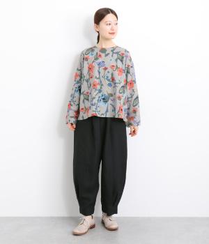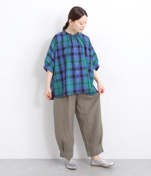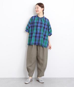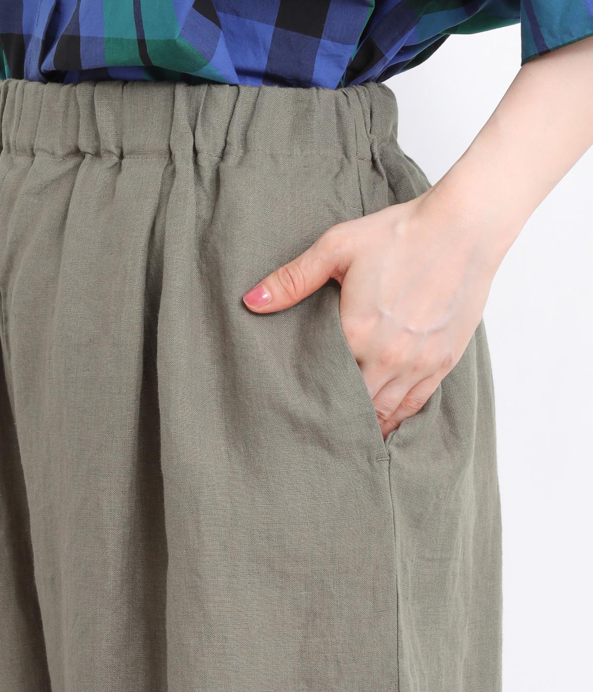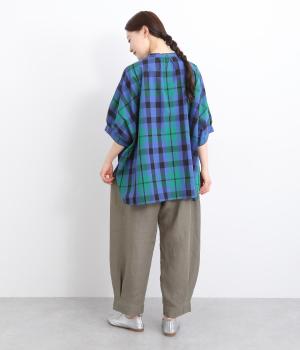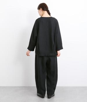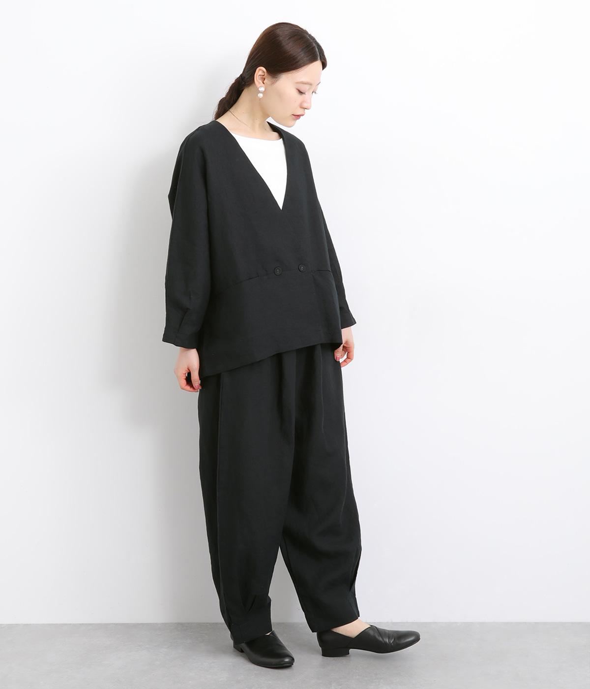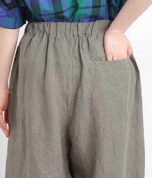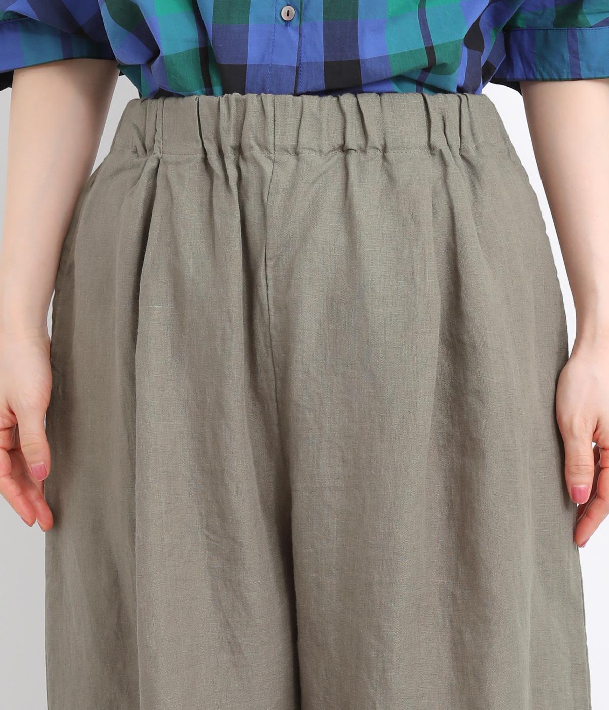ワタリ幅をゆったりとり。裾タックで立体感をつけたコクーンシルエットパンツです。裾カフスのようにみせてすっきりとシューズ合わせしやすい丈感にこだわりました。ウエストは総ゴムに内紐つきでフィット感も◎。