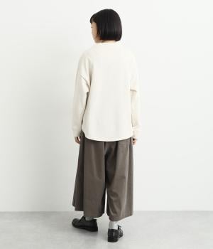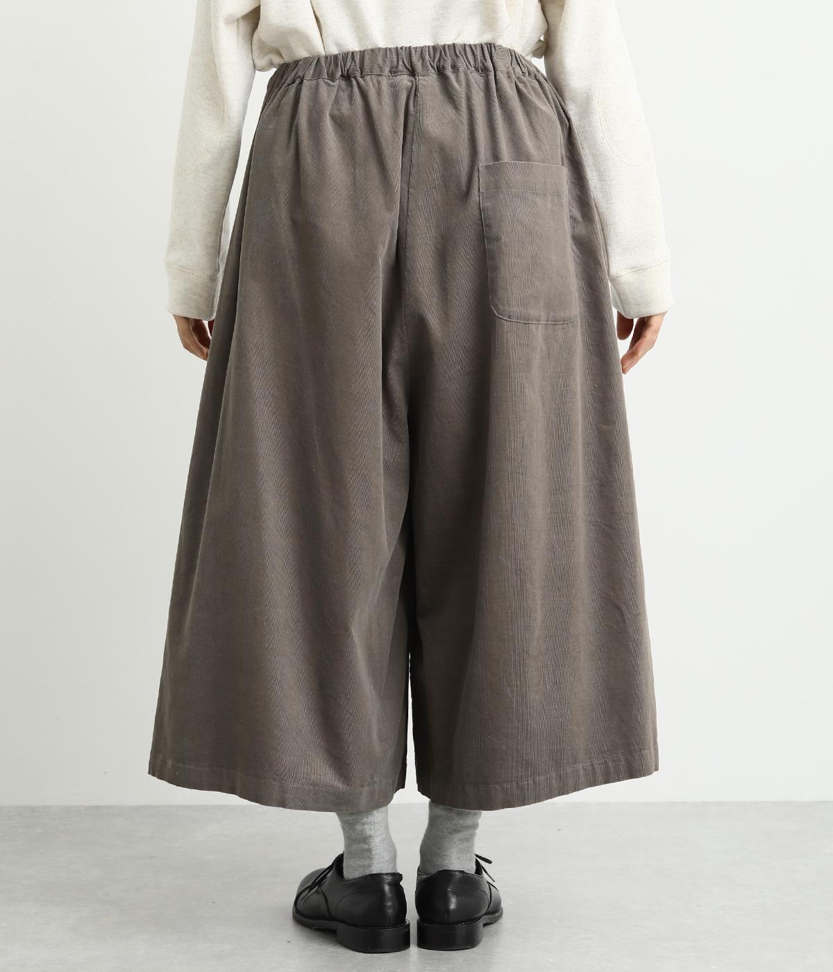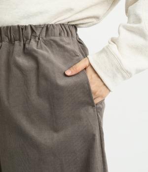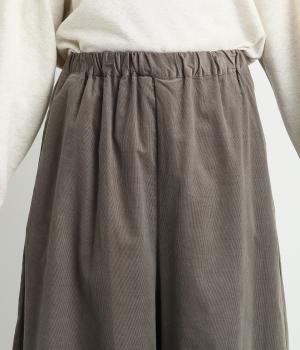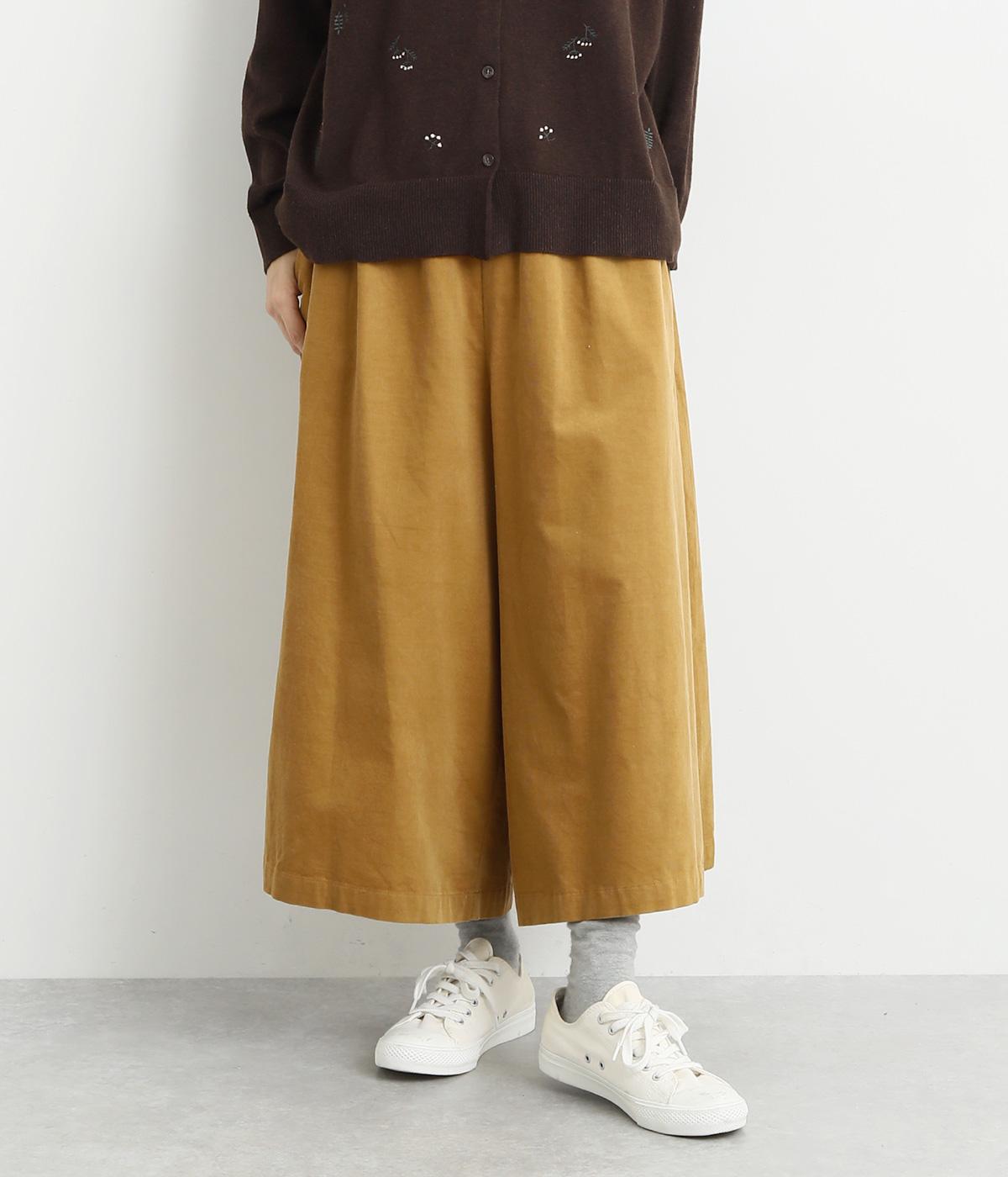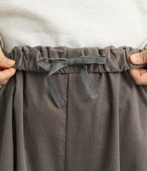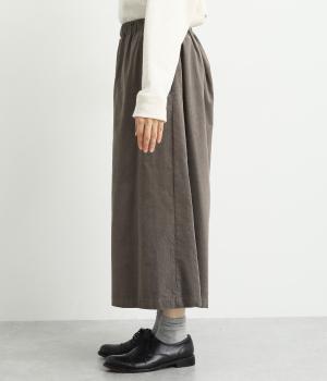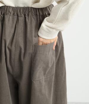 ソフトな風合いのコットンコーデュロイ生地を使用。やわらかな光沢に細畝で、カジュアルすぎない雰囲気のいい仕上がりです。厚手すぎず軽いはき心地も◎。