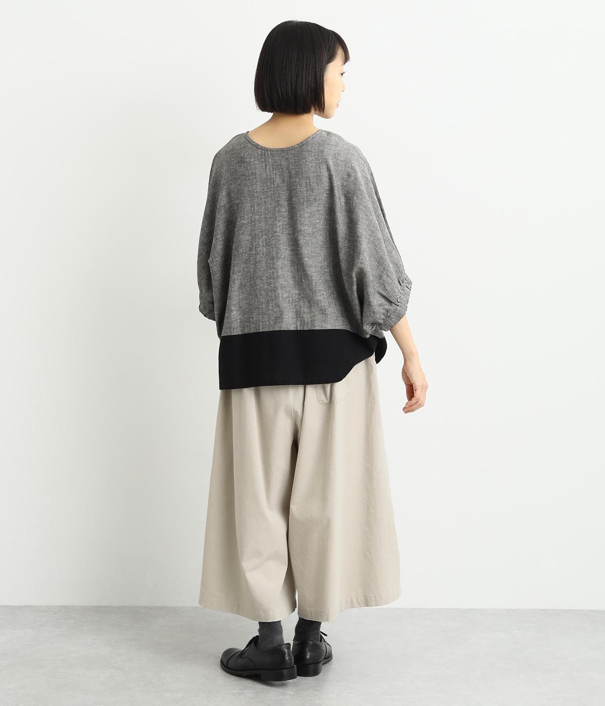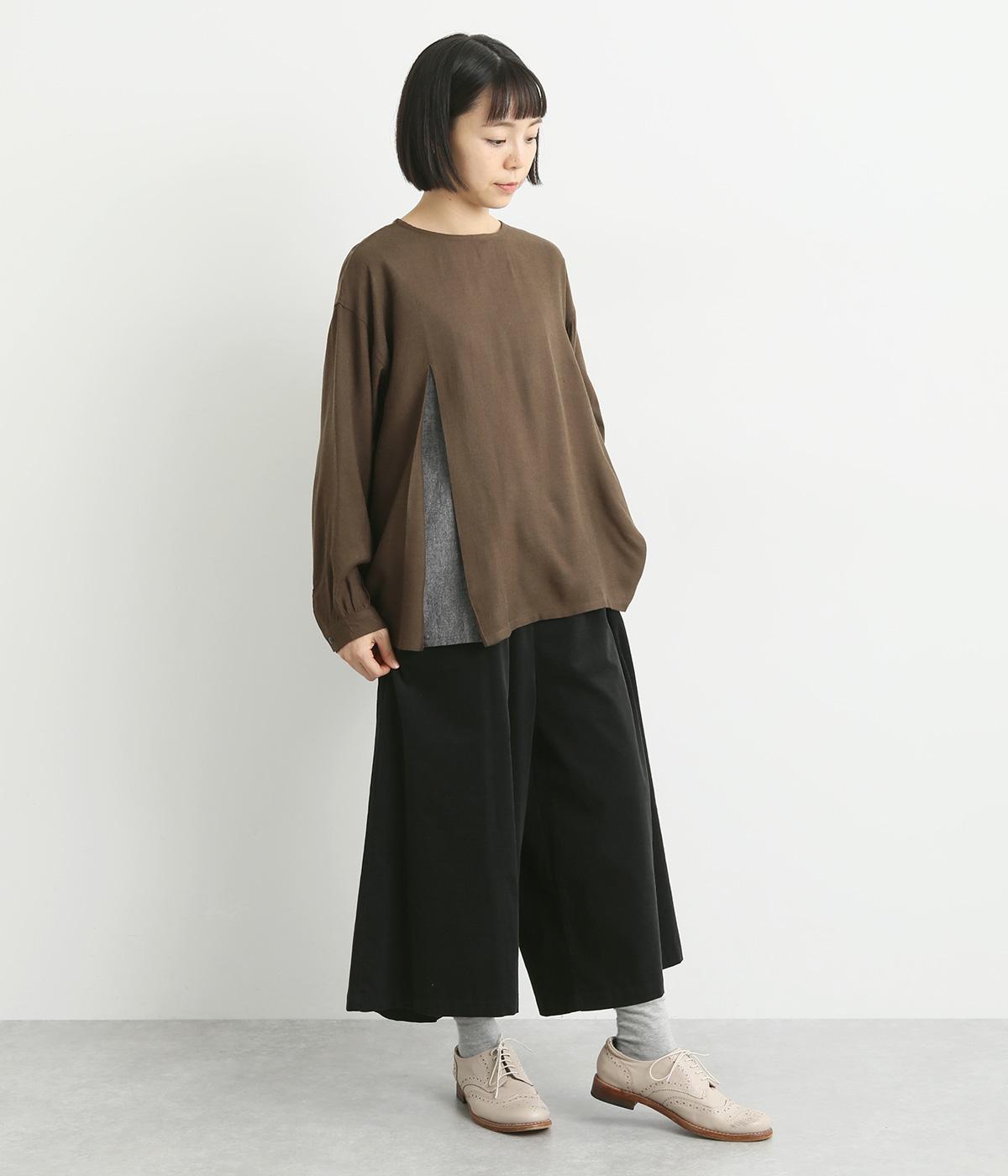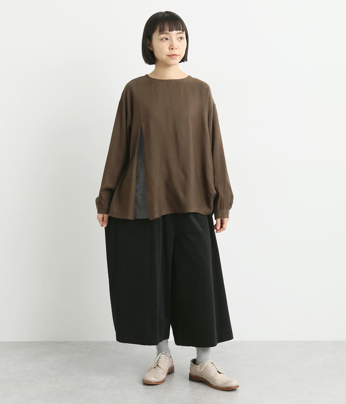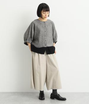 ワタリ幅をゆったりとった、スカート見えするガウチョパンツ。動きやすさと品の良さを兼ね備えたフレア感のあるシルエットに、重たく見えないすっきりとした丈感が◎。ウエストはオールゴムに内紐を通したリラックスタイプ。