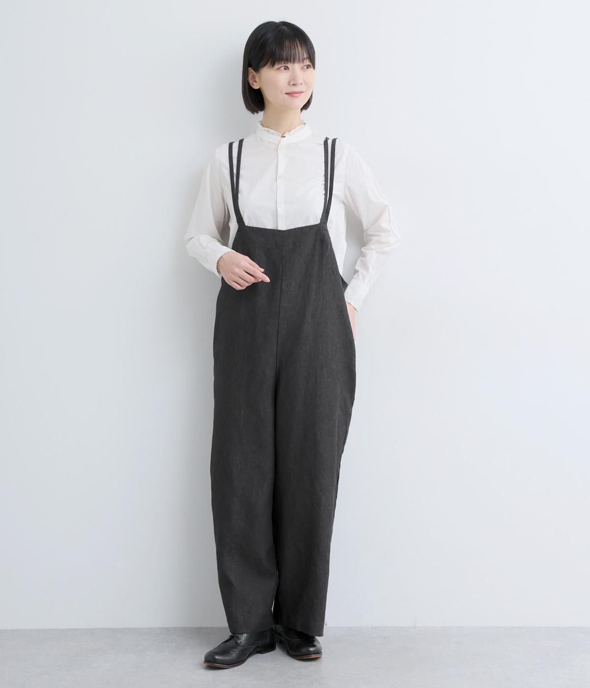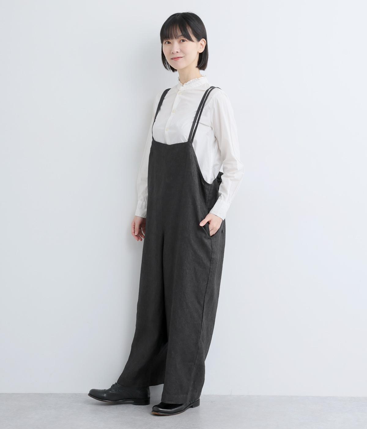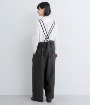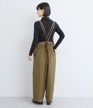 華奢な二重の紐で大人らしく仕上げたサロペット。クロスさせた後ろ姿もお洒落で、リボンを結ぶ位置を変えれば自由に長さを調整できます。パンツ部分はストレートのワイドシルエットでこなれた雰囲気に。さまざまなトップスを合わせやすく、おしゃれの幅が広がるアイテムです。