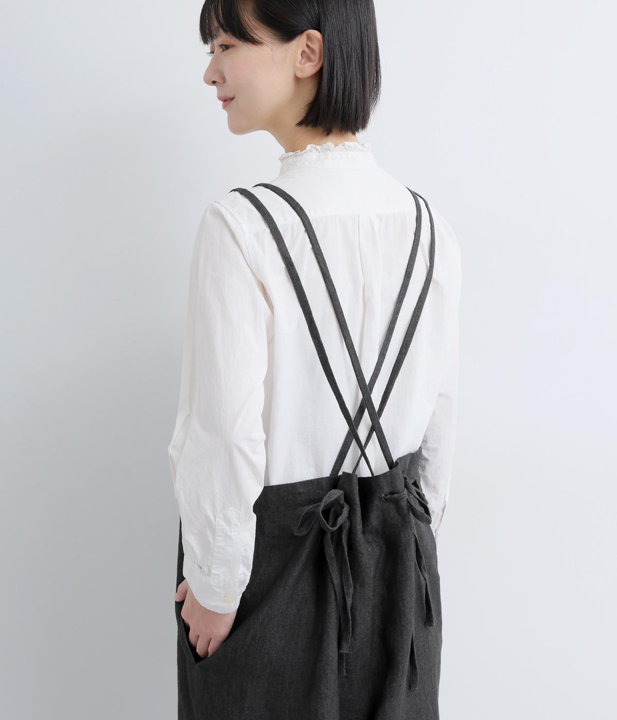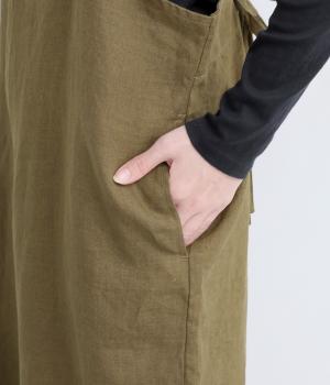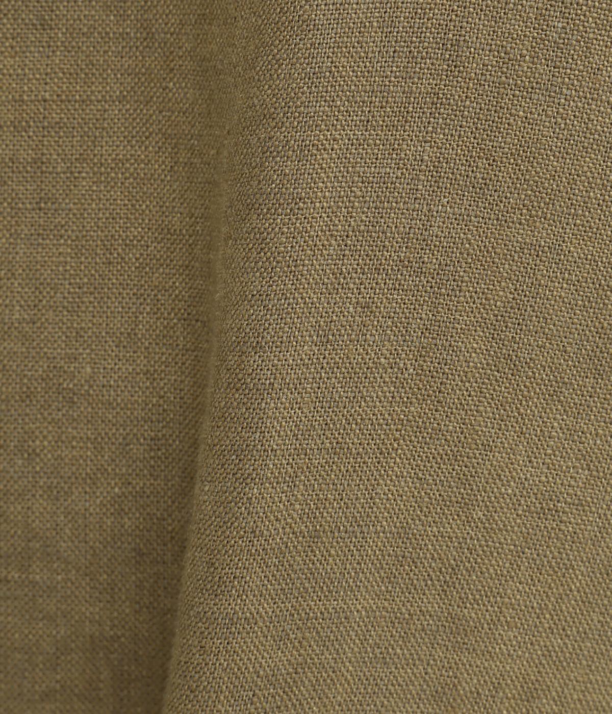 太番手のリネン糸で織り上げられた、ほどよい厚みとハリ感のあるしっかりとした生地感です。節やネップの見えるナチュラルな佇まいも魅力。とても軽く通気性が高いので季節を問わずに快適に着られます。