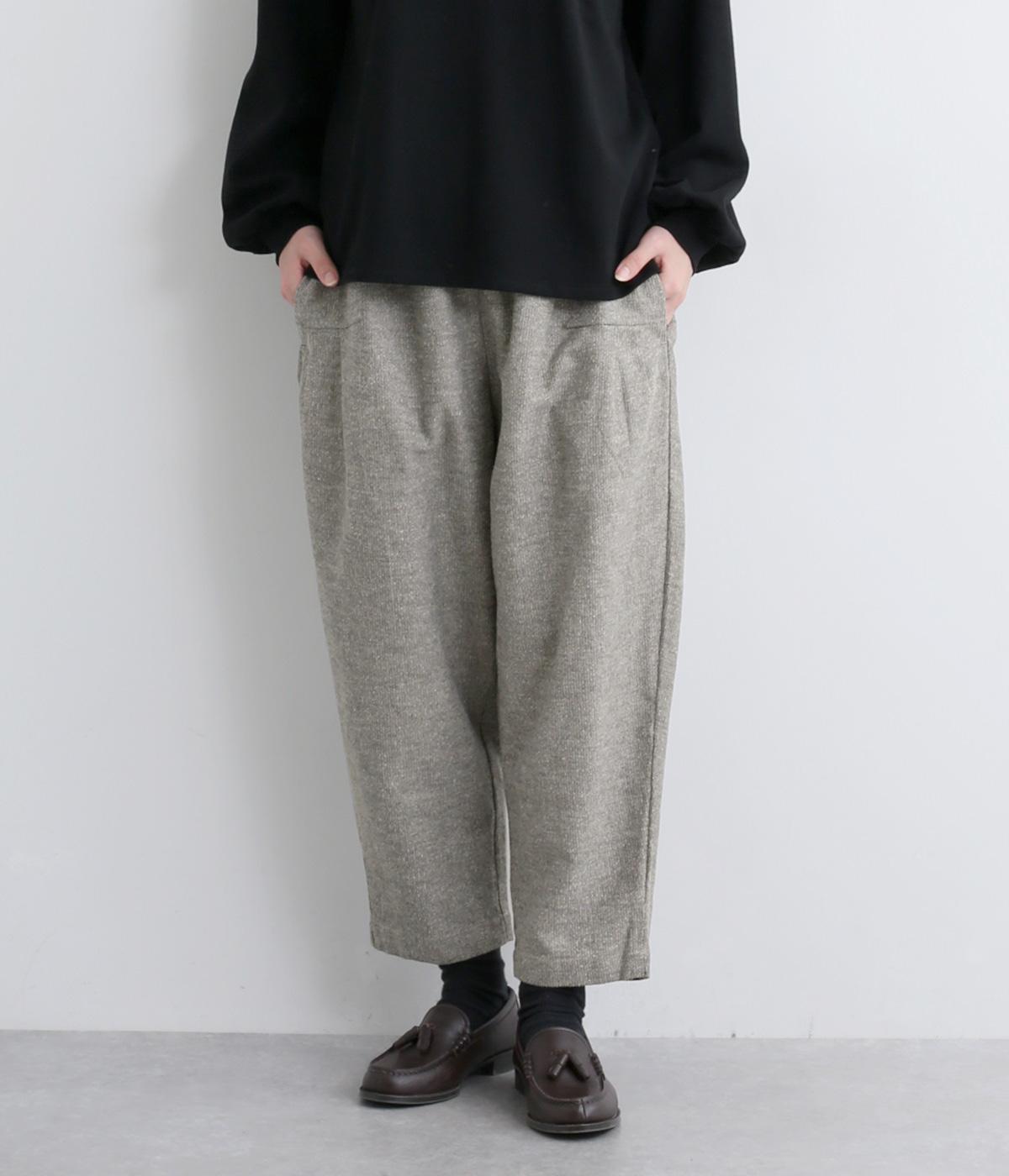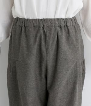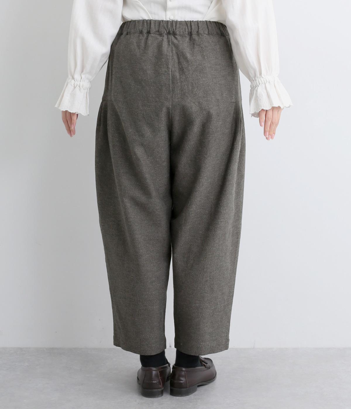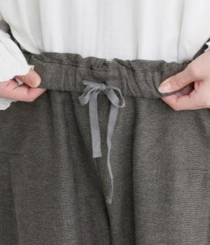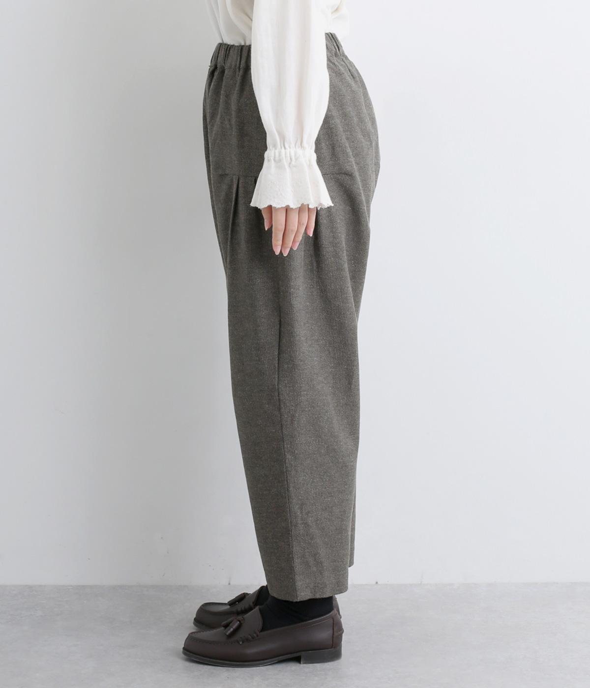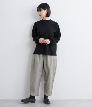 コットンとリネンがはき心地の良いパンツ。ドライタッチで適度にハリがあり、肉感をおさえた中厚手生地ではきこなしやすい仕上がりです。