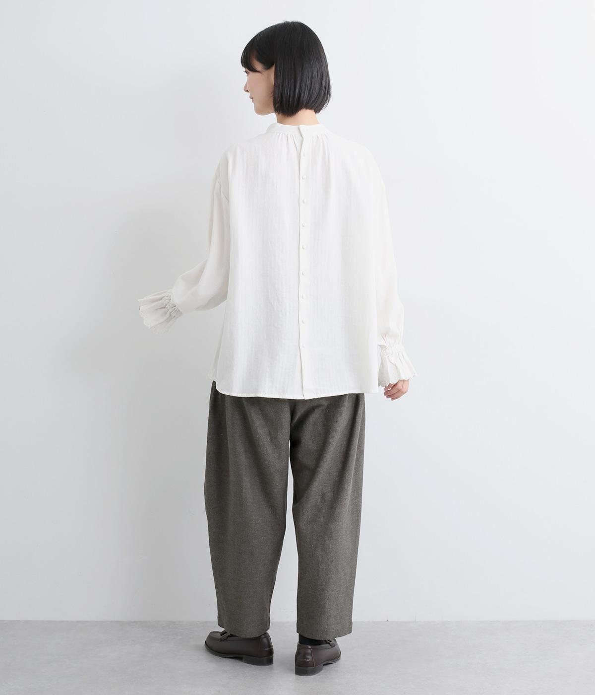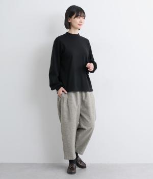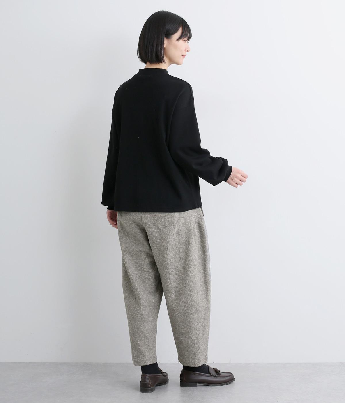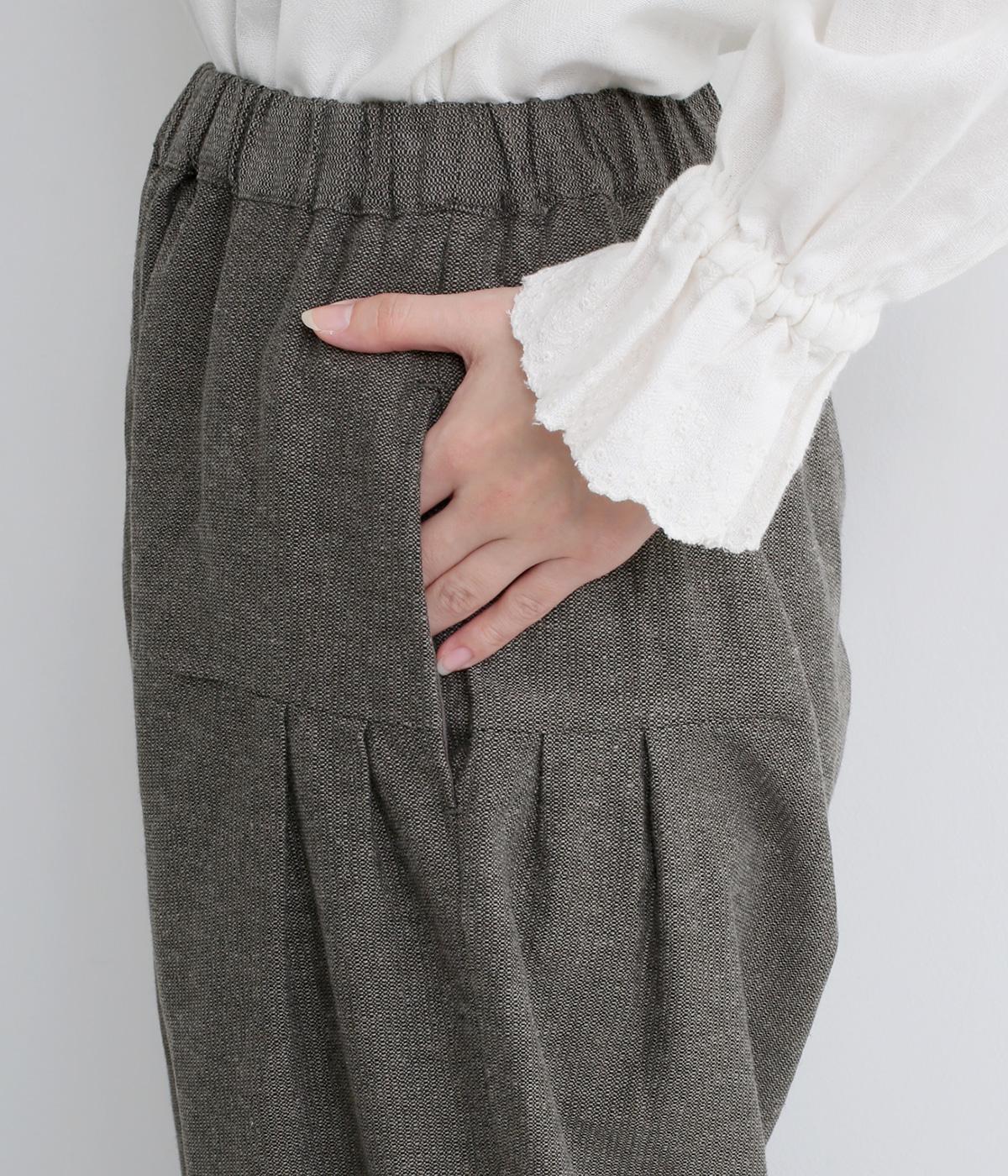 コットンとリネンがはき心地の良いパンツ。ドライタッチで適度にハリがあり、肉感をおさえた中厚手生地ではきこなしやすい仕上がりです。