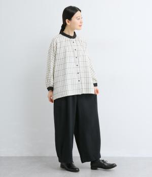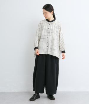 なめらかさと、さらりとした肌ざわりをあわせ持ったコットンリネン生地を使用。コットンの柔らかさとリネンの軽やかな着心地を両方叶えてくれます。
