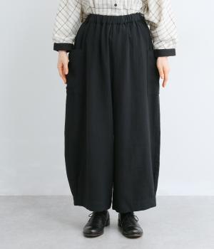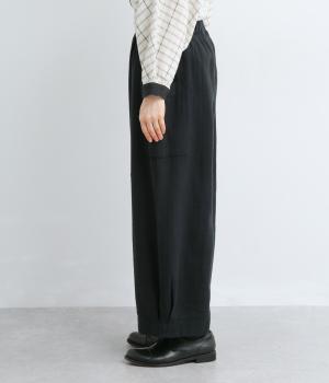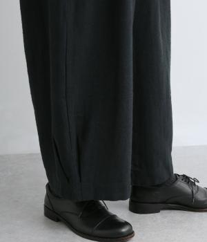 ゆったり穿ける太めシルエットのコットンリネンパンツ。両サイドの大きめポケットがアクセントに。裾サイドのタックがほどよい立体感を生み、バランスよく着こなせます。