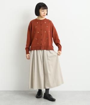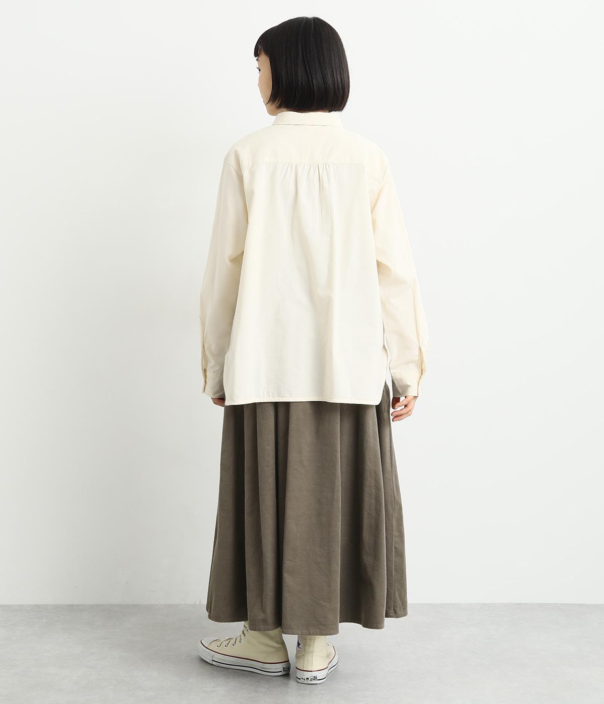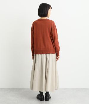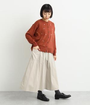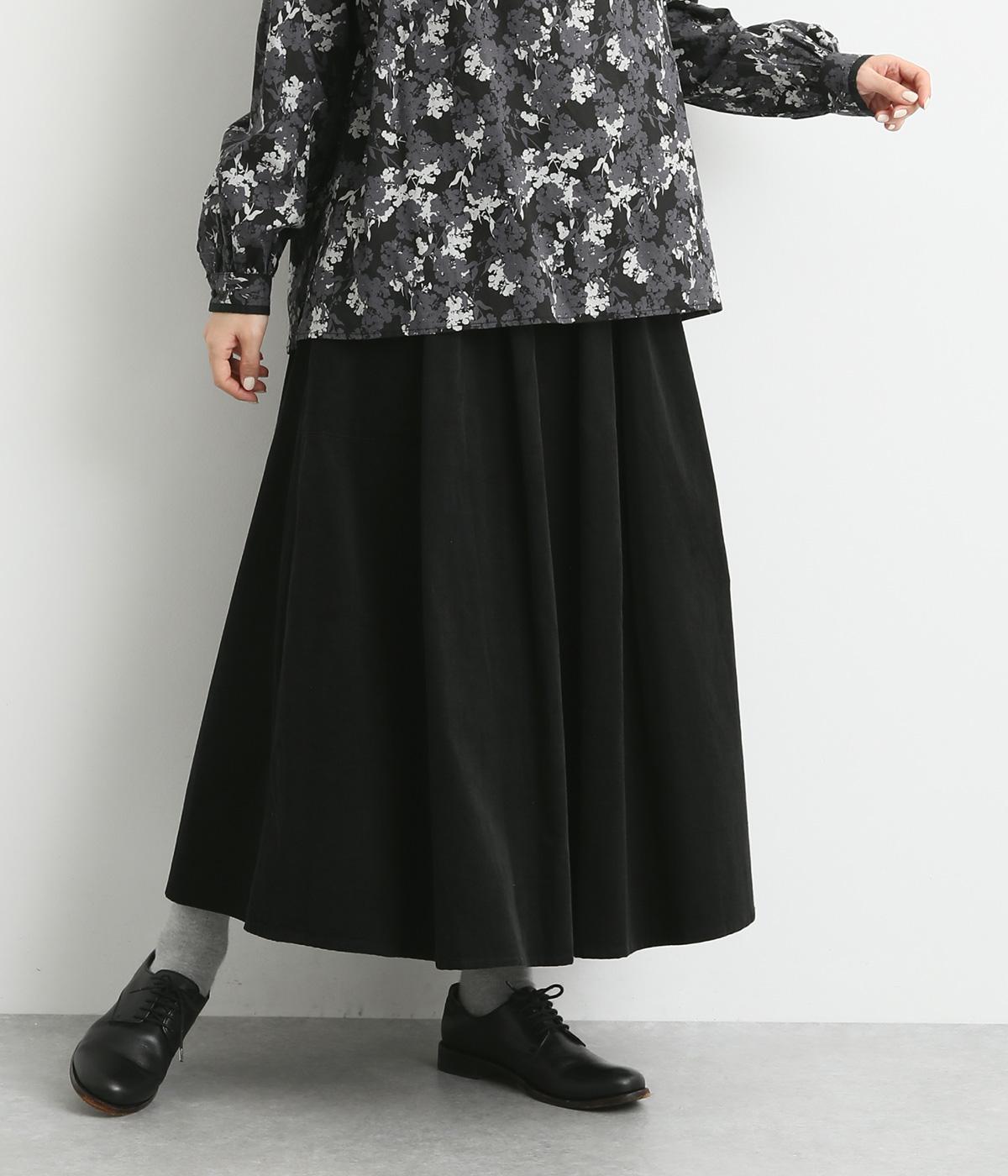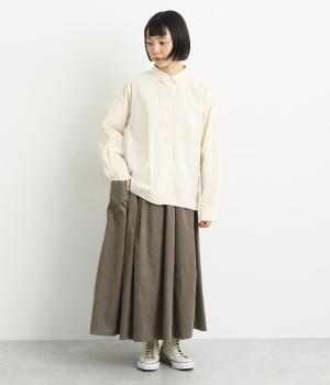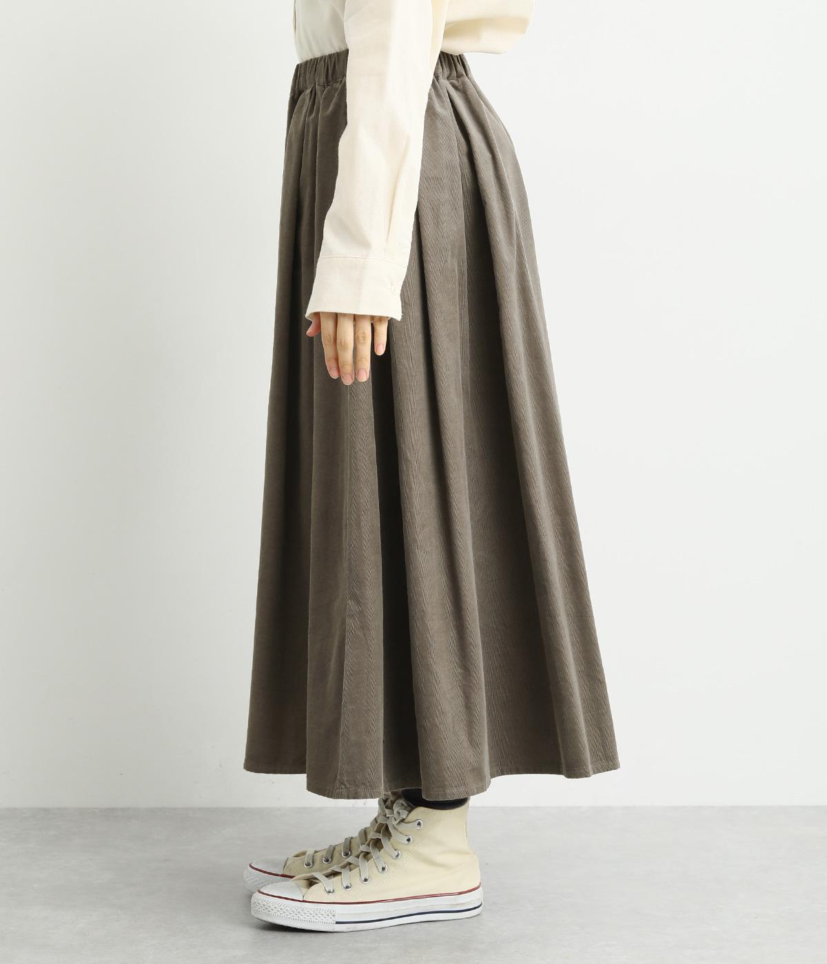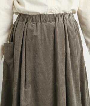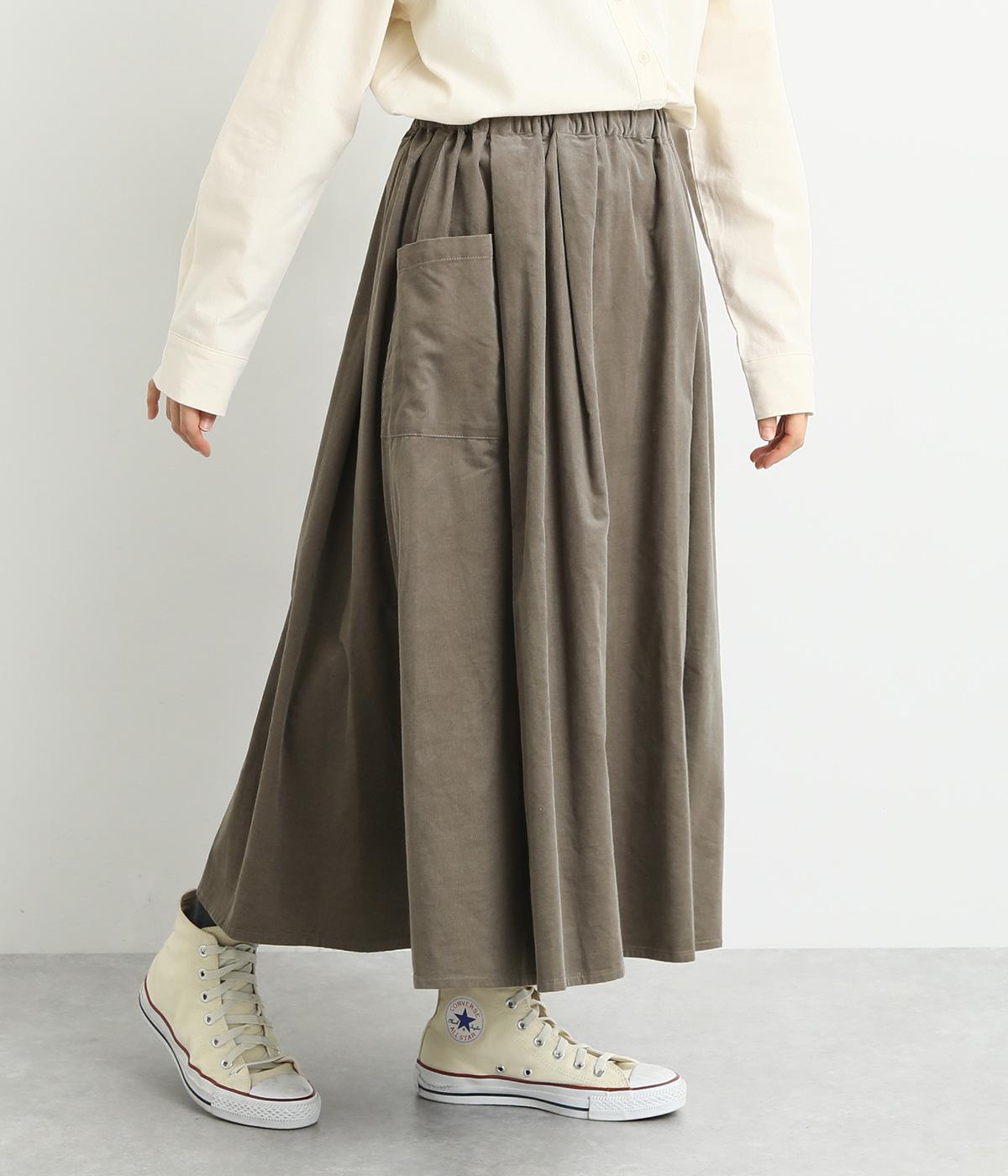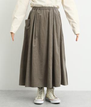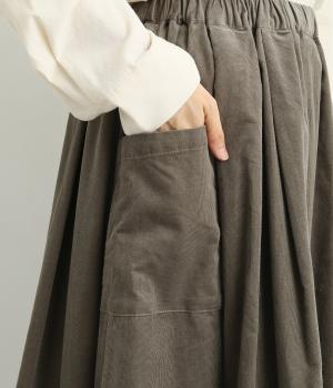 タックギャザーで分量感たっぷりのスカートは、サイドポケットをポイントにしました。品のいい生地感とカジュアルなデザインのバランスがよく、大人のデイリースタイルにぴったり。ウエスト総ゴムに内紐でフィット感の調整も。