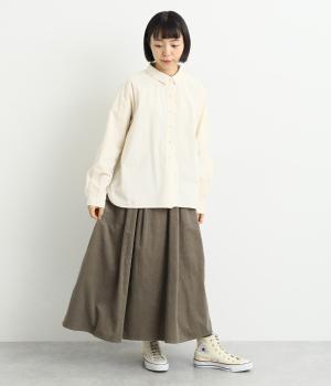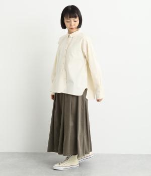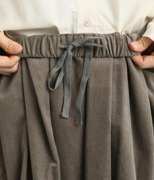 ソフトな風合いのコットンコーデュロイ生地を使用。やわらかな光沢に細畝で、カジュアルすぎない雰囲気のいい仕上がりです。厚手すぎず軽いはき心地も◎。