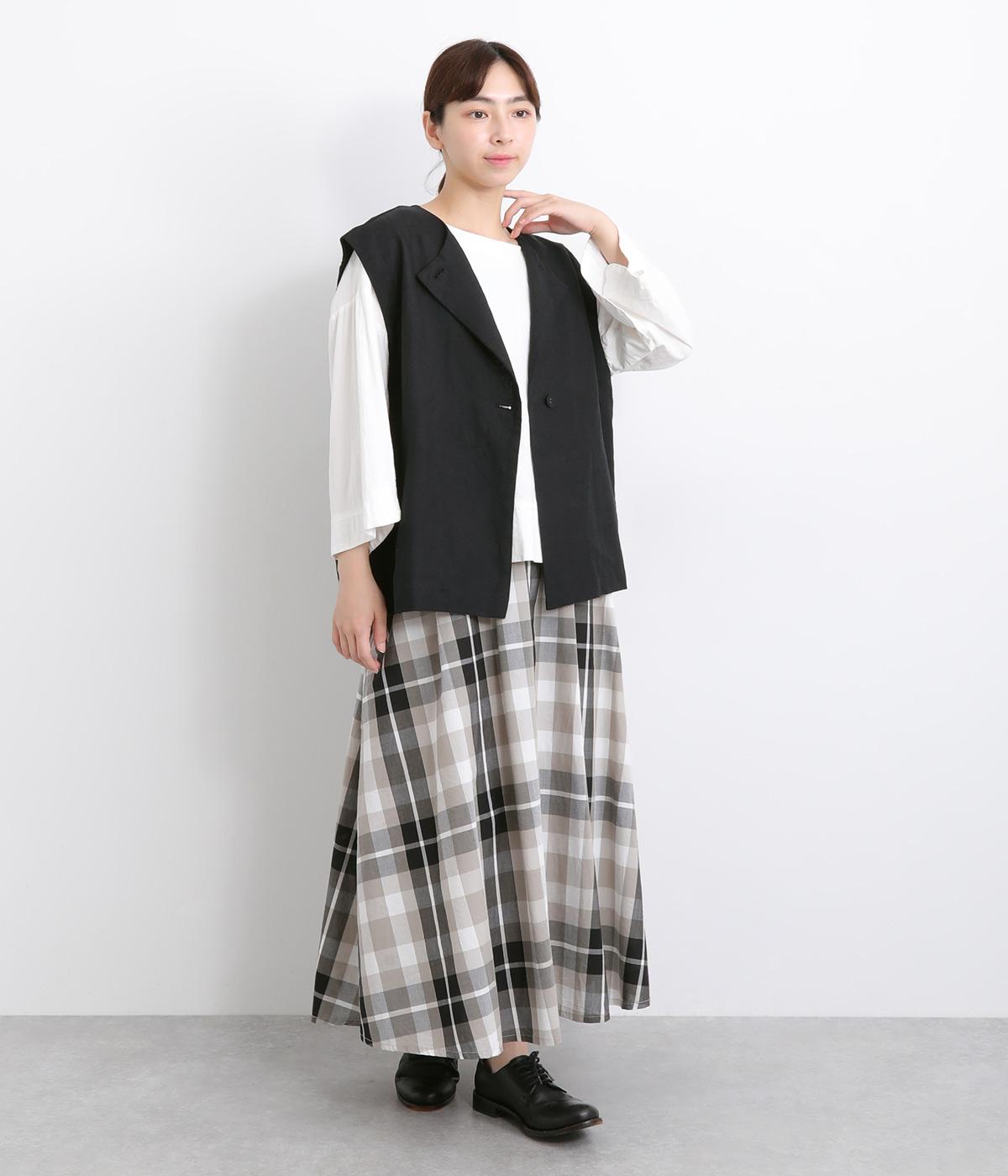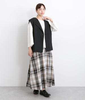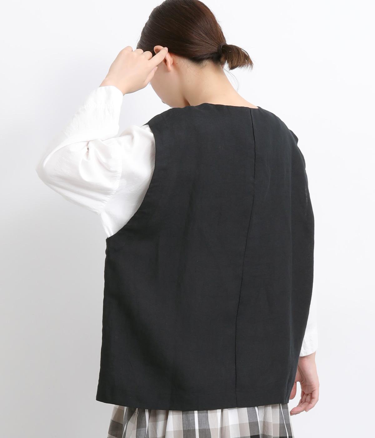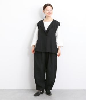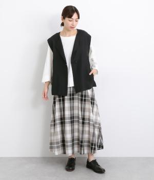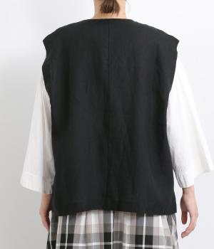 薄手でレイヤードしやすく、適度なハリがあってきちんと感とナチュラルさのバランスがグッドなベスト。先染め素材で色落ちしにくく深みのある風合いが魅力です。