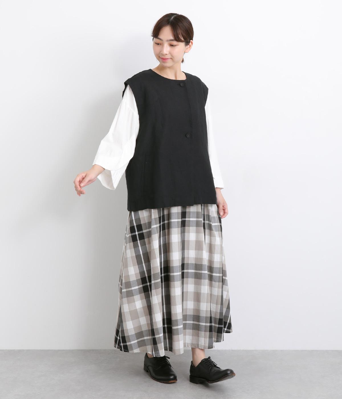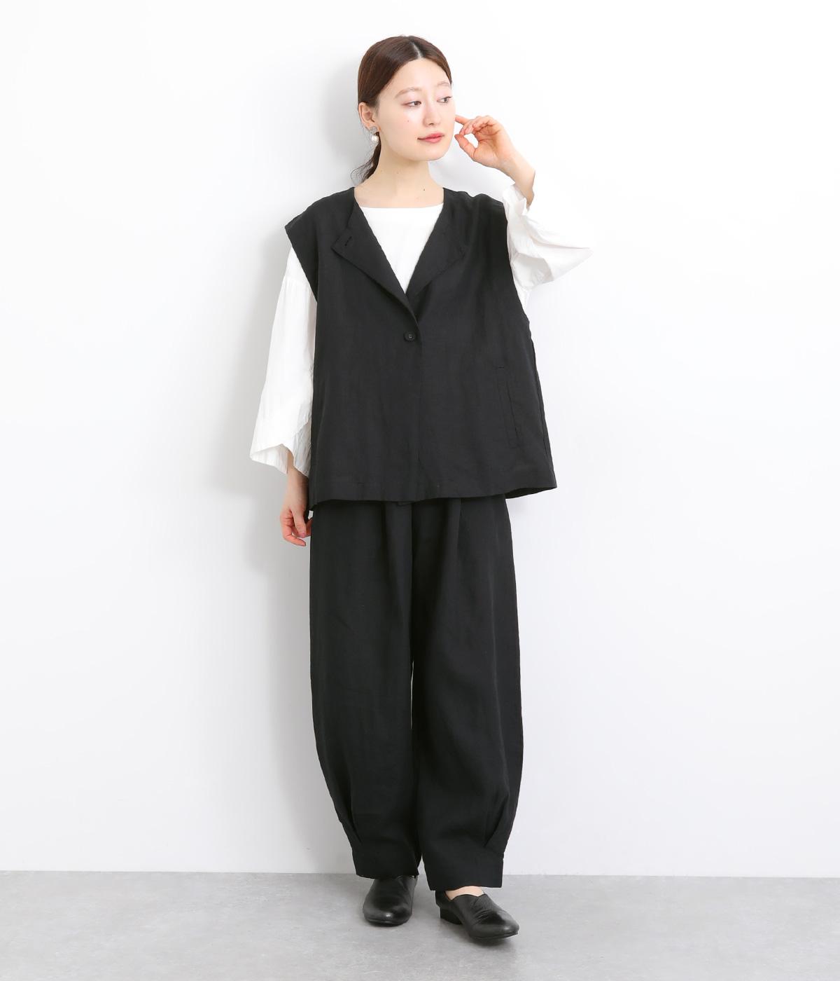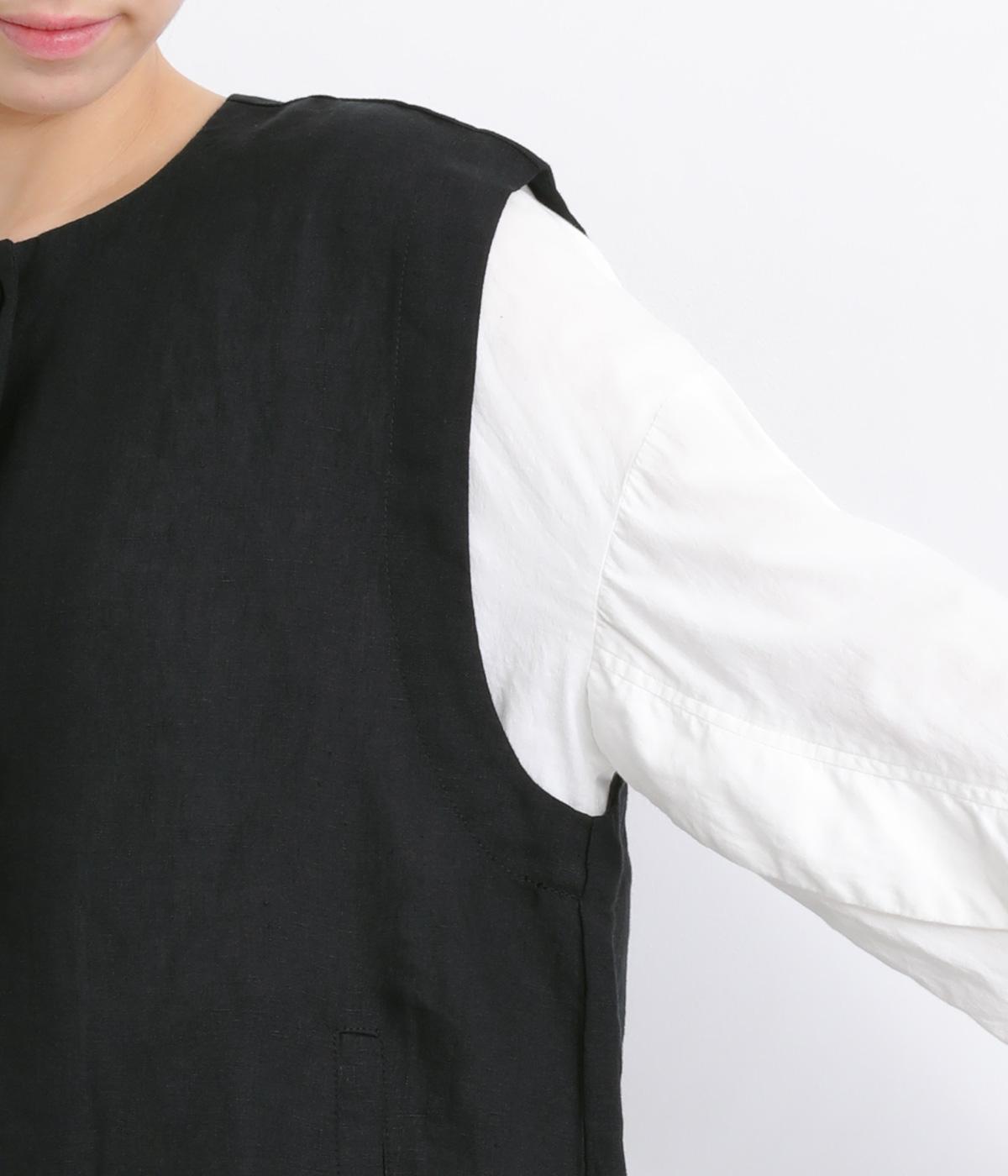 薄手でレイヤードしやすく、適度なハリがあってきちんと感とナチュラルさのバランスがグッドなベスト。先染め素材で色落ちしにくく深みのある風合いが魅力です。