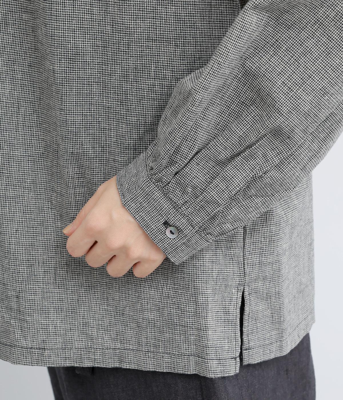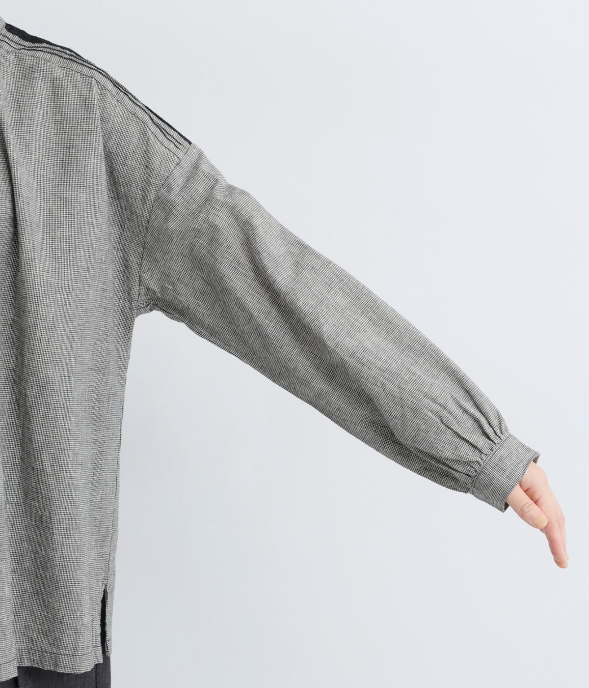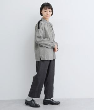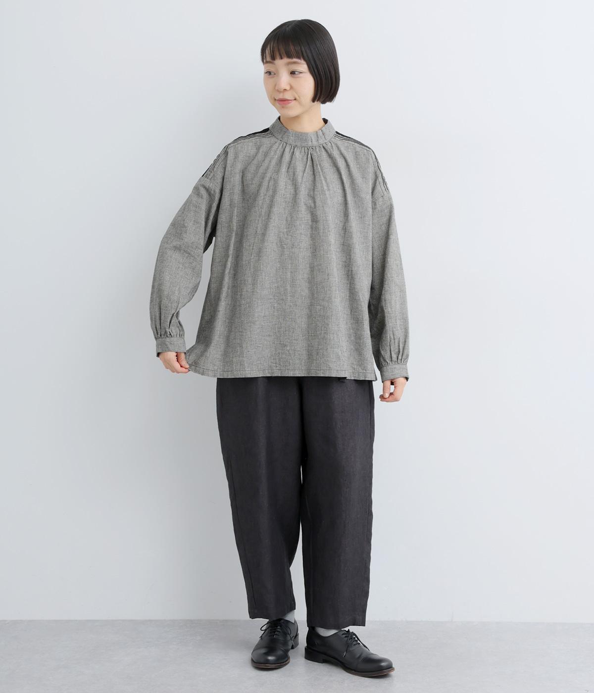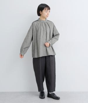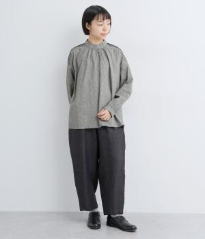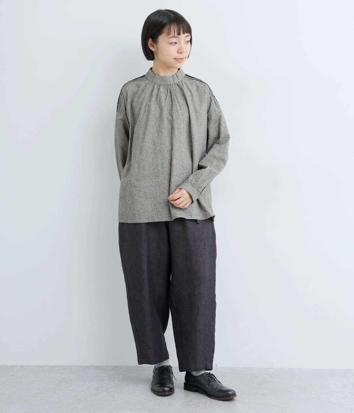 リネンならではのシャリ感とハリのある、やや薄手で軽やかな綿麻生地です。春や秋は一枚で、冬はレイヤードでロングシーズンたのしめます。