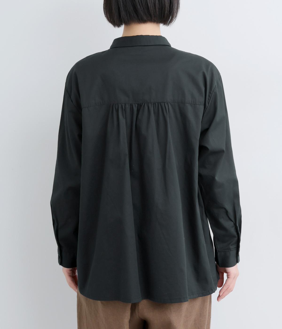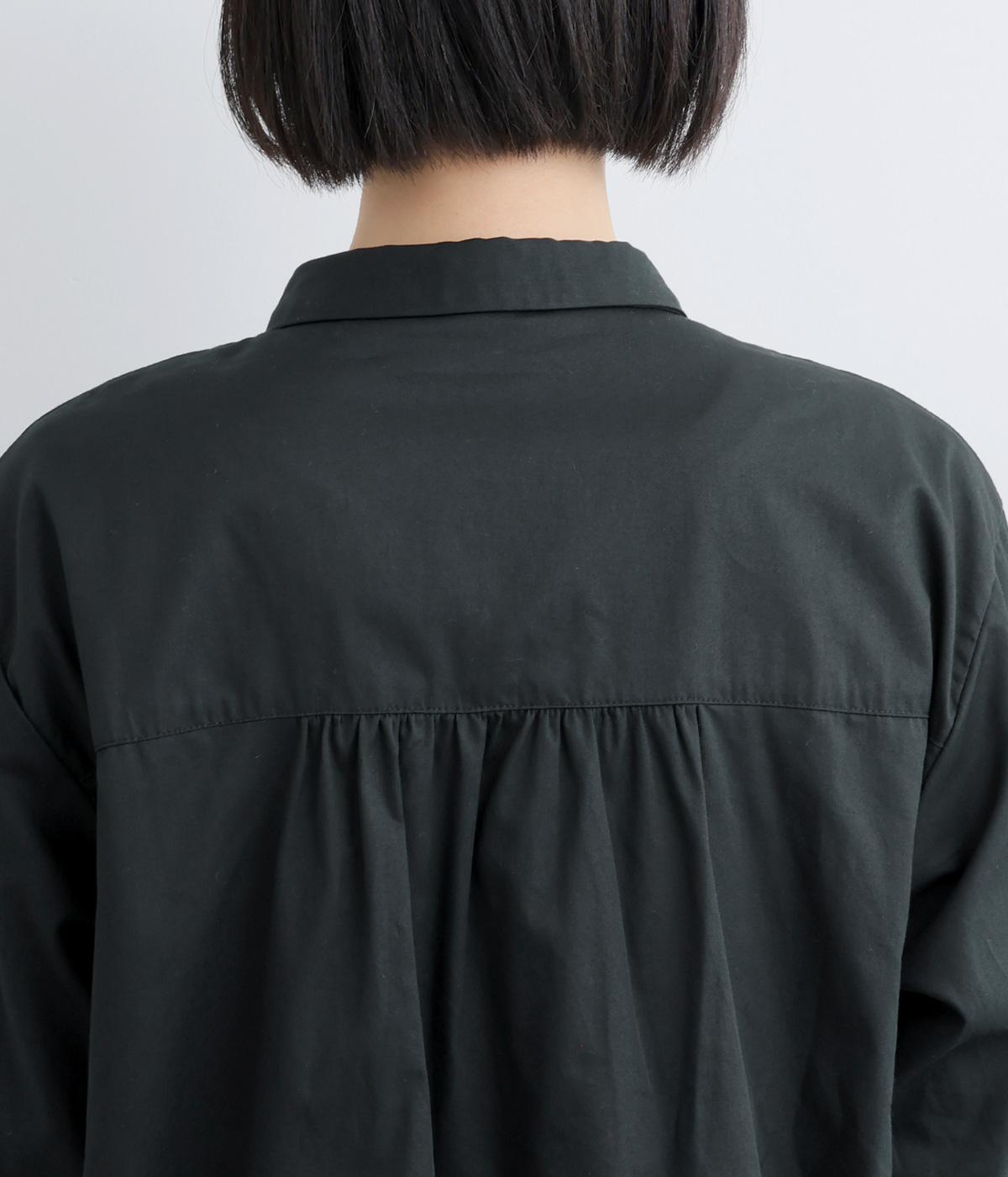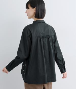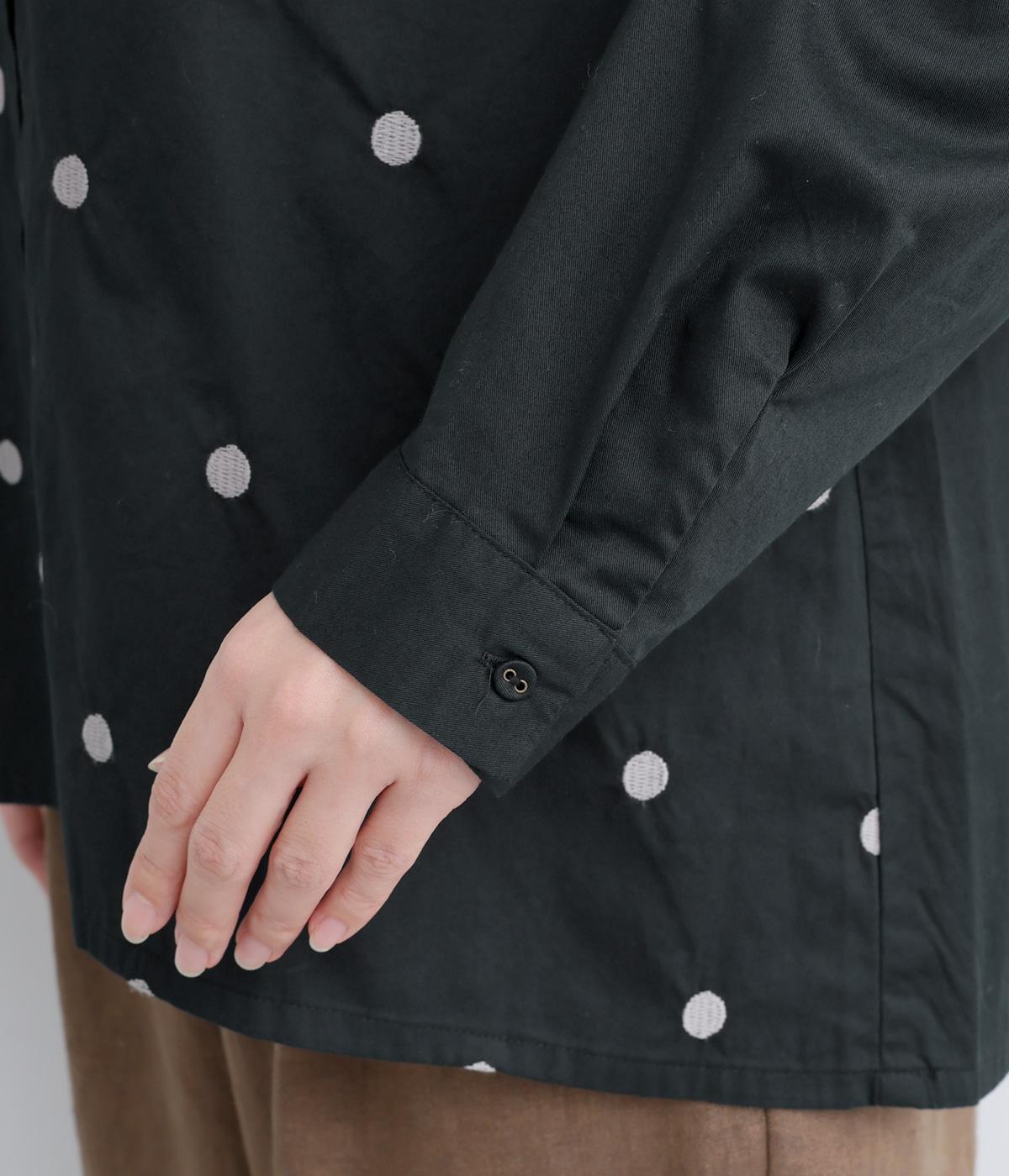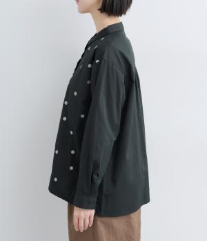 肌にまとわりつかないさらりとしたコットン生地です。やわらかな風合いに適度なハリをプラスして、きちんと感のあるルックスに。前身頃の生地にはドット刺しゅうを施しています。